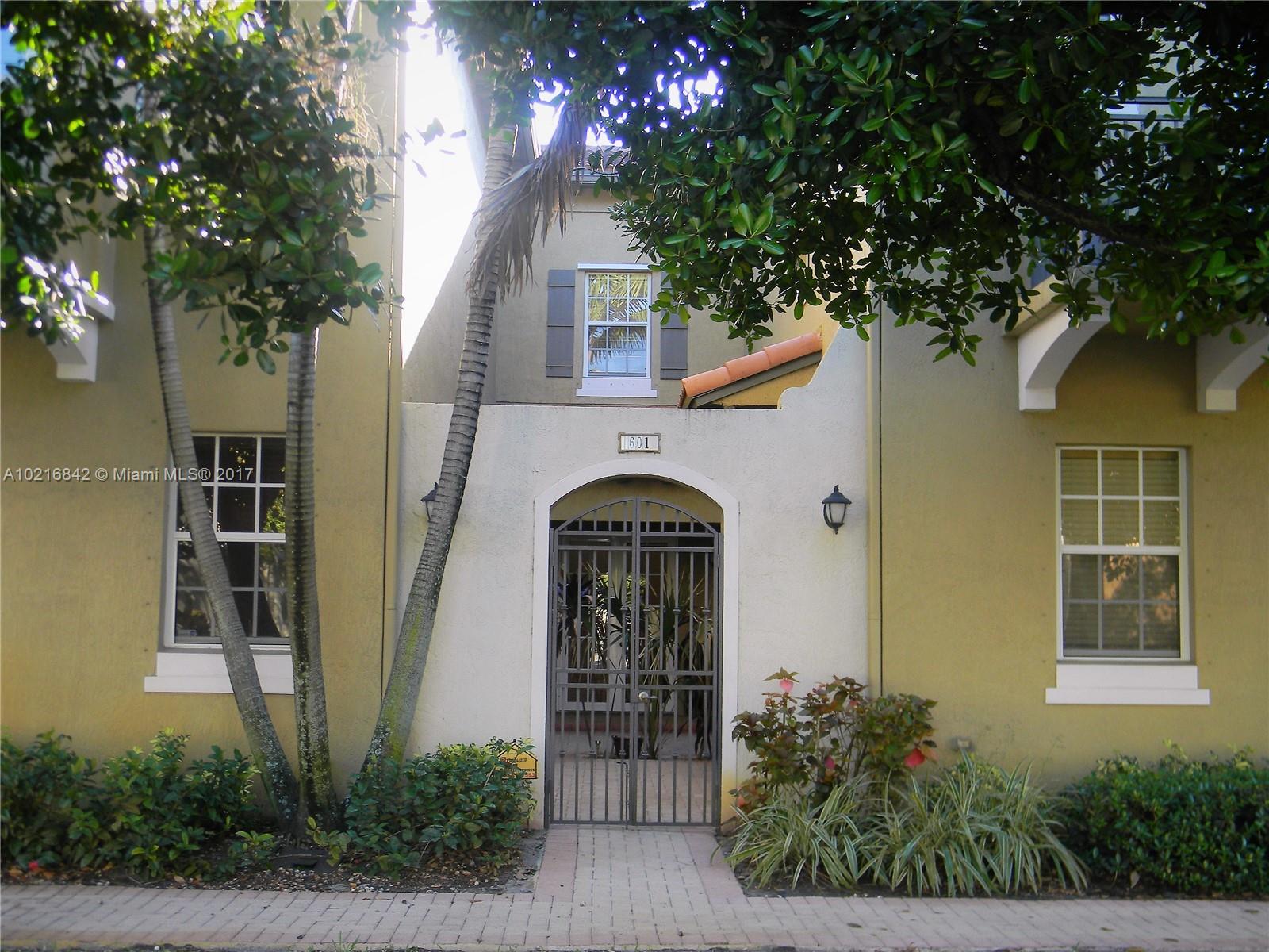 3/3 Luxury townhouse with courtyard entrance in gated community! Unit has complete upgrades, Wood floors, Granite counter tops. Master bedroom has walk in closets, a private bathroom & relaxing patio space. Cozy second floor loft! Washer and dryer, two car garage, Option to include furniture! Gym, pool, Tot room, 2 Playgrounds, a Community party room available for rent. Comcast cable, WiFi & home alarm included! Rental friendly Community. Steps away from I-75 and Pembroke Gardens shops and dinning.