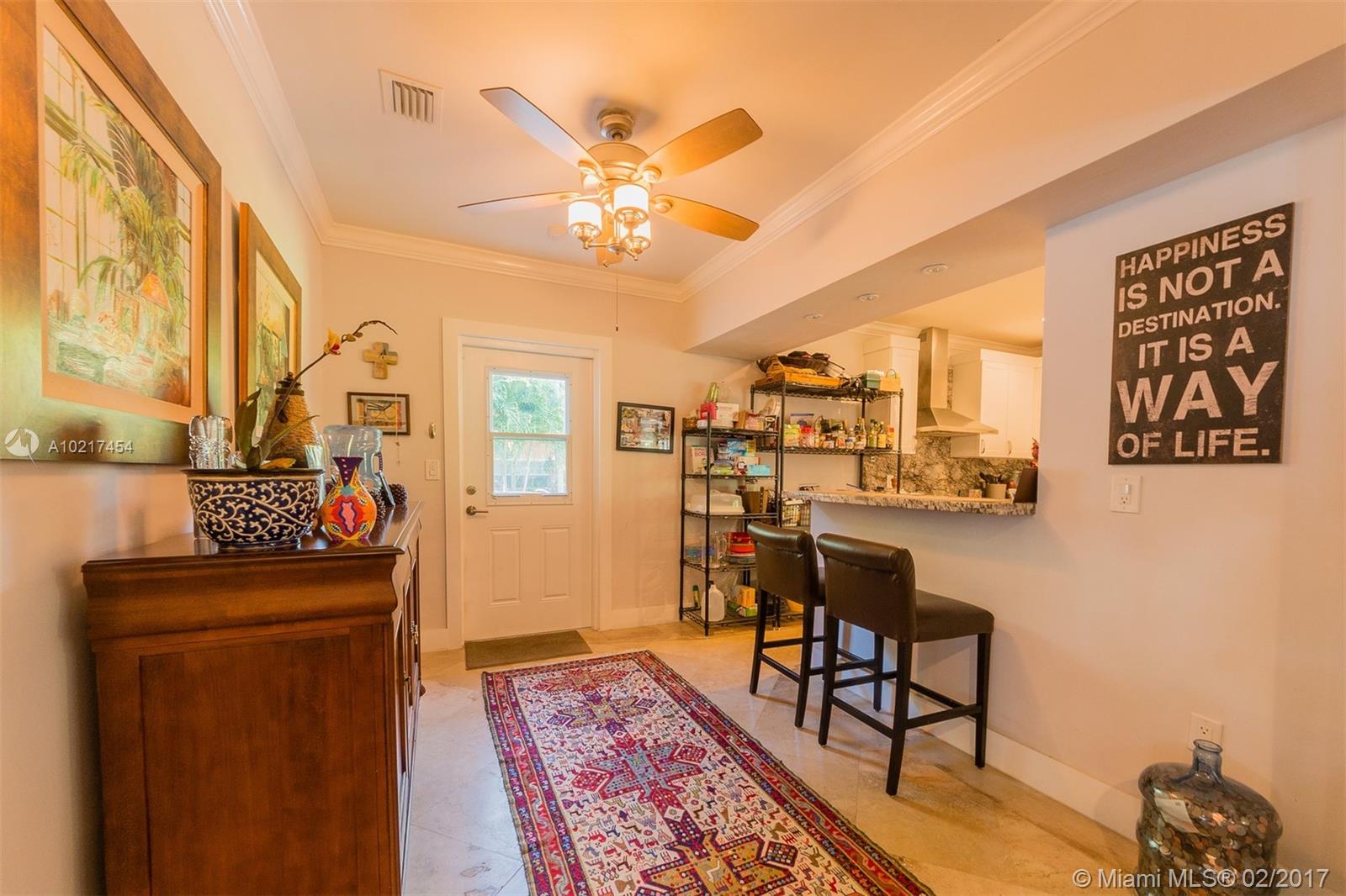Unique South Gables opportunity with this completely remodeled home on a double sized lot. This 3/2 features a modern floor plan with open living and dining areas allowing for natural light to illuminate the home. Wood and marble flooring throughout. Eat-in kitchen with new stainless steel appliances, wood cabinets, natural stone counter top and French doors that open to the backyard deck. Not one detail was overlooked! New roof, impact windows, AC and more! Don't miss this wonderful opportunity.