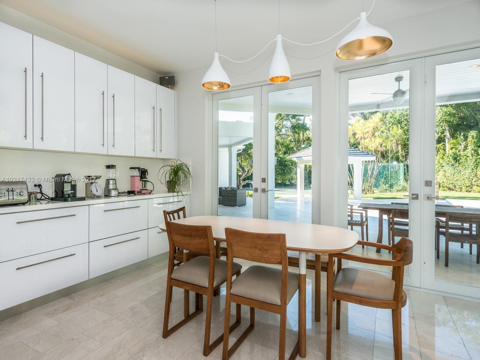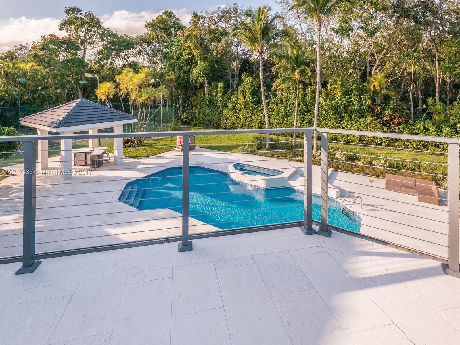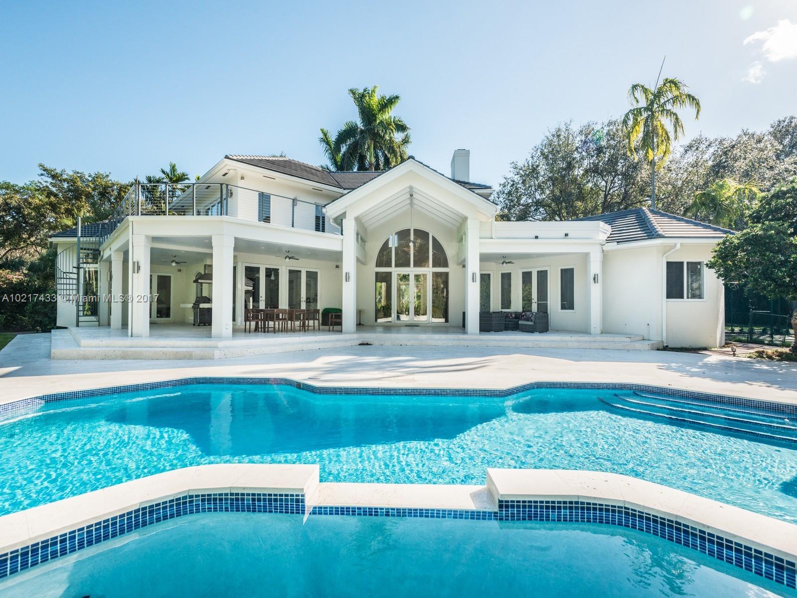 Updated Contemporary Estate nestled in North Pinecrest. Features include Birch Wd Floors in the Formal Areas, Marble flrs in Kitchen/bathrms, expansive open space, indoor laundry rm, impact , fireplace. Custom Kitchen includes Sub-Zero with wine cooler, wolf cooktop/convex micro, walled oven, cooktop/hood, cooking island, marble tops, breakfst nook. Second floor features Birch Wd Floors with oversized Master Suite /6th bedrm. Master bath w/ sep tub/shower/marble. Balcony overlooks tennis Court/Acre+ oasis