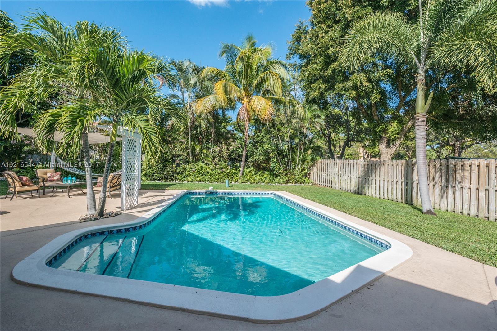 Escape to your own tropical oasis. This 3BD/2BA features all the comforts you expect in a home. Open layout makes for a flexible space. Kitchen has stainless steel appliances, eat-in kitchen and plenty cabinet space. Master suite has walk-in closet, sliding glass door overlooking pool deck, glass encased rain shower. Covered patio, sprawling backyard, gas firepit, sparkling pool, great to entertain. Landscaping provides privacy and tranquil breezes. Bring your pickiest buyer, home will not disappoint.