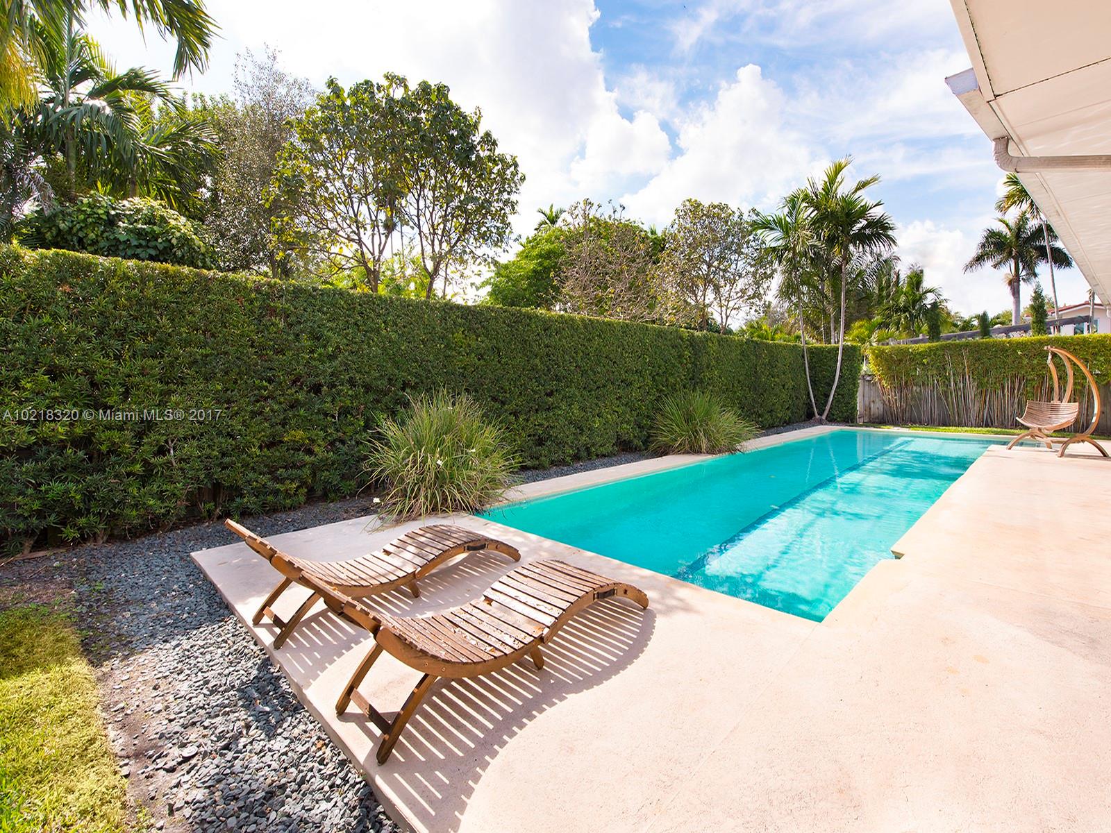 Mid-century jewel w/ modern amenities! Courtyard w/iron gate, terrazzo paths & views of indoor garden. Open LR/DR w/window wall bathes space in light & views of patio, pool & garden. Screened patio w/polished terrazzo flrs by pool lit by landscape up-lighting. Eat-in kitchen w/gas stove, SS appl & slate floor. Master suite w/distinctive bath & w/in cedar closet. 2 bdrms w/cedar closets. Original oak flrs, new roof, impact windows/doors, surround sound system, whole house generator. 2-car garage w/new W/D.