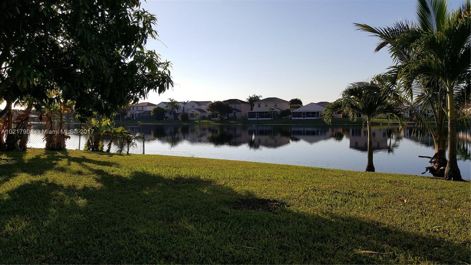 Beautifully maintained 3/2.5 on waterfront property with real hardwood floors upstairs and downstairs Tall baseboards and real wood blinds with coastal chic neutral paint colors, Lots of natural light and beautiful views of the lake from the many windows and extra tall sliding glass doors. Custom built walk-in closet in master bedroom. New AC, water heater and garage door openers. Walking to A rated schools Mature mango and banana trees bass fishing in lake, Com .pool, extended internet and cable.