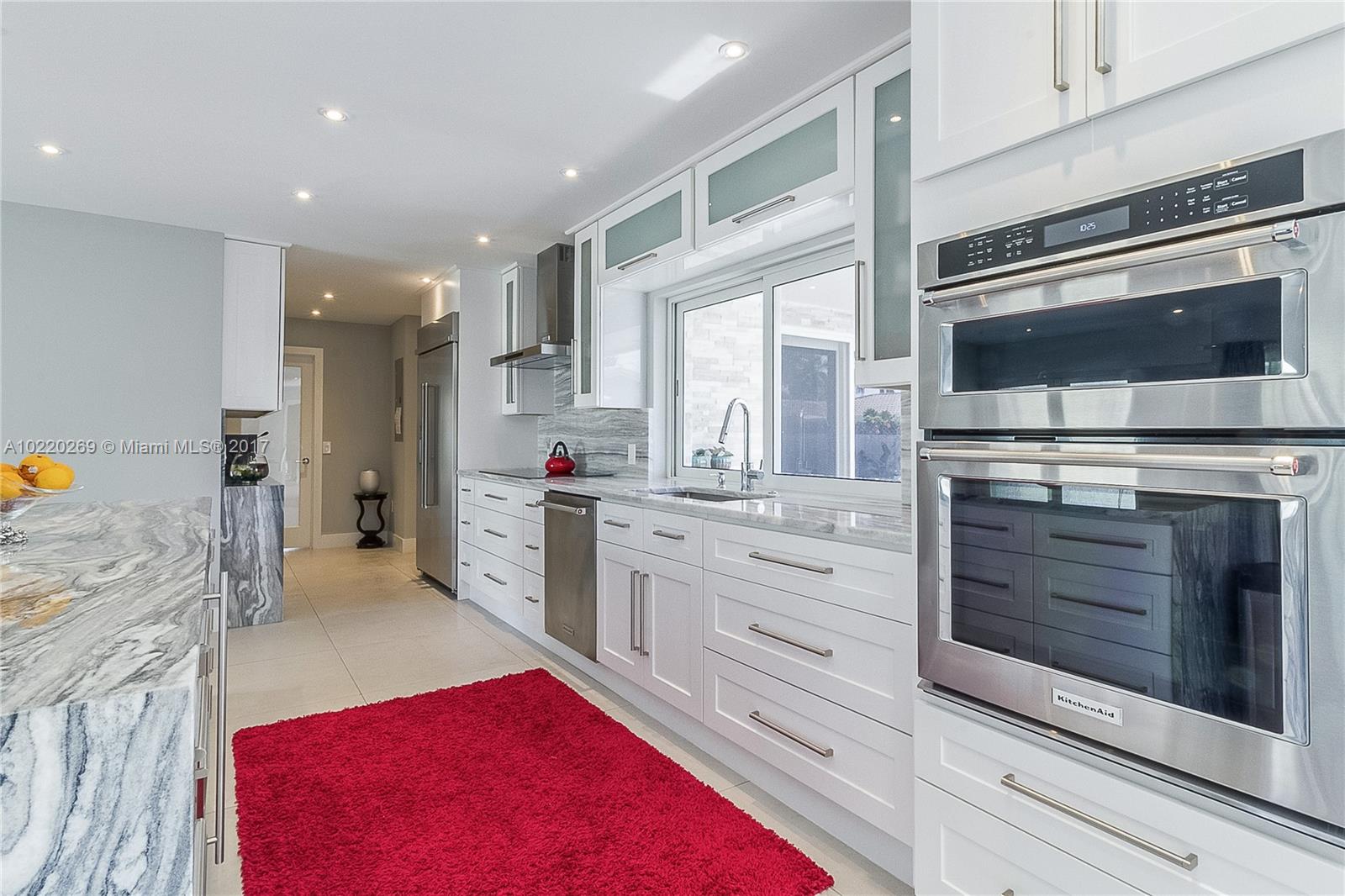 No mandatory country club fees. This gorgeous 4 bedrooms, 2 baths, 2 car garage home was recently renovated with all necessary permits. Renovation includes all new roof, package unit A/C, impact windows and doors, electric panel, rewiring, plumbing, framing, drywall, industrial KitchenAid appliances, calacatta white marble counter top and back splash, frameless shower doors, walk-in closets, dual Bose sound system, pocket sliding door with panoramic opening, pool pump. Owner is related to listing agent.