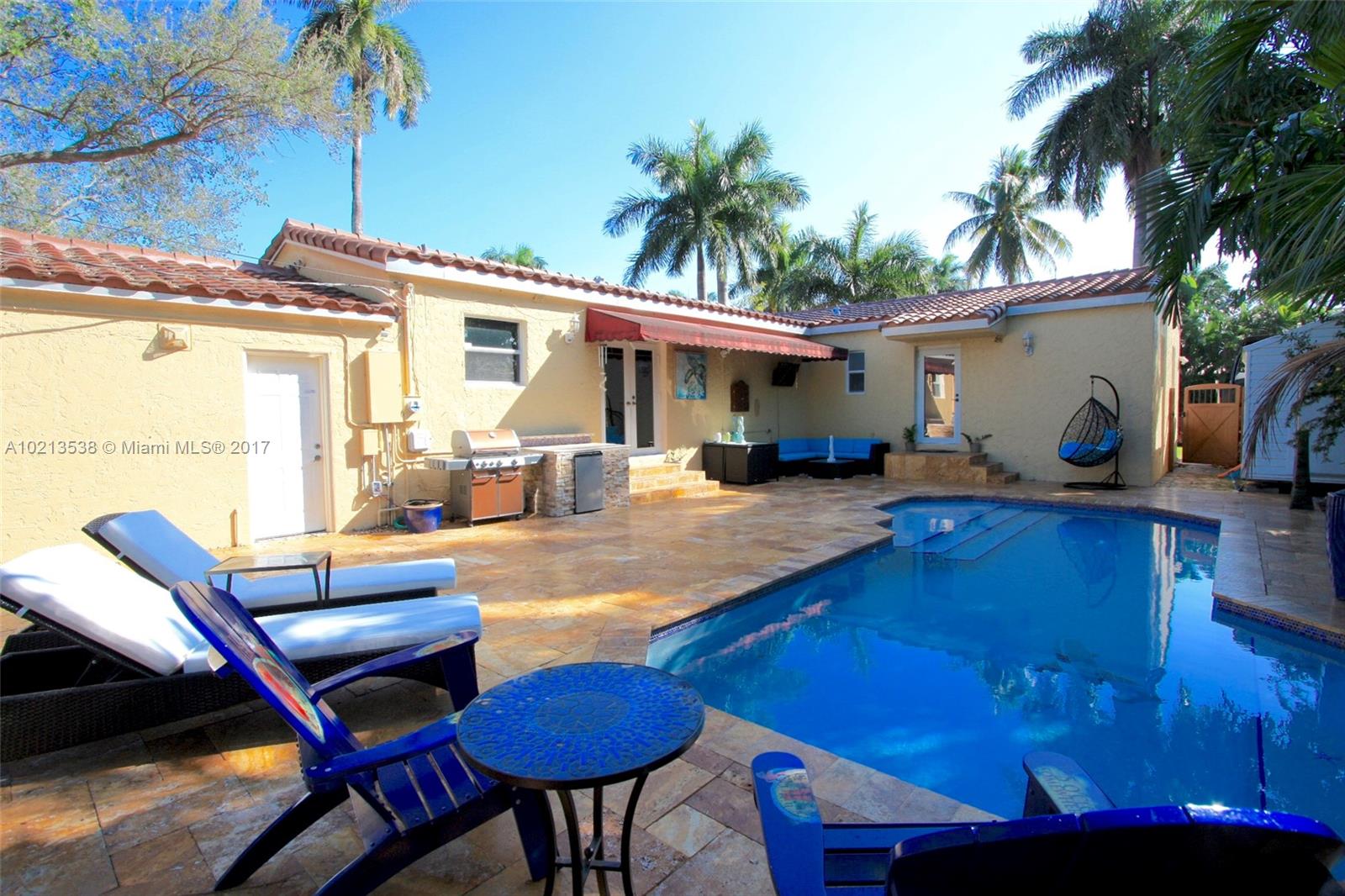Best of both worlds: The charm & prestige of an historic home in Hollywood Lakes AND the features & conveniences of a new home. Just off Harrison - within sight of South Lake. Vaulted/beamed ceilings in living room & master bedroom. Beautiful wood floors. Remodeled kitchen: Granite counters, slate backsplash, stainless steel appliances, high ceiling, breakfast bar. Remodeled bathrooms. Large yard with pool (new in 2016) and patio. New roof (2016). Natural gas generator (auto start). One-car garage.