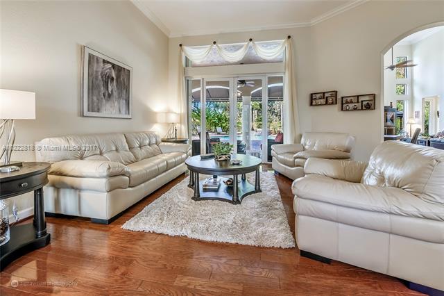 This beautiful home in well sought gated HIGHLAND RANCH ESTATES features a wide open floor plan layout with a formal dining/living room as you enter the house, an open kitchen with an island overlooking the family room breakfast area, split floor plan w/ master on the first floor & other bedrooms on the second. Volume ceilings, throughout. Big windows & sliding doors overlooking private backyard & pool area. Granite countertops. Tile & wood floors. Lushly landscaped.