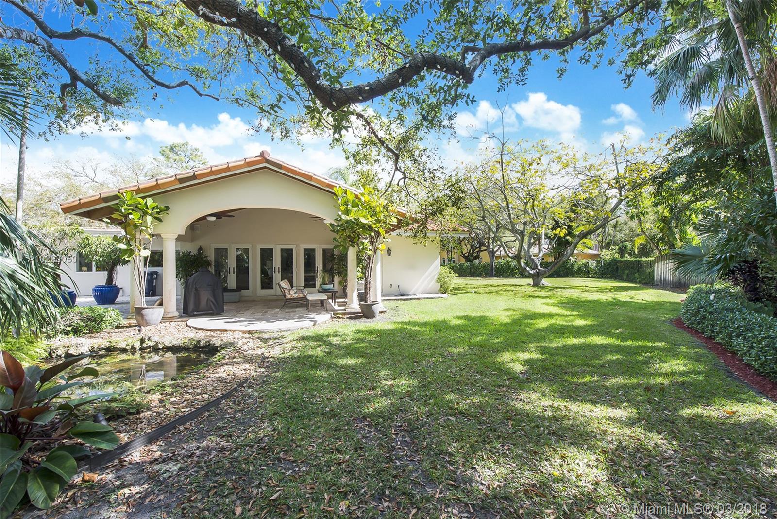 Gorgeous corner-gated Estate in prime Pinecrest location on a 31,798 SF lot.Soaring ceilings with bright living areas and spacious family room,all open to a covered terrace and pool area.This impeccable 5 bed/4 bath plus an office, has a versatile floor plan and magnificent details that include:wood framed Andersen windows,custom moldings,gourmet kitchen with Viking gas range,separate breakfast area,custom built-ins,state of the art new master bathroom,custom drapery,and large custom master walk in closet.