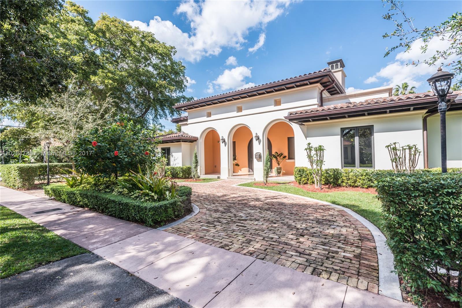 Coral Gables residence built in 2013 featuring marble floors, granite countertops, custom carpentry, wet bar, smart home system, sauna, pool and other custom features on 11,988 sq ft corner lot. *** Use Showing Assist ***