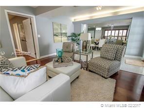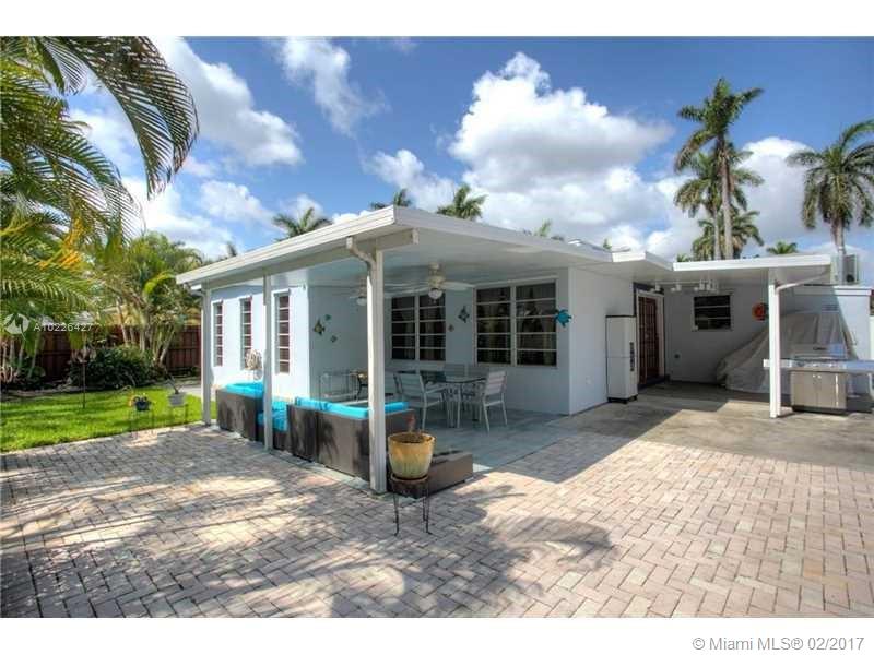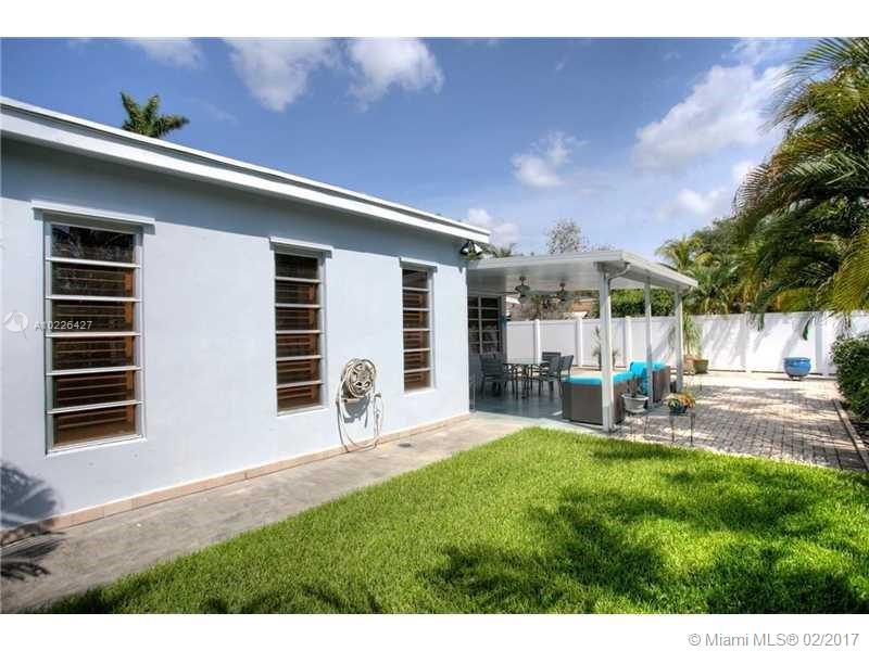 Great location E of US1. Home features Split floor plan 3 BR 3 Full BA + 1 car carport. Updated open kitchen w/granite countertops, gas stove, stainless steel appliances + Pantry. 2 of the BA are updated w/porcelain tile. New electric panel. Plantation shutters in 3 BR & Living room. Recessed lighting Beautifully restored Terrazzo floors Spacious backyard w/large covered patio, great for entertaining. Gas dryer & Water heater (2) Detached storage sheds. A/C replaced in 2012. High-end LG Washer & dryer.