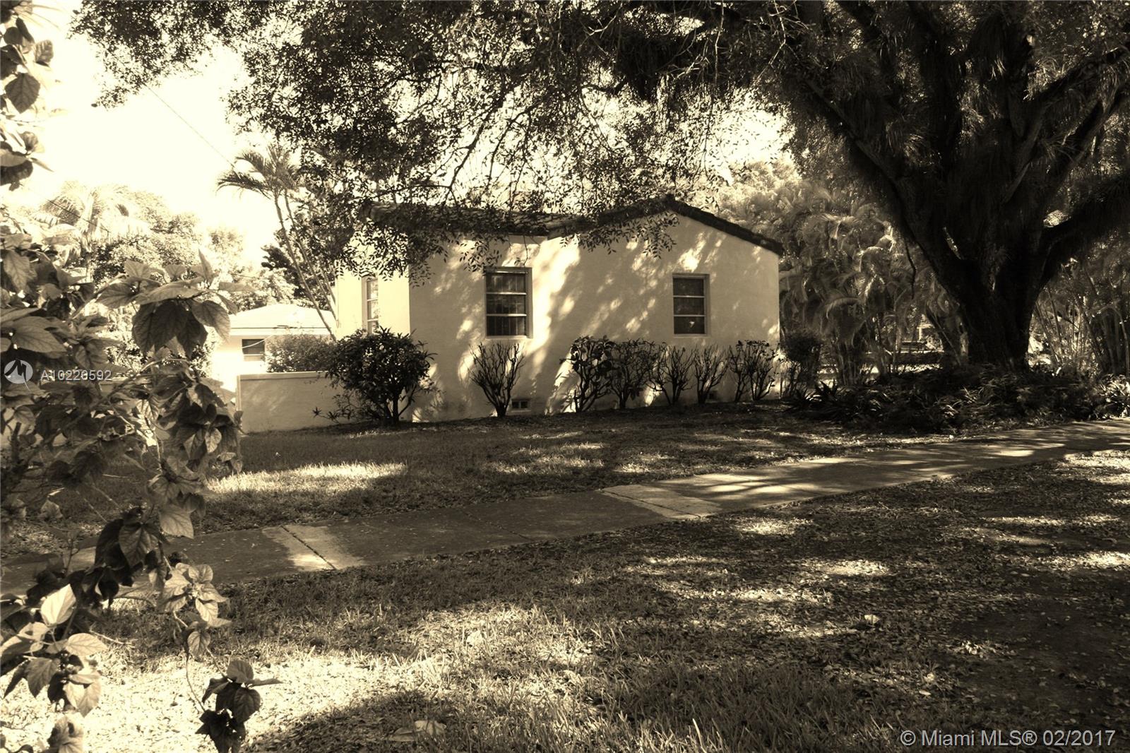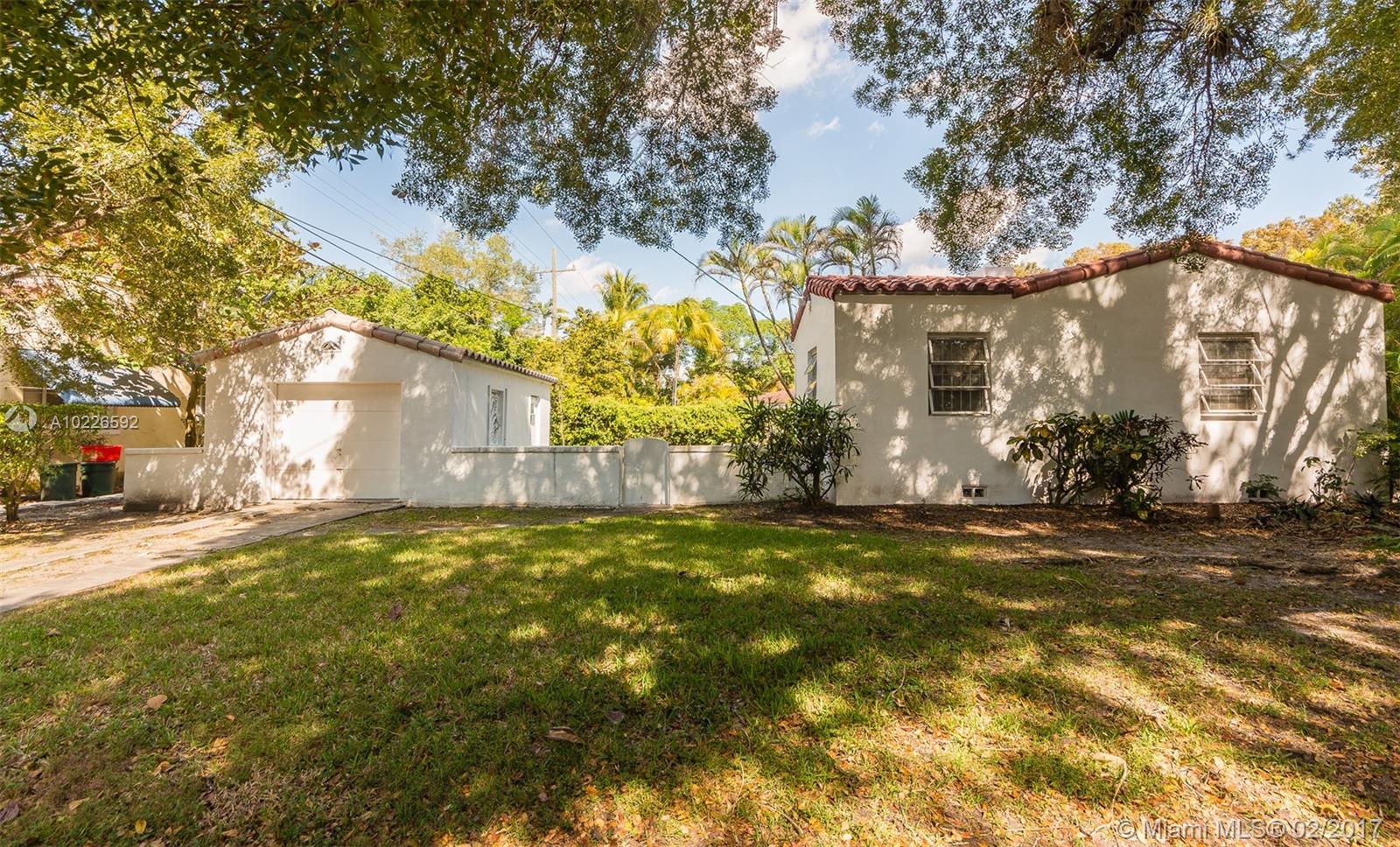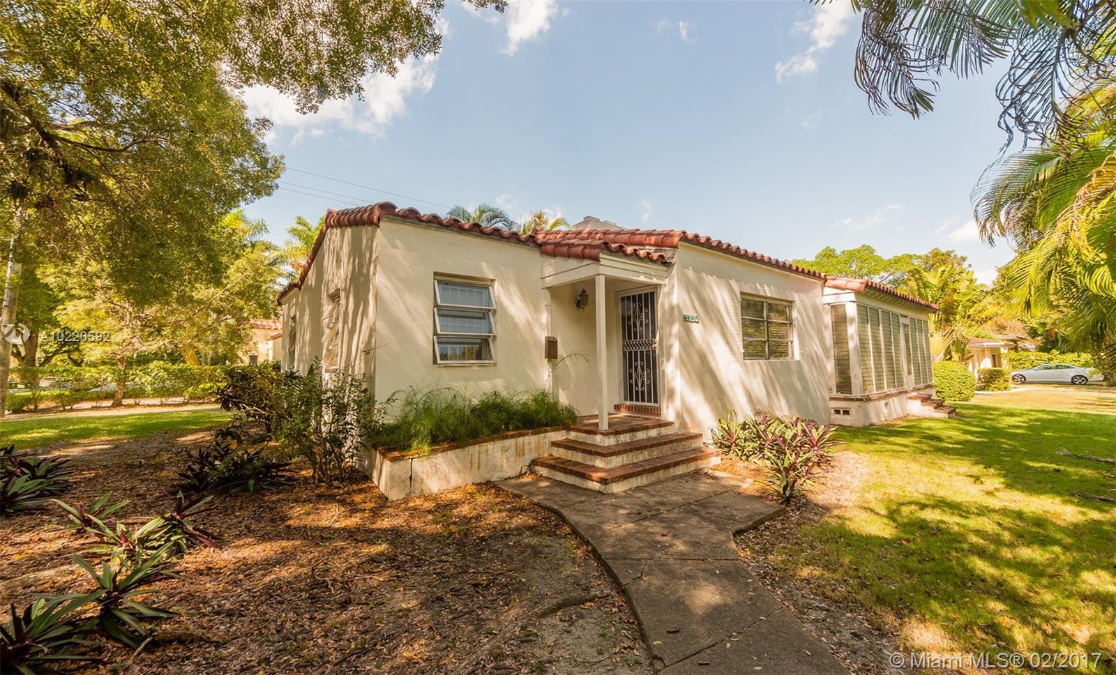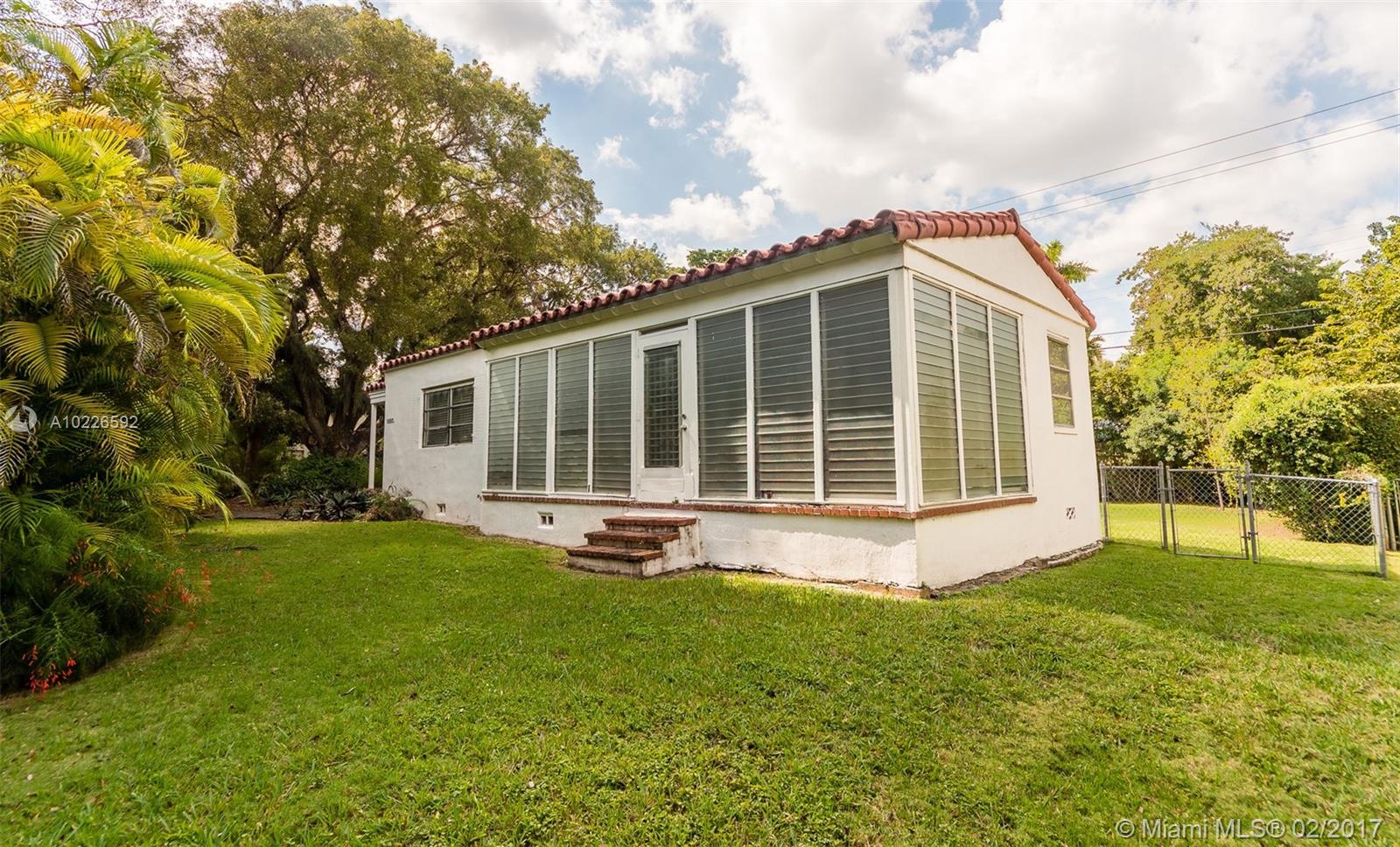 FIRST TIME ON THE MARKET! 2bd/1ba + Den + Florida Room offering Cottage-Style appeal with Wood Floors, Large Living Spaces including Separate Formal Living & Dining Rooms, a spacious true Florida Room with Floor-to-Ceiling Windows with an adjacent Den with door for use as 3rd guest bdrm. This original-family owned gem is situated on an oversized 9,375sf Corner Lot in sought-after South Coral Gables & is perfect for remodeling, expansion or new construction. Detached 1 Car Garage+ Driveway. Priced to Sell