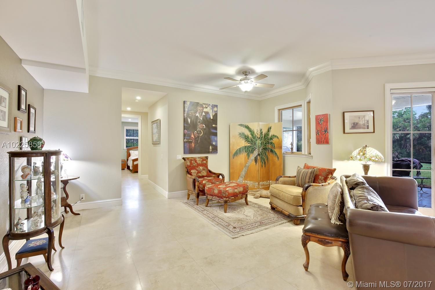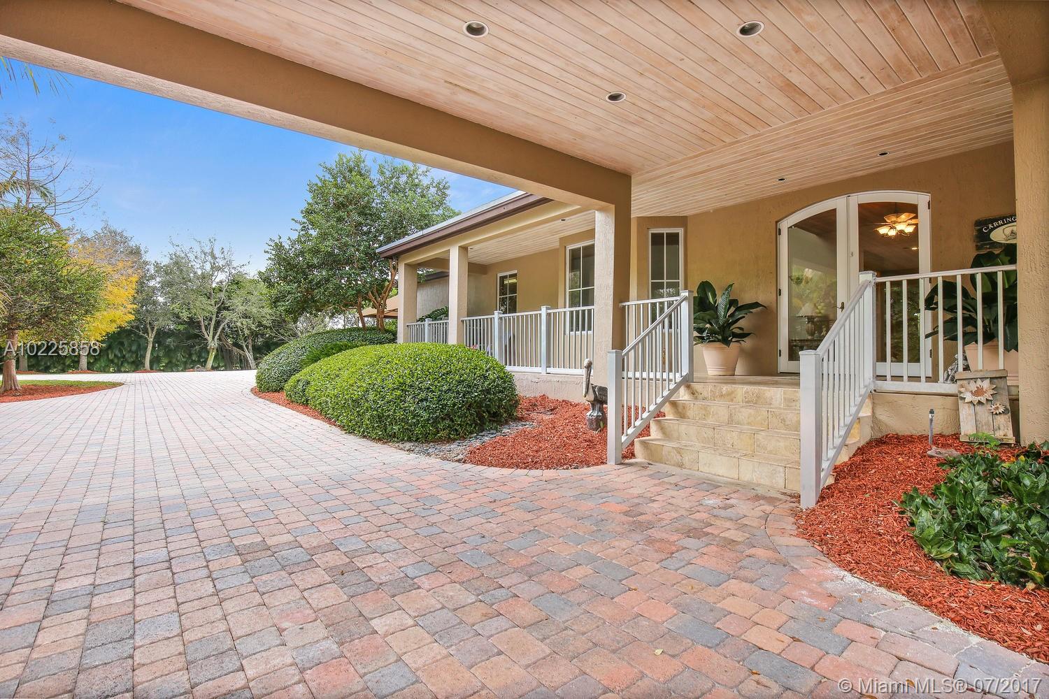 Owner builder Southwest Ranches tropical paradise on private road nestled within 2.19 acres of lush landscape. Features wrap around porch & screened lanai. 1st flr-2 Bdrms & 1.5 Bths. 2nd Flr-10' ceilings, Master Suite features its own sitting area & mini bar, his and hers seperate bathrooms w/Jacuzzi tub & 500sf covered balcony over looking tropical landscape & beautiful sunsets. Kitchen over looks pond has marble counter tops w/the latest appliances. See attachment for added details.