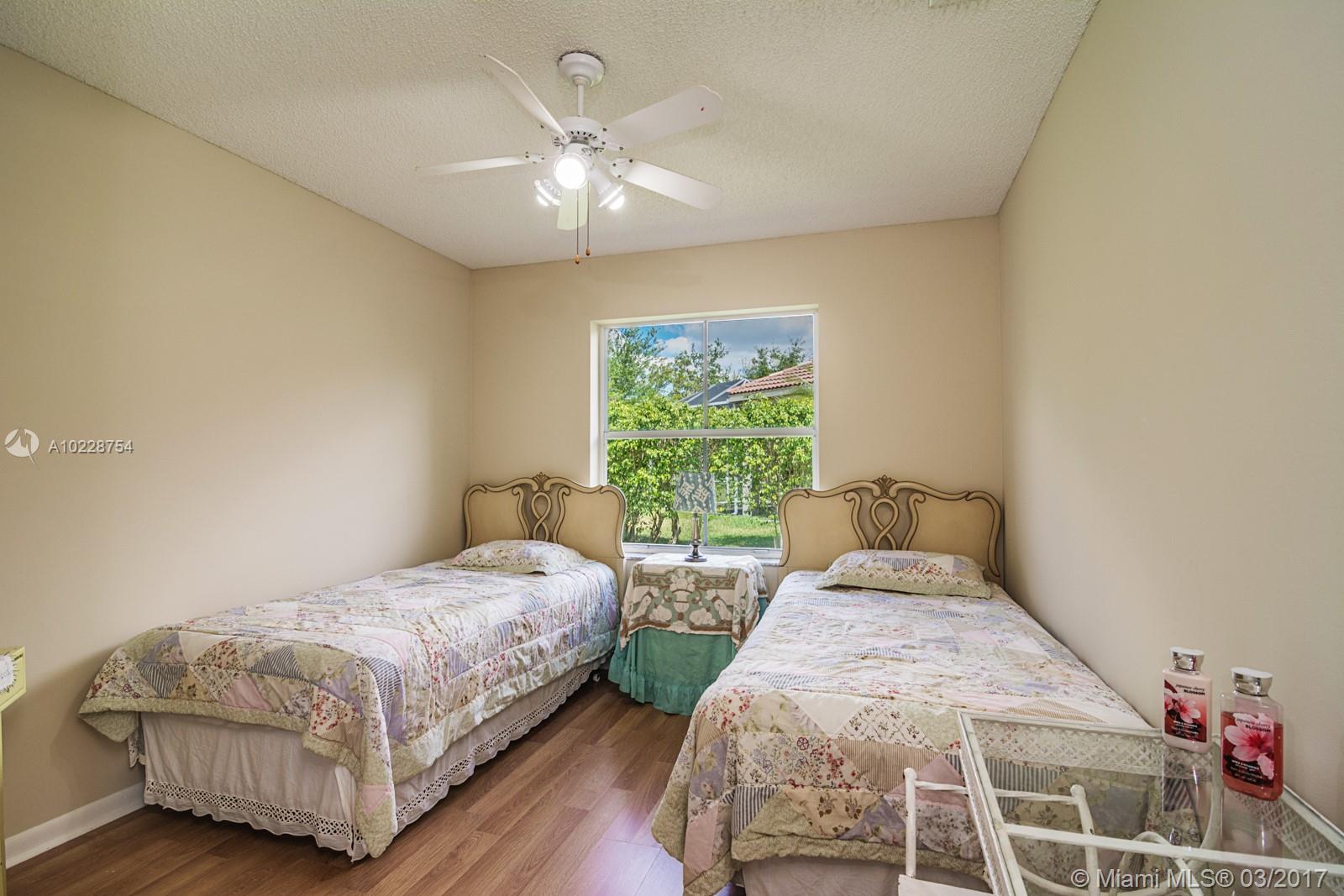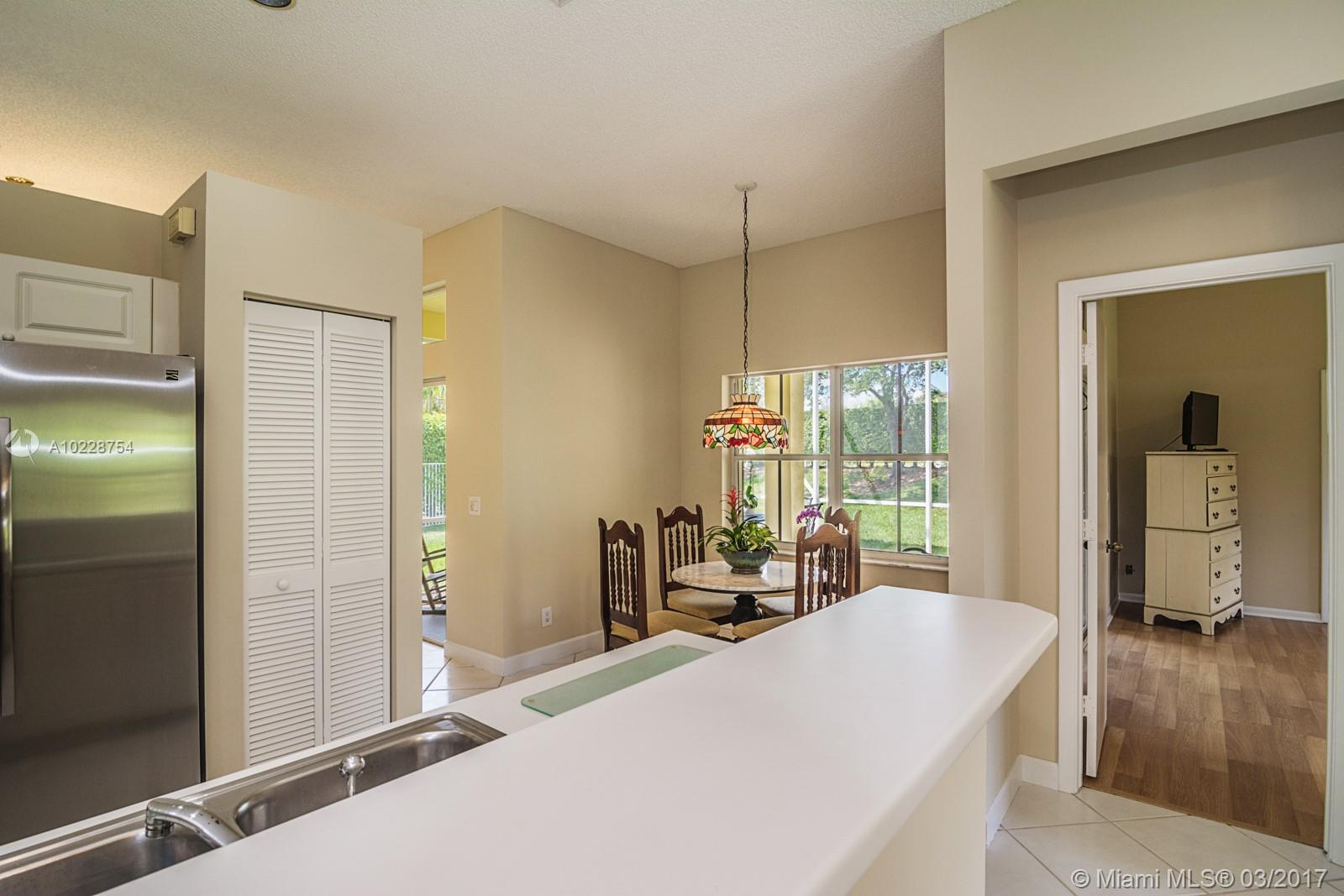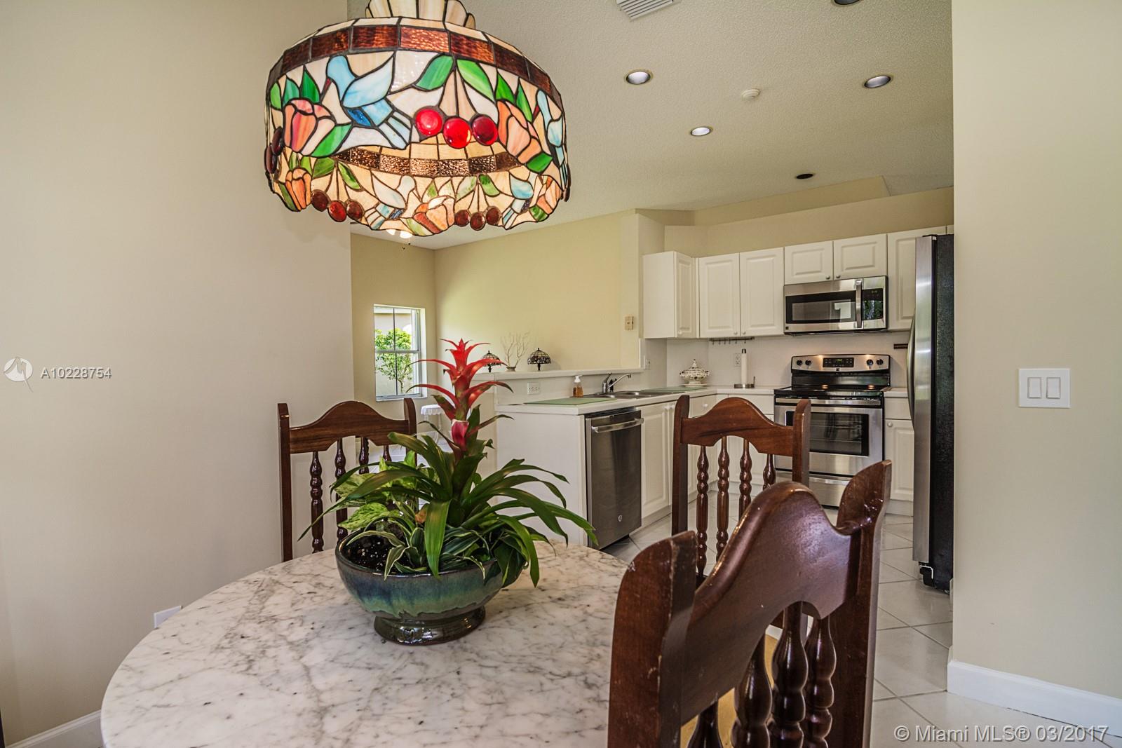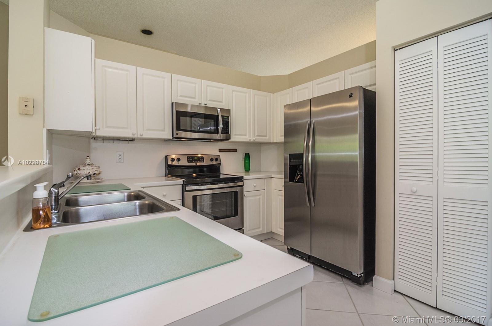 Tucked on a quiet cul de sac in the quaint community of The Meadows. This versatile Daisy model has been lovingly maintained. Sitting on an expansive 8,717square foot lot, ficus hedges for privacy. Freshly painted inside and out w/ Full Accordions. Walk to elementary school and community pool/playground. Contemporary white kitchen with Brand New Stainless Steel appliance. Tile throughout living areas, laminate wood in bedrooms. Marble floors in all baths, Sliders to covered patio.