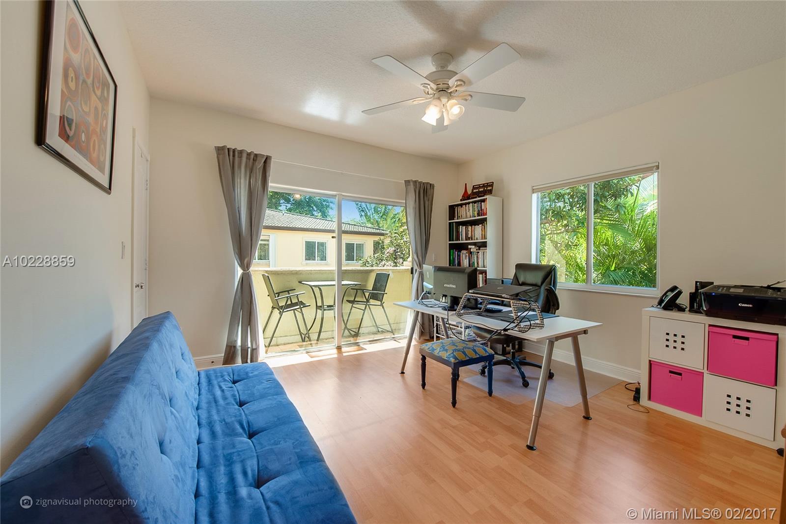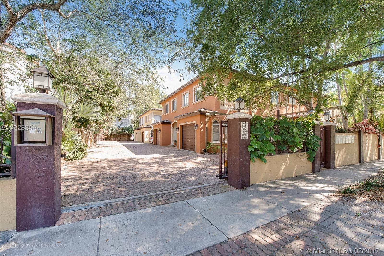 Magnificent townhouse tucked in the heart of Coconut Grove, steps away from parks, restaurants and schools. Beautifully maintained with stainless steel appliances (new microwave and electric range in 2016), granite countertop and white cabinetry. High arched ceiling with lovely plantation shutters and bathrooms updated with authentic Mexican Talavera tile. Hardwood floors upstairs and tile throughout, this 2-story townhouse is a classic. One car garage, plenty of reserves in the association.