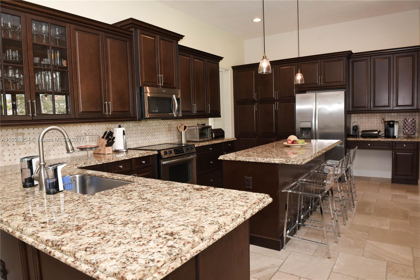 Oversized corner lot on a quiet cul-de-sac. Open floor plan, lots of natural light and a huge private backyard including a masterpiece barbecue area, great to entertain. Tortuga model 4bed/3 full bath featuring many upgrades such as marble and wood floors, impecable finishes, state of the art kitchen, built in bar and impact windows/doors. Monterra offers endless resort style amenities, enjoy a gorgeous clubhouse, pool, kids playroom, fitness center, game room, tennis basketball courts. A + Rated Schools