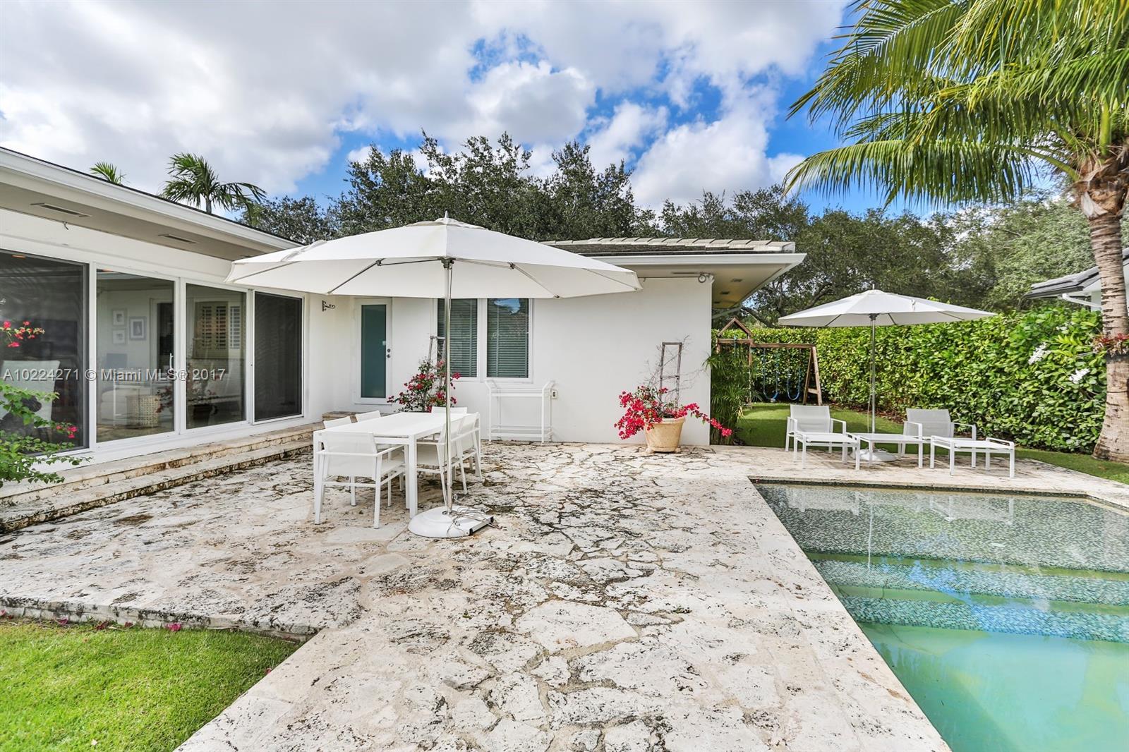 Beautiful 3/2.5 corner lot home in the heart of Coral Gables. Pool and playground for the kids on a 0.25 acre lot. Live-in quarters. Must see.