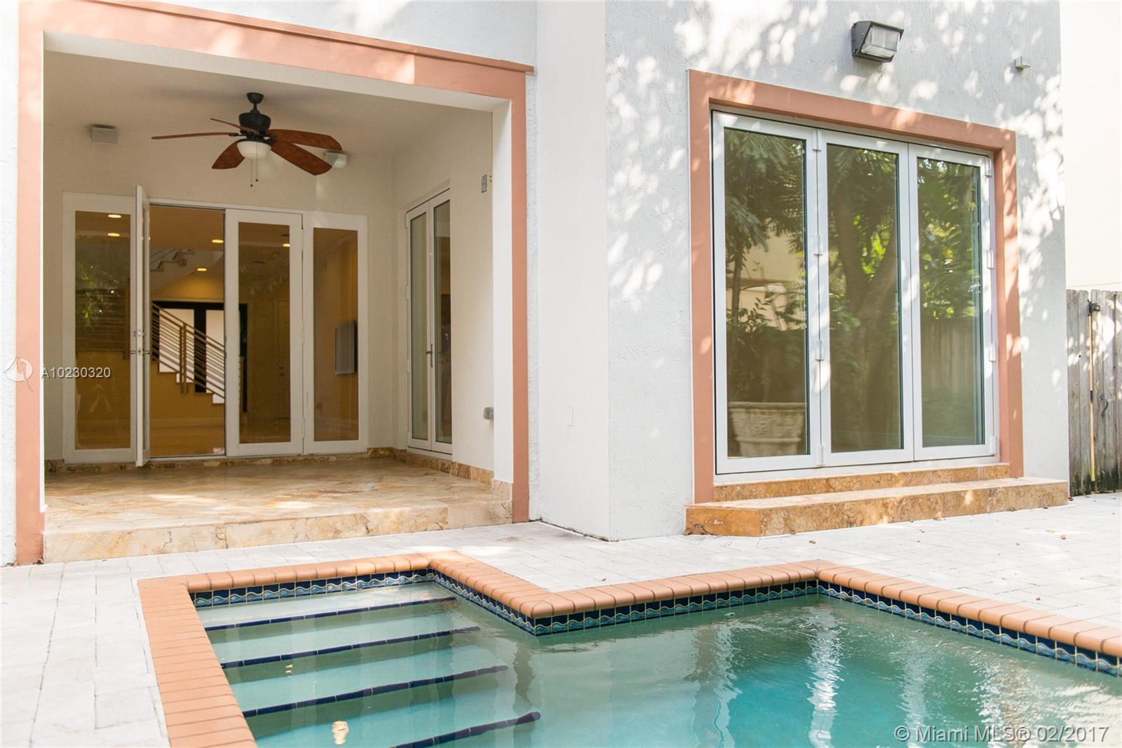 2009 larger townhouse, just a few steps to Center Villages amenities. Great condition, well-laid out with airy spaces; 10 ft ceilings up/down; folding glass wall with storm impact doors in living space with powered screen; porch with powered screen provides protected outdoor dining; salt-water pool; glass-walled light-filled office; sound system; mobile equipped alarm system. 3BRs, 2.5 BAs + office, luxurious master suite with large WIC and expansive bathroom, oversized custom kitchen with gas range.