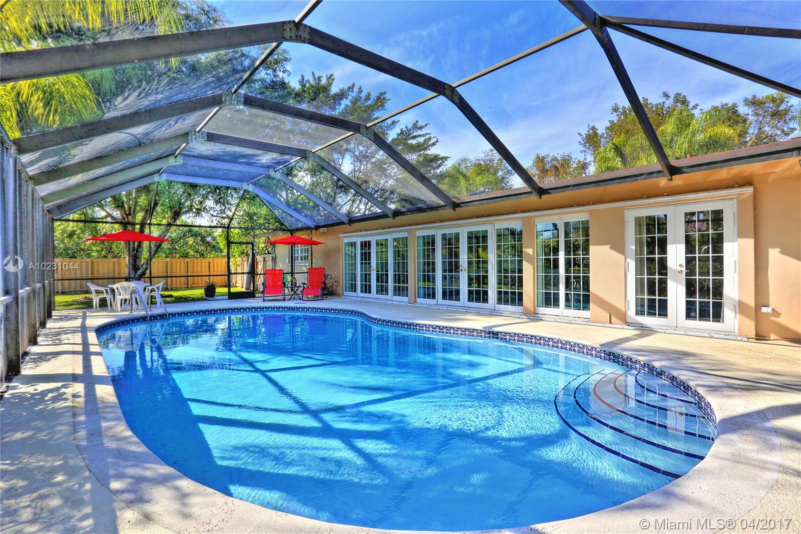 YOU'LL LOVE THIS HOME'S SLEEK AND SOPHISTICATED FLOOR PLAN! 4 BEDROOMS & 4 BATHS MEANS NO SHARING. AN OPEN FLOWING FLOOR PLAN WHERE ROOMS TRANSITION ONE TO THE OTHER! BIG WINDOWS ACROSS THE FRONT..A WALL OF FRENCH DOORS ACROSS THE BACK OPEN TO AN IMMENSE FREE-FORM POOL AND HUGE PATIO PERFECT FOR FAMILY FUN & GUEST ENTERTAINMENT! SPACIOUS GUEST ROOMS. MASTER SUITE WITH WALKIN CLOSETS & LARGE MASTER BATH. FENCED YARD SAFE FOR KIDS AND PETS. BASKETBALL COURT. 2-CAR GARAGE. NEW ROOF! FIVE MIN WALK TO SCHOOL.