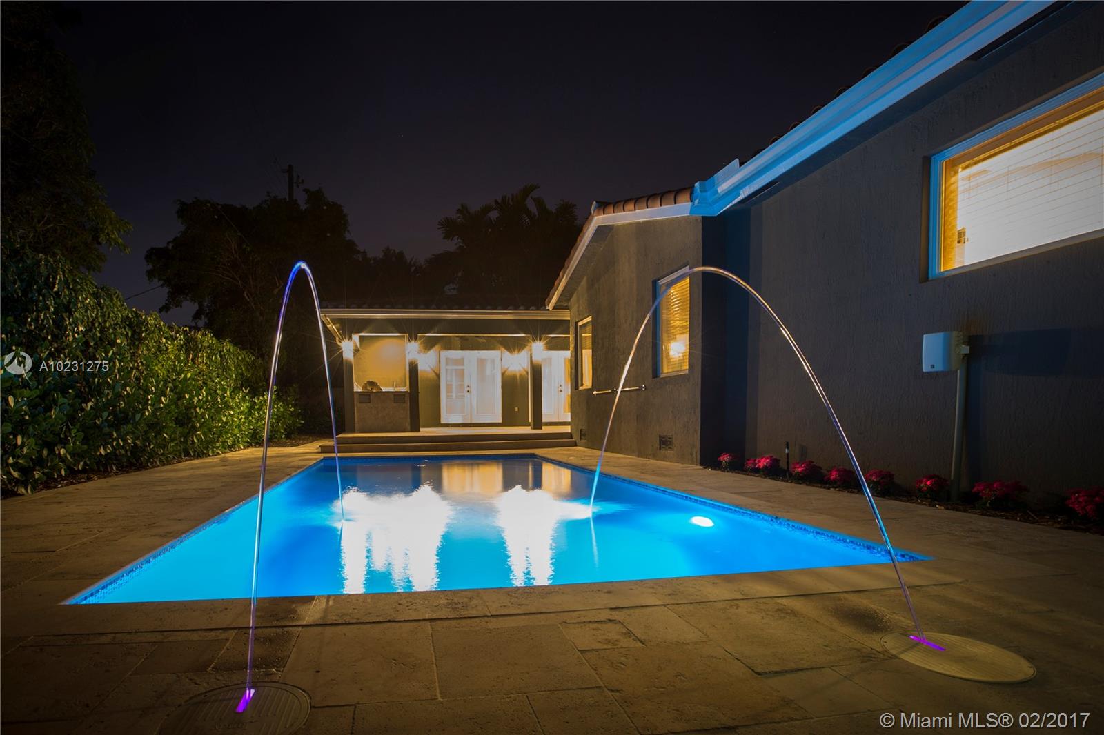 Immaculate North Gables home awaits  you and your family.  Freshly remodeled 3-bedroom 2-bath pool home with media/bonus room and summer kitchen.  Great for entertaining.  New open kitchen, with solid wood cabinetry, top of the line stainless steel appliances, dark granite and mood lighting.  Master suite with large master bathroom and closets.  This home has been meticulously appointed and should be at the top of your list.
