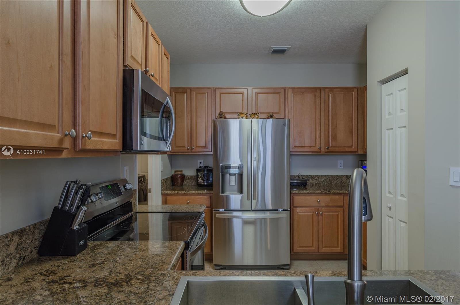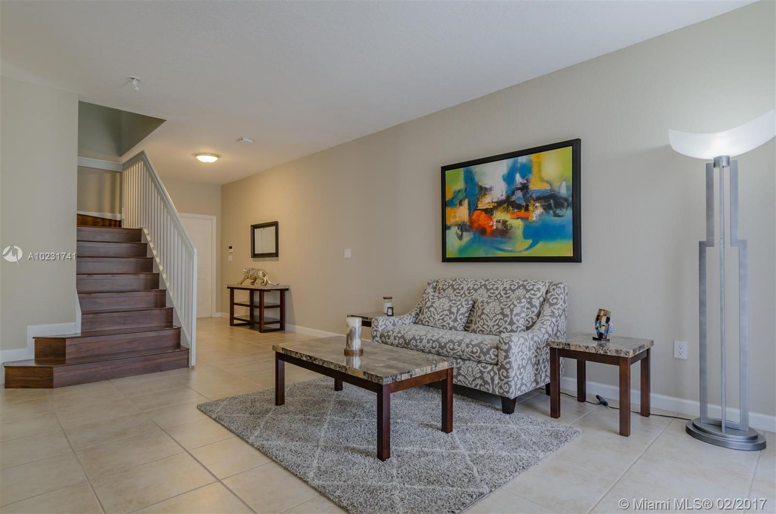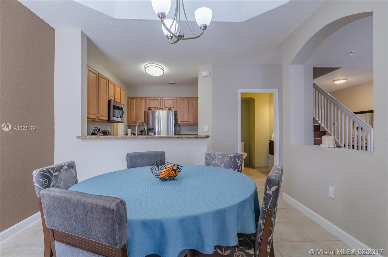 Beautiful elegant fully upgraded 4/2.5 home in Doral. This well maintained home is amazing, kitchen with SS appliances, granite countertops, new washer & dryer, large pantry. 1st floor with large tiles 2nd floor has dark wood laminate flooring. All 3 bathrooms fully upgraded, master bathroom double sink. Back yard has pavers, large space great for entertaining. Community has guard.