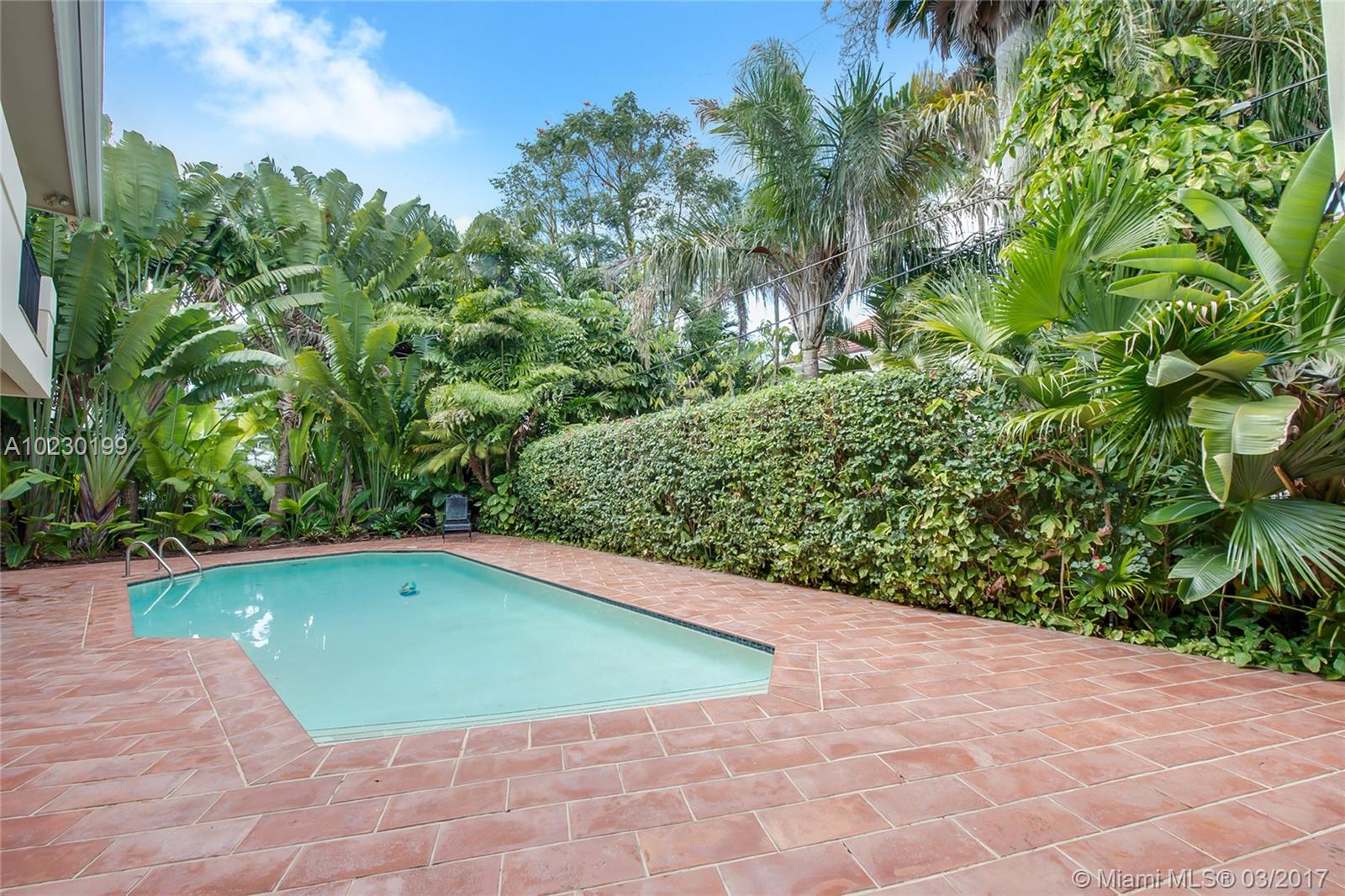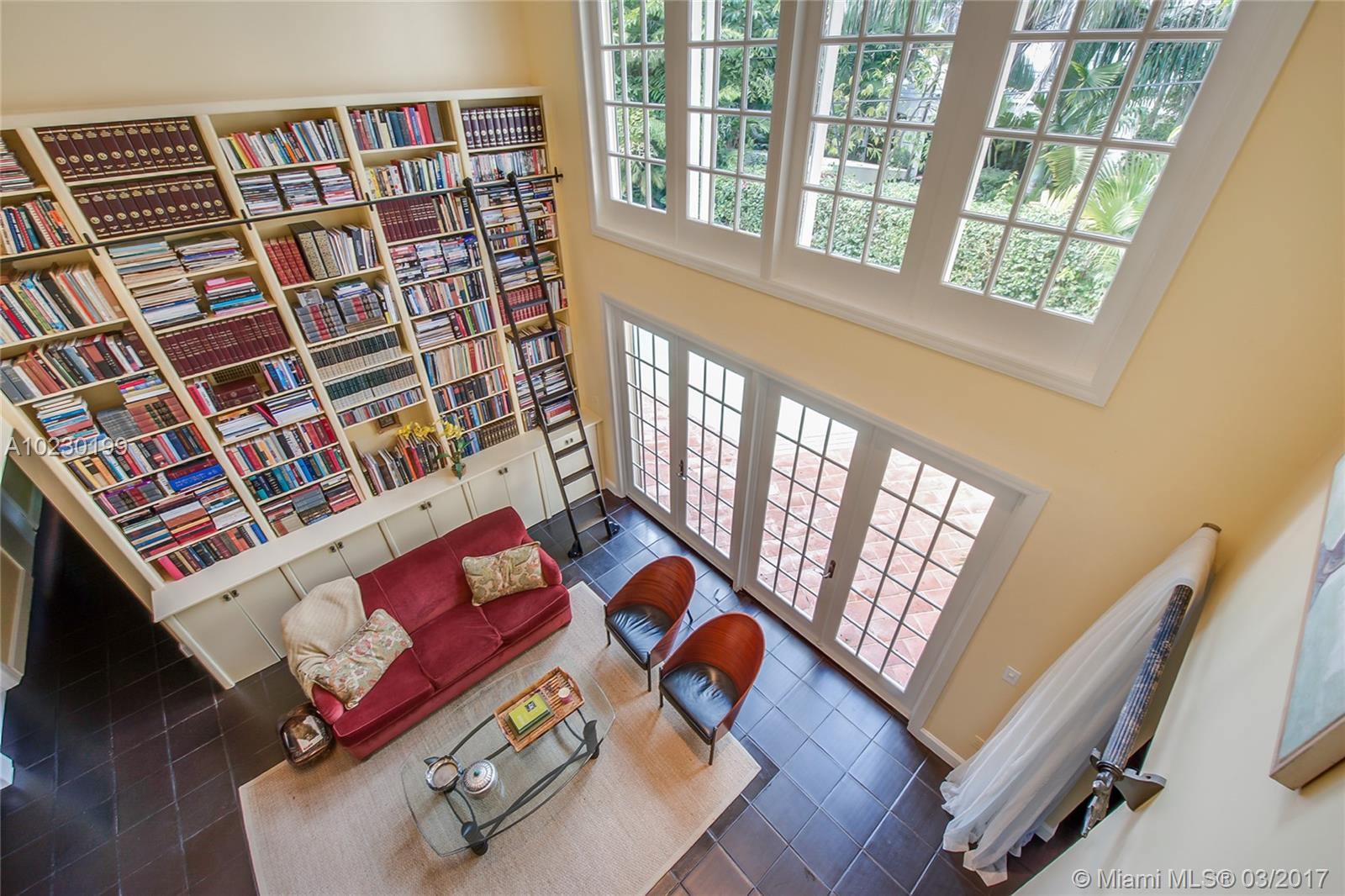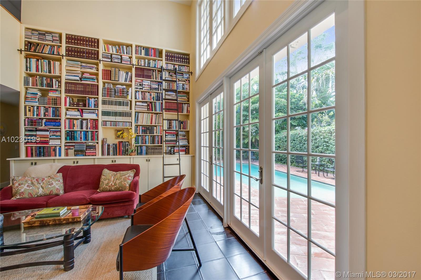 Wonderful opportunity to live on a great S. Gables oak lined street with beautiful homes and a coveted lifestyle. Light filled Living Room with 20 ft. ceilings and dramatic built in library wall with rolling ladder. 2015 Kitchen with white wood cabinets with quartz countertops, breakfast area, and adjoining Family Room. Formal Dining with charming patio. Master with private terrace. French doors out to a large Pool. Garage. Enjoy all the best of Coral Gables and SOMI.