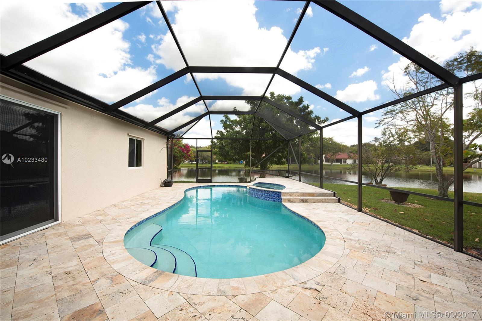 Your home awaits at Waterford Landing in Weston, FL. This Lakefront, 5 bedroom, 3.5 bath home delivers a serene, relaxing view that may be enjoyed by you, your family and friends. Imagine you're lounging in your screened patio on the lake as you smile while the family romps in the swimming pool and spa. Raining outside? That's ok, there is the Media room with screen and projector for bigger than life games, videos or just broadcast TV. Call, make an appointment for a private showing. This may be the one.