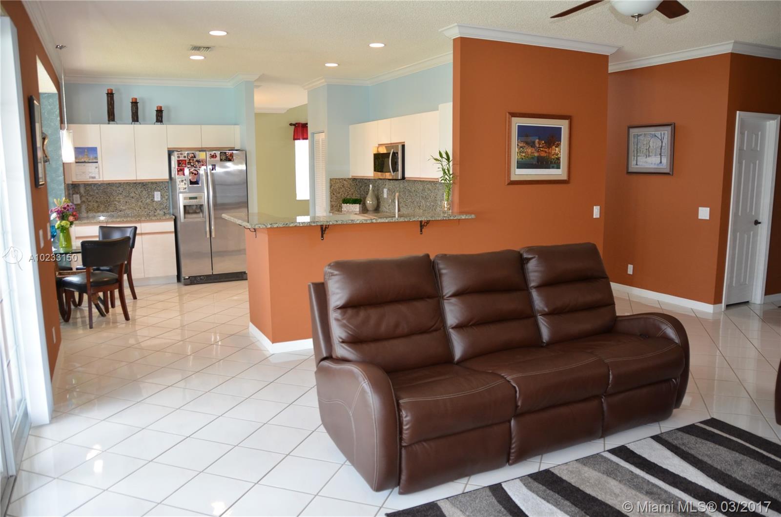 Gorgeous 4 bedroom, 2.5 bathroom home in the guard gated community of The Falls! Lots of upgrades including granite counter tops, newer stainless steel appliances and accordion shutters. Master Suite includes separate sitting room/office and two walk-in closets. Master Bath features separate soaking tub and shower with frameless glass door. Large fenced yard with plenty of room for a pool. Light and bright and ready to move in! Community amenities include sparkling pool, basketball, volleyball, play area.