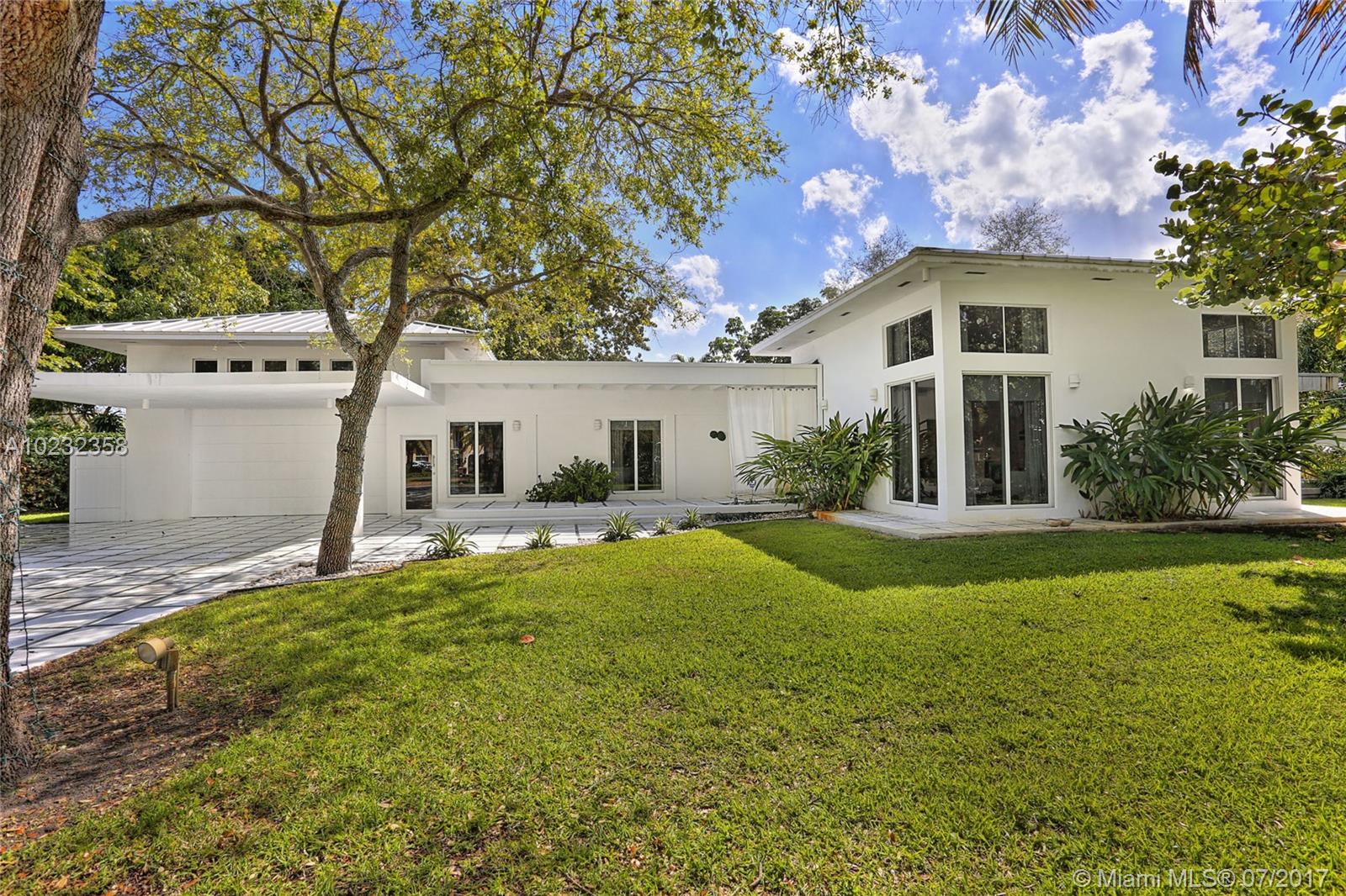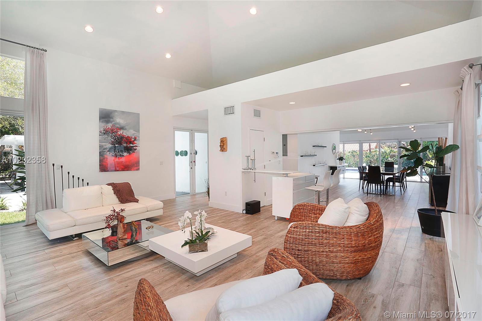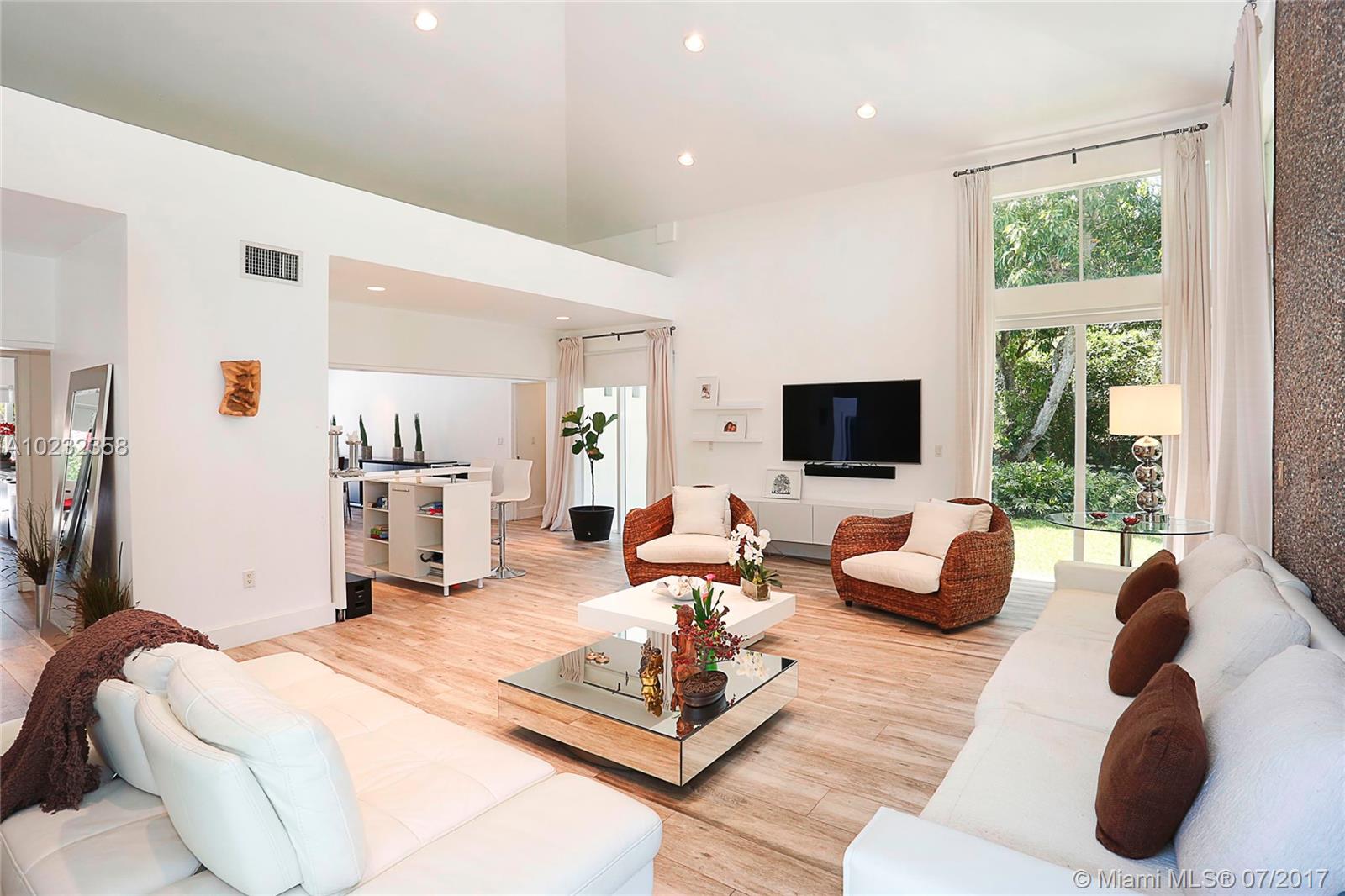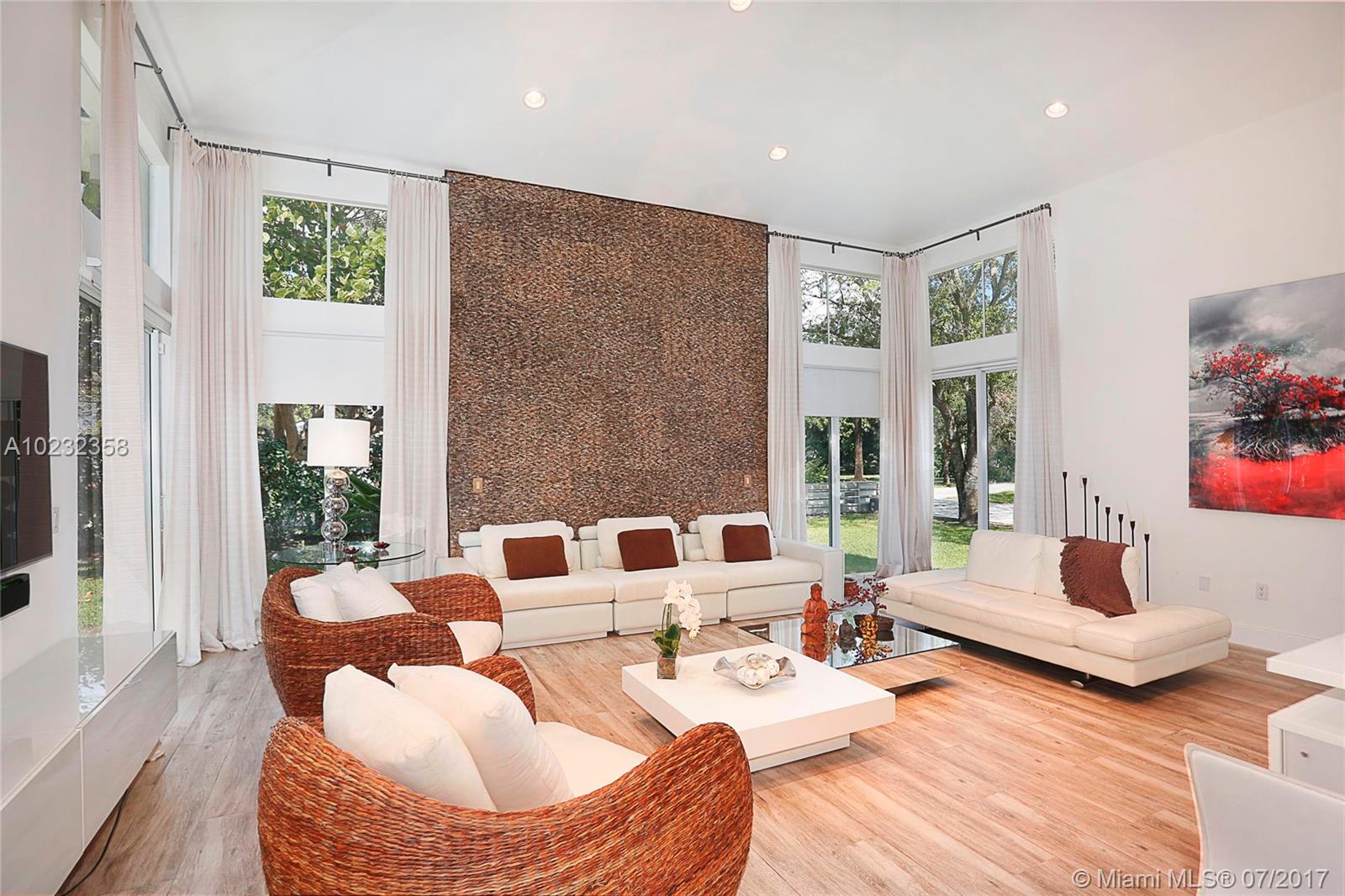 Fabulous offering! Pinecrest Sleek and modern custom home situated on a beautiful tropical setting and excellent location, close to Pinecrest schools, parks and tennis club! Stunning gated executive home recently redesigned and updated with 2 story high volume ceiling, spa-zen feeling. European style kitchen and baths. Split plan. Large A/C garage. Great room floor plan for wonderful entertaining and easy family life style! Metal roof, impact glass. Open and airy. Home sweet home!