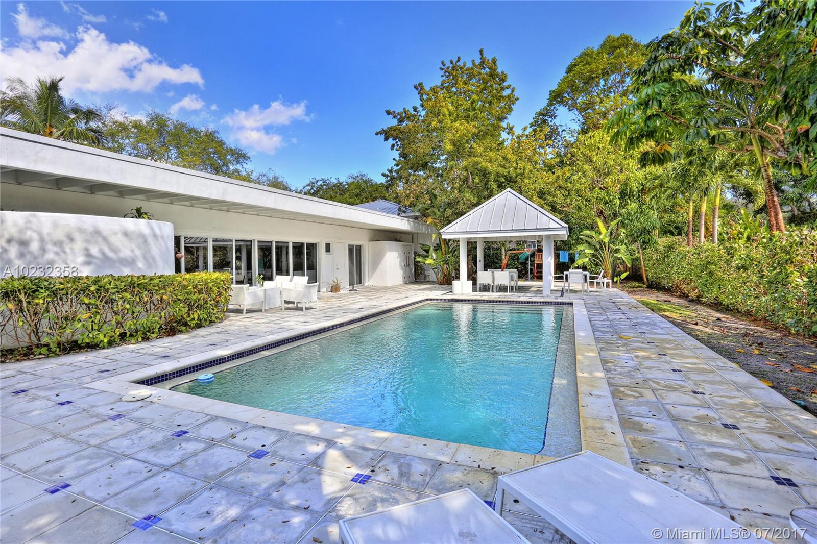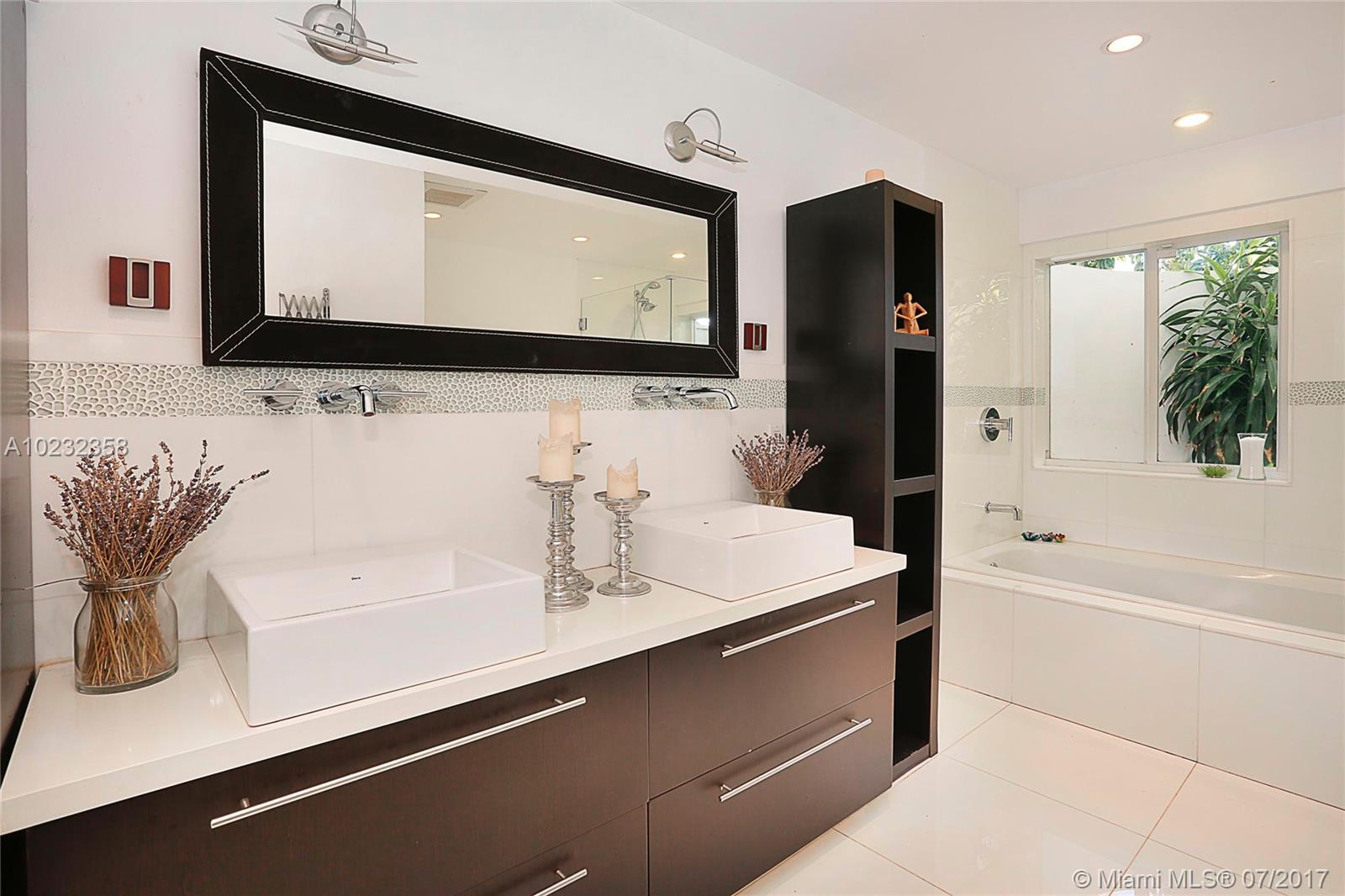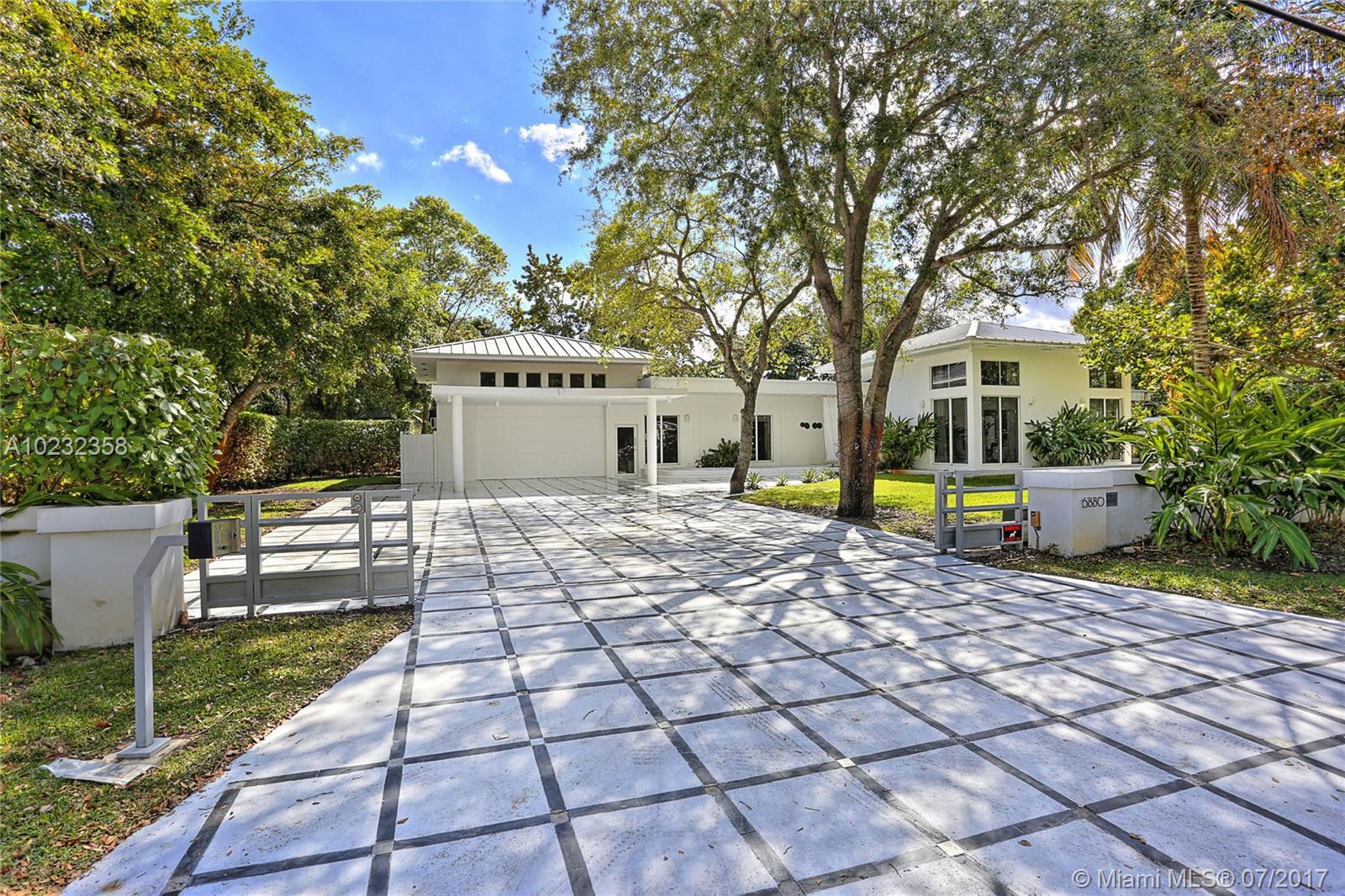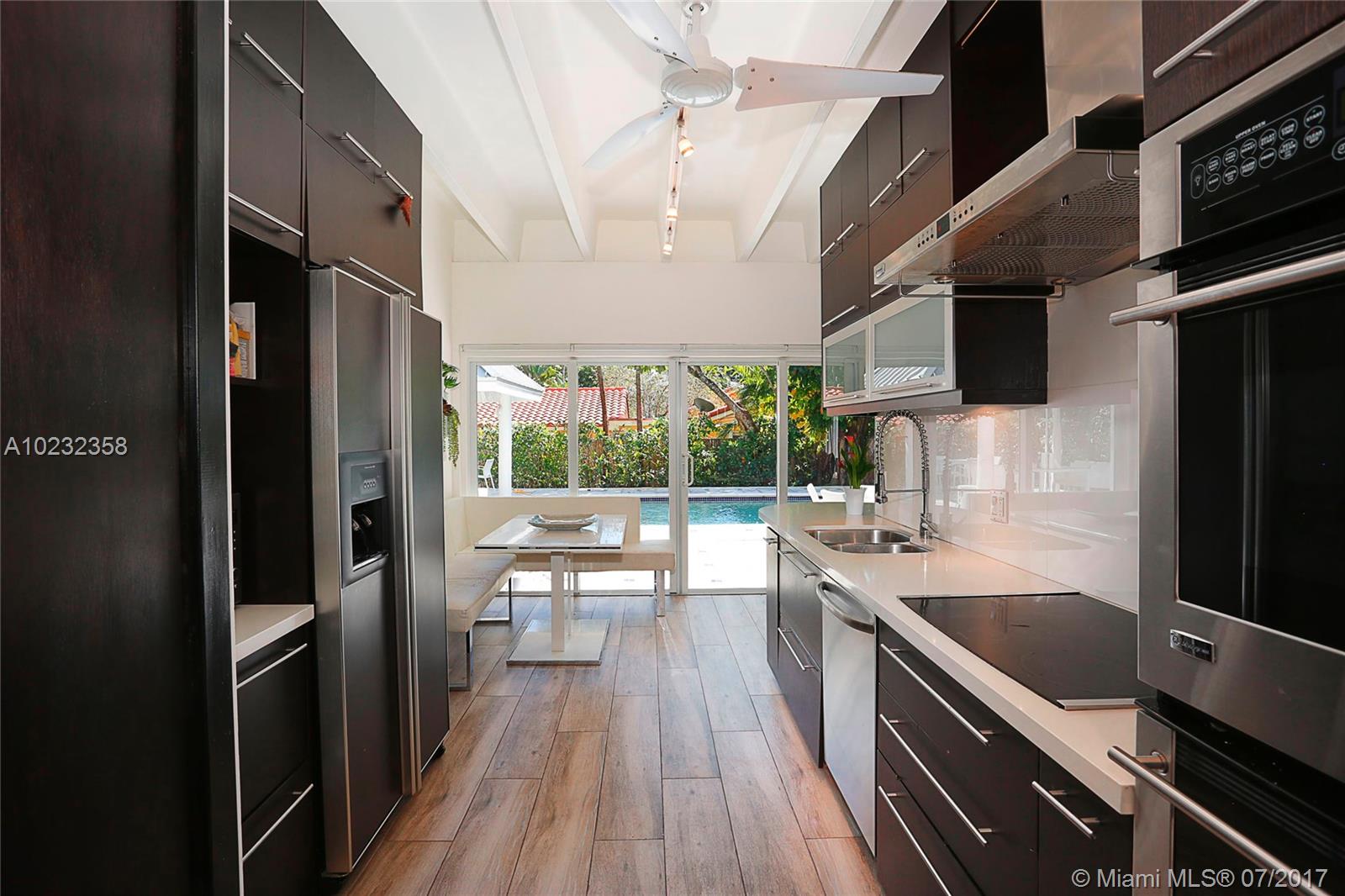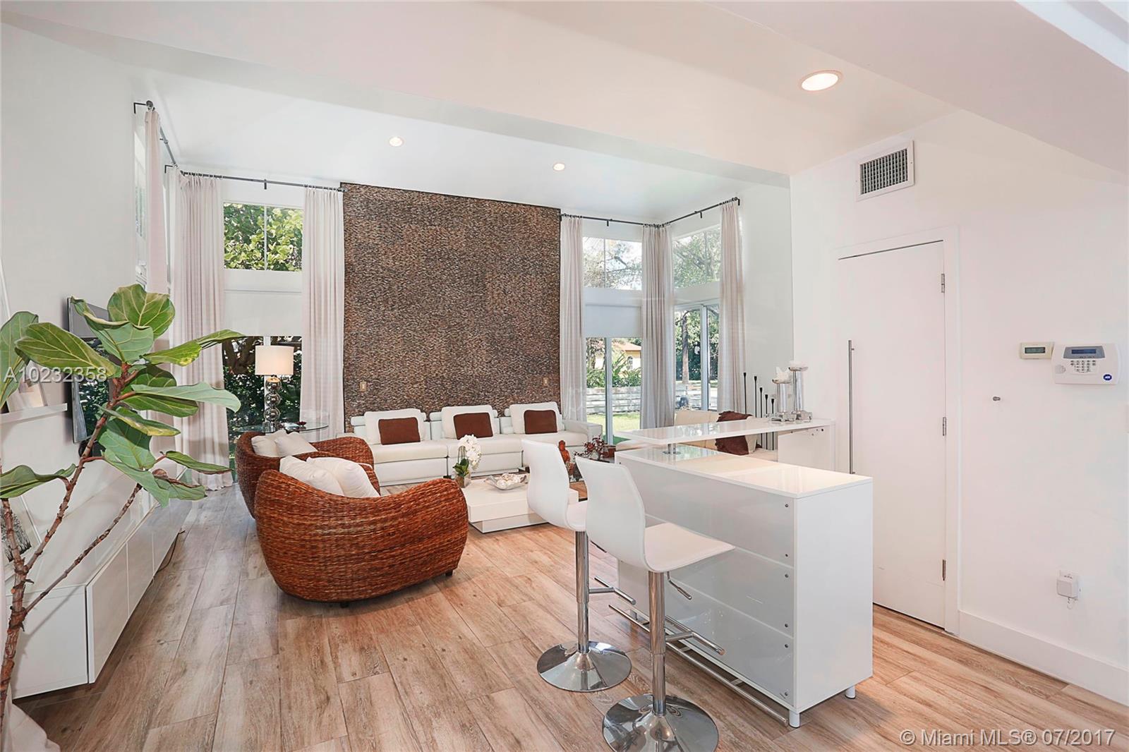 Fabulous offering! Pinecrest Sleek and modern custom home situated on a beautiful tropical setting and excellent location, close to Pinecrest schools, parks and tennis club! Stunning gated executive home recently redesigned and updated with 2 story high volume ceiling, spa-zen feeling. European style kitchen and baths. Split plan. Large A/C garage. Great room floor plan for wonderful entertaining and easy family life style! Metal roof, impact glass. Open and airy. Home sweet home!