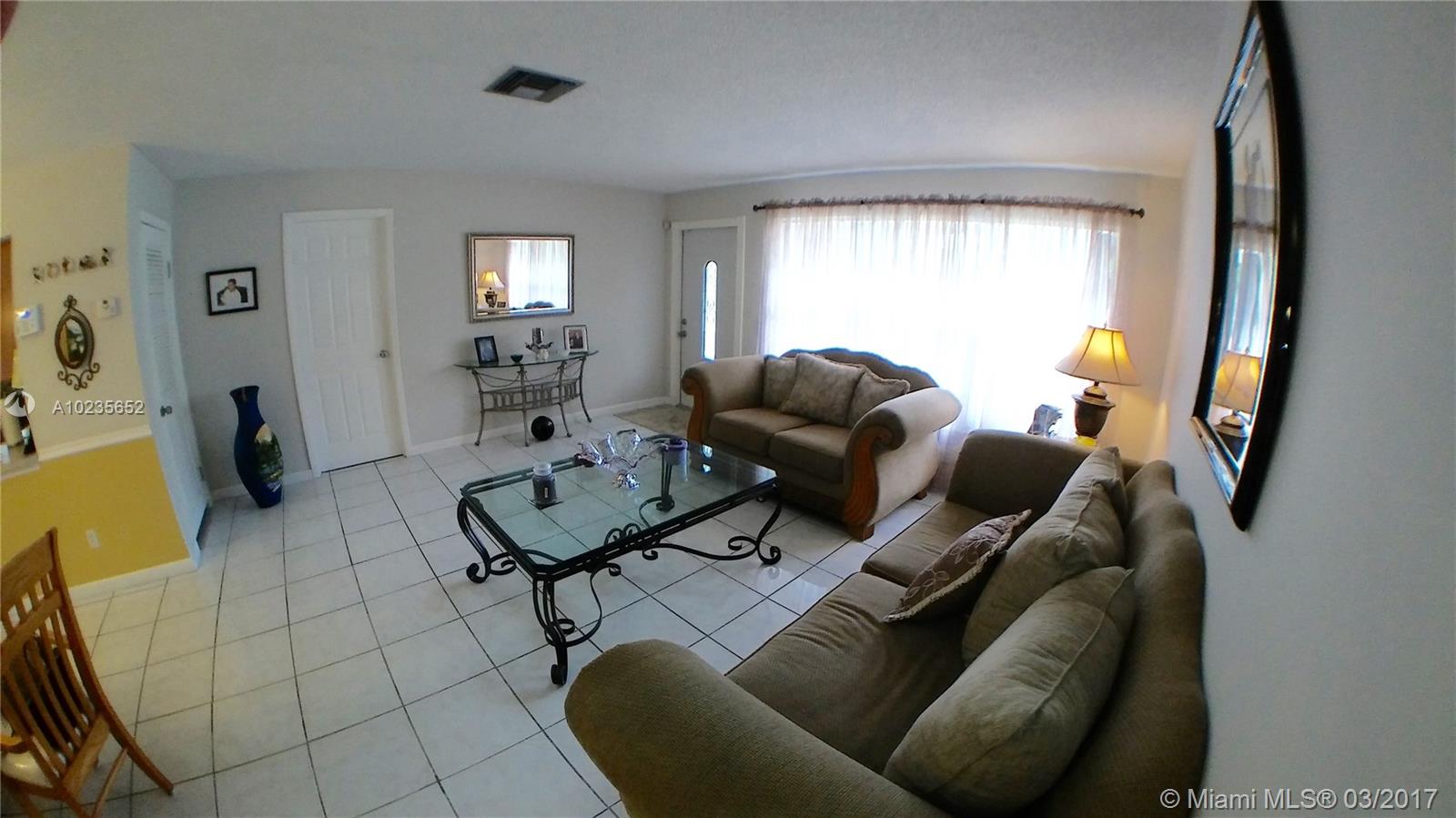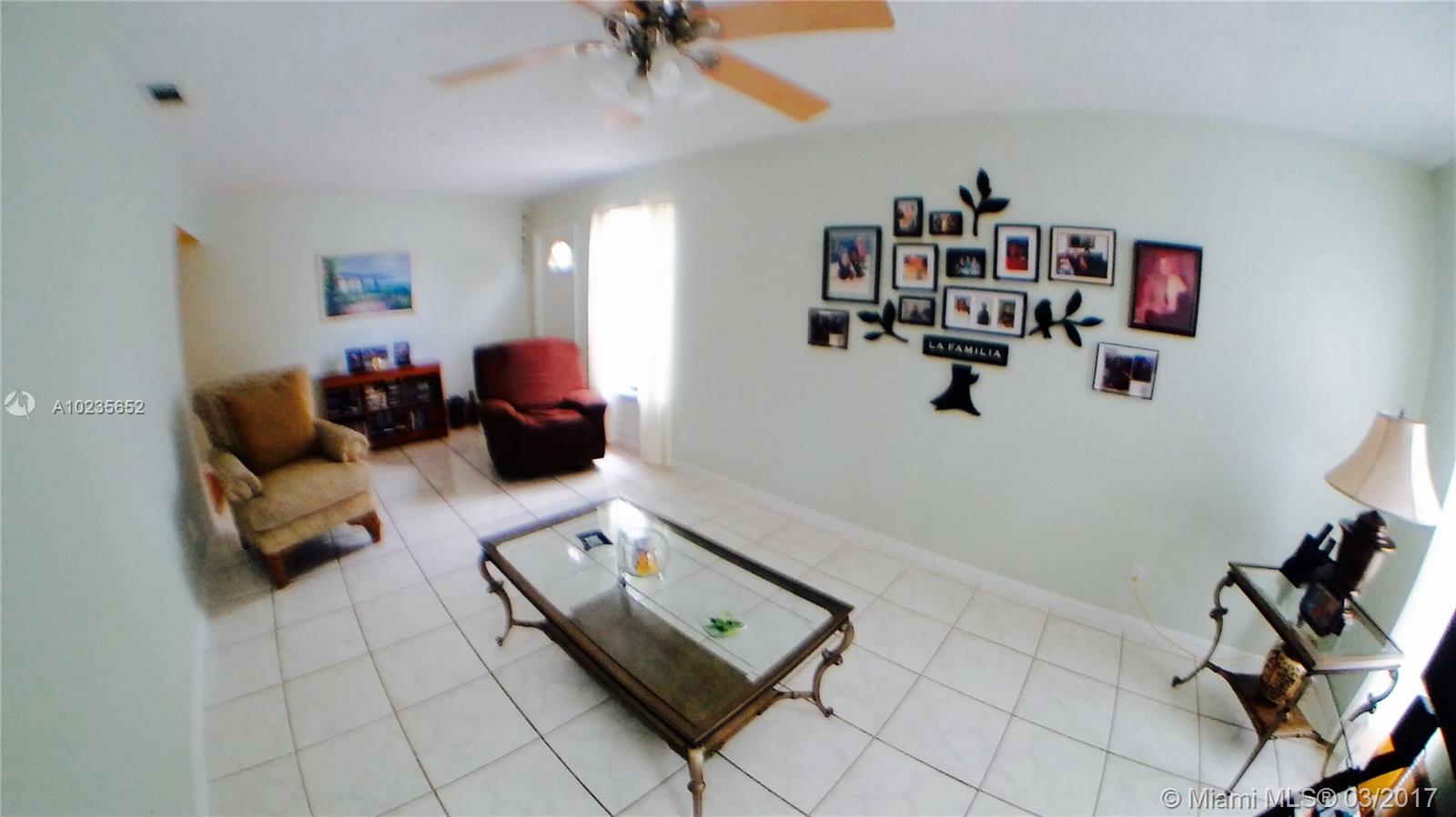 *Cash backup contract only* Immaculate, upgraded 1-story house in the heart of Miramar featuring 3 bedrooms, 2 baths and a family room that can easily be converted to 4th bedroom. Remodeled eat-in kitchen and baths. Completely tiled. Decorative wall mouldings. Huge fenced backyard w/fruit trees *great for family BBQs & entertaining. Alarm system. Plenty of parking spaces. No association. Hurry! Will not last!
