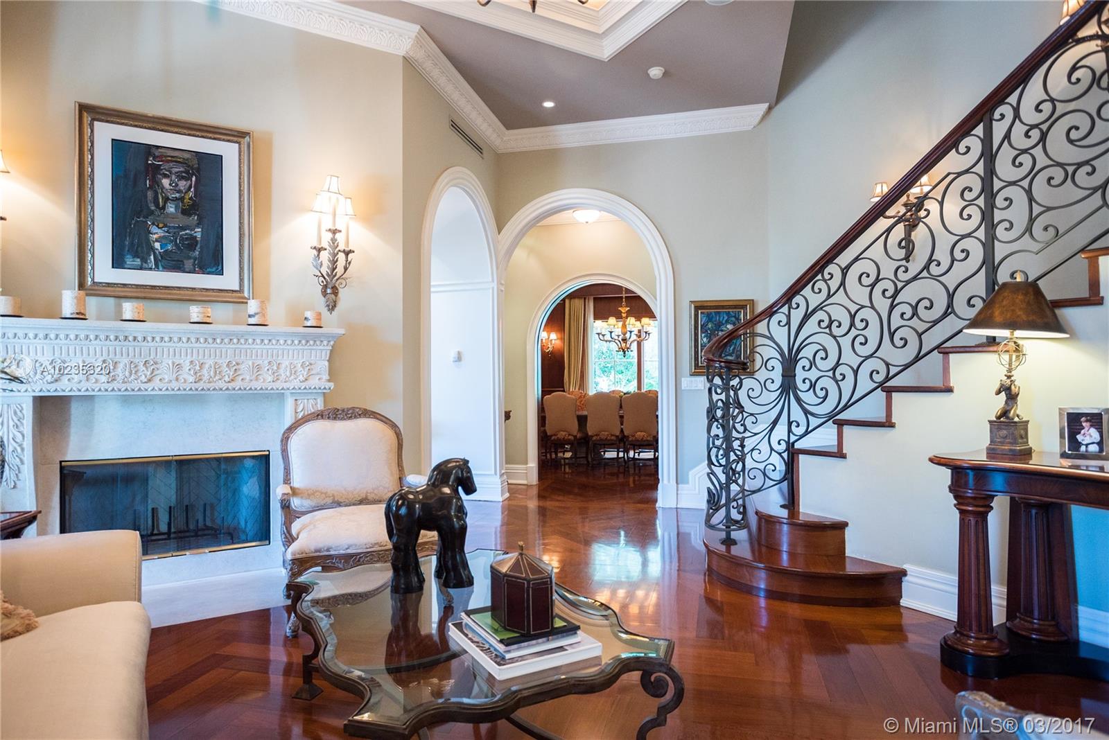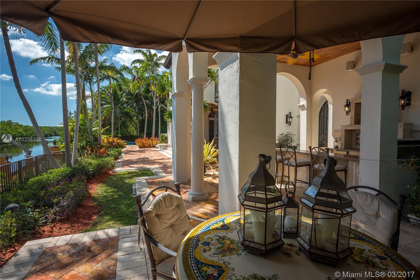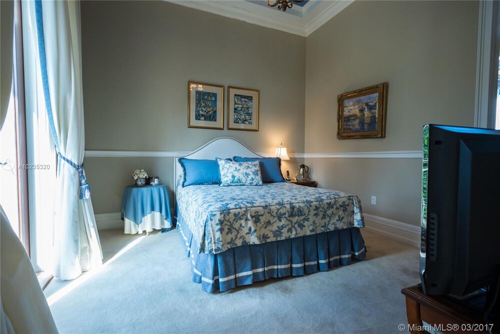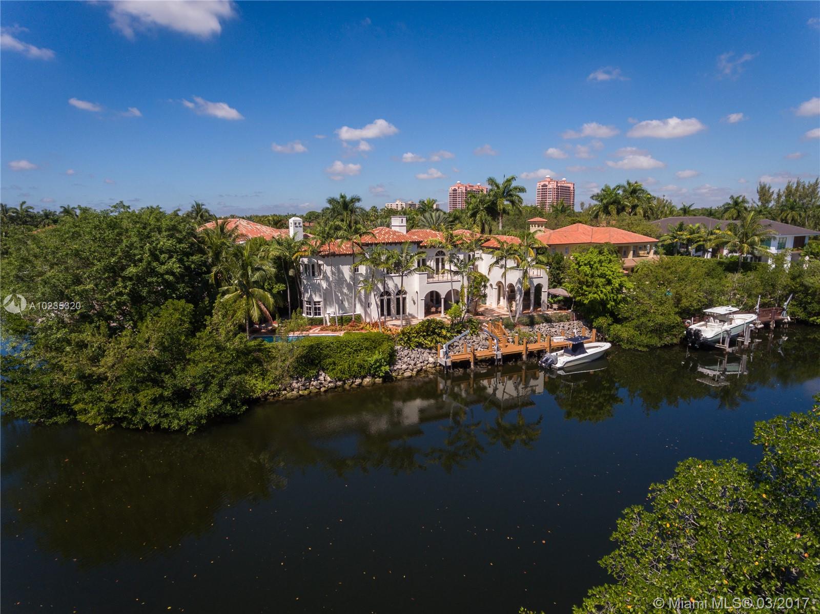 Exquisite Private Waterfront Residence, Enclosed Breezeway Entry, High Coffered ceilings, gorgeous Millwork, Summer kitchen,wine storage for 750 bottles, Gym, Gourmet Kitchen, Pantry, 5 bedrooms, 4 Baths on 2nd Floor, balconies, Elevator. 6th Bedroom Suite on first floor, now used as Office. Expansive Private Master with Sitting Area, luxurious bath, extra large closets. Terraces overlooking Pool and water views. A truly beautiful home. 2005 Winner, Best Custom Home Platinum Award. 15,428 Ft Lot.
