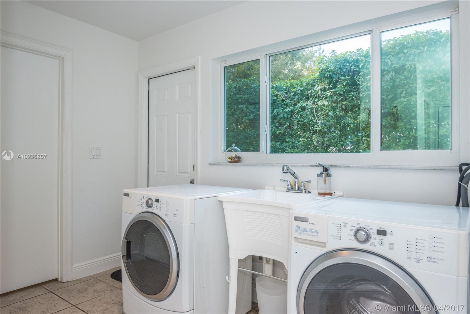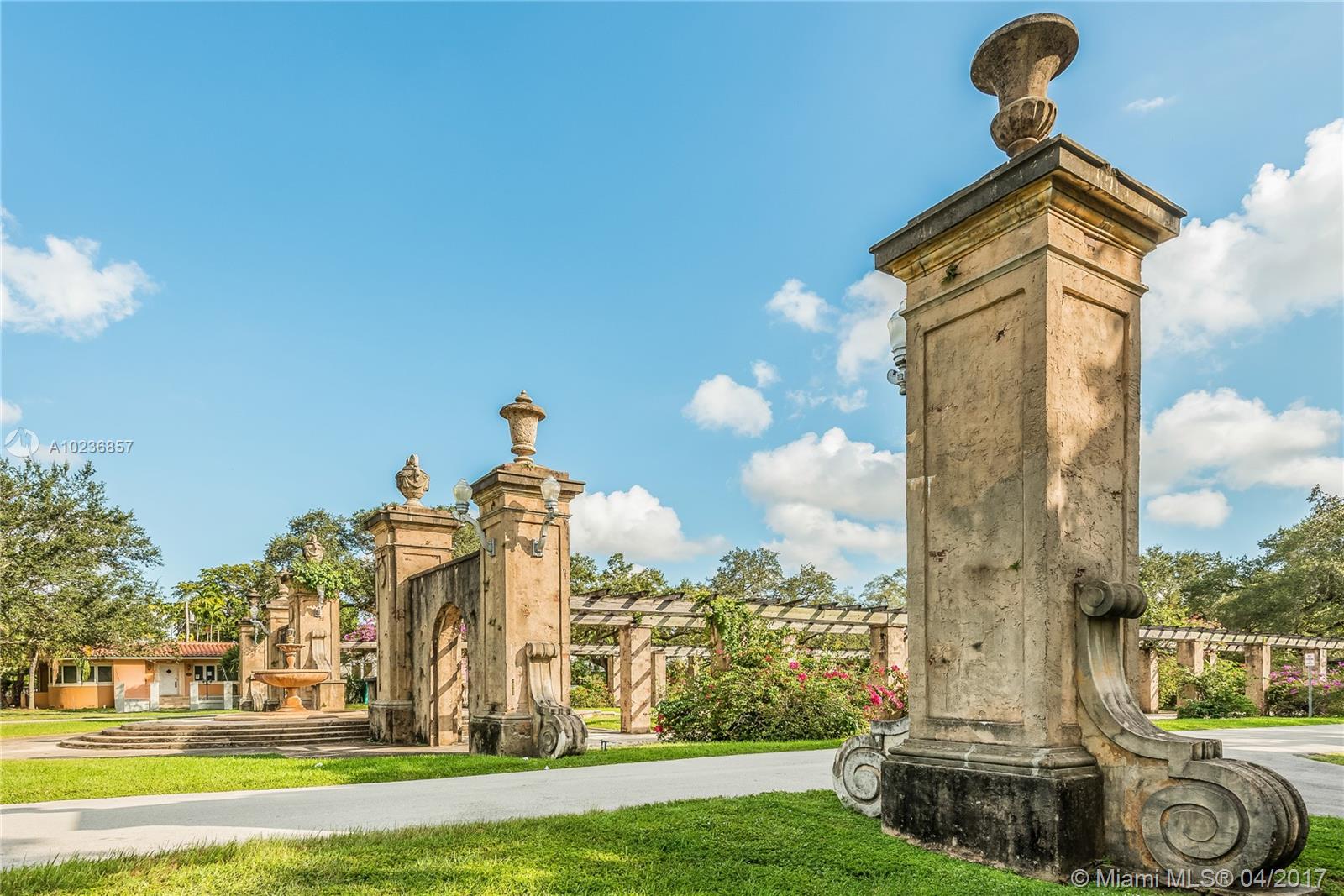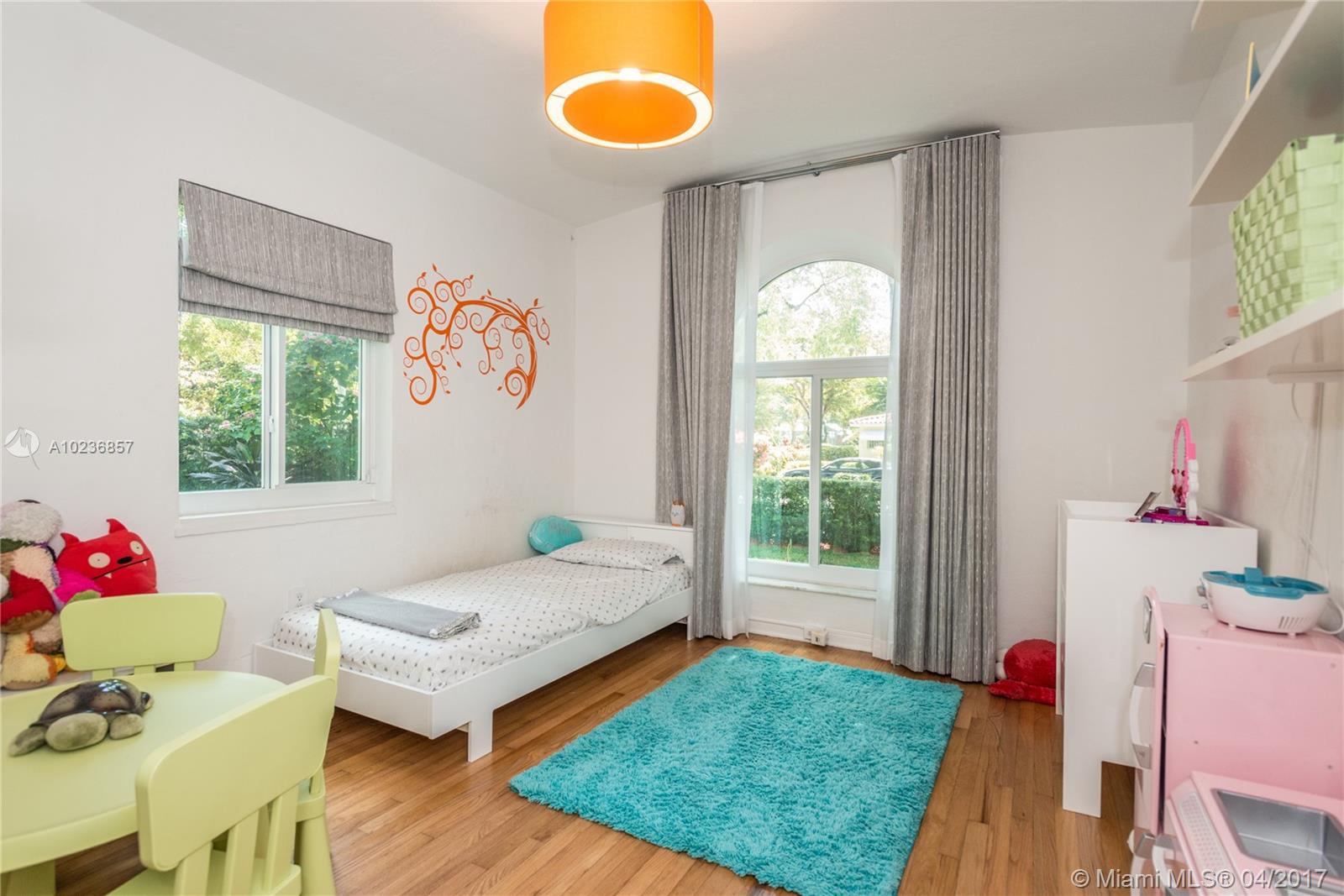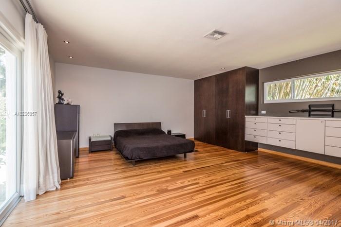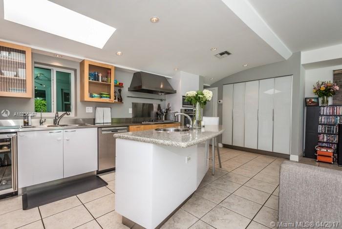 On a lush tree lined street in exclusive city of Coral Gables, modern elegance meets classic style. This charming home is surrounded by tropical landscaping & sits on an oversized 13,500 sq. ft. lot with pool & large patio, perfect for entertaining. This residence features vaulted ceilings, wood flooring, lots of light, internet wiring throughout, built in storage & computer nook, stainless steel appliances, ample storage, laundry area, new driveway with gate, spacious open kitchen & formal dinning room.