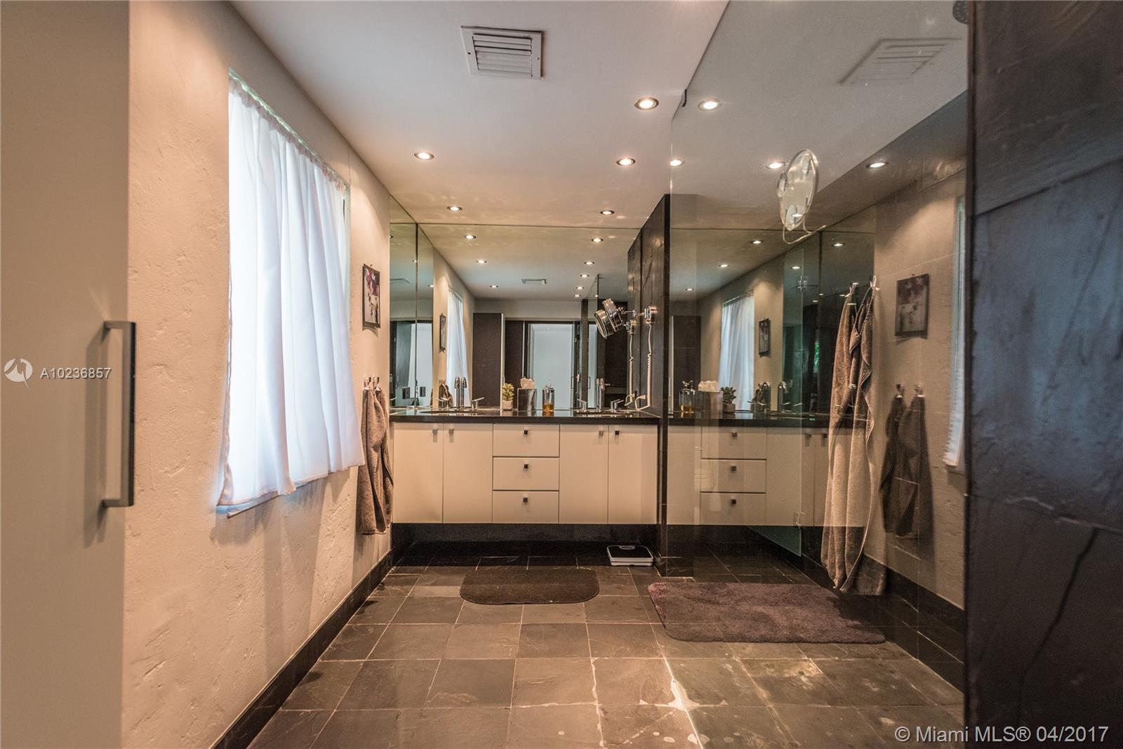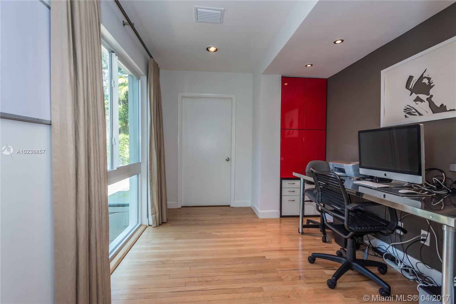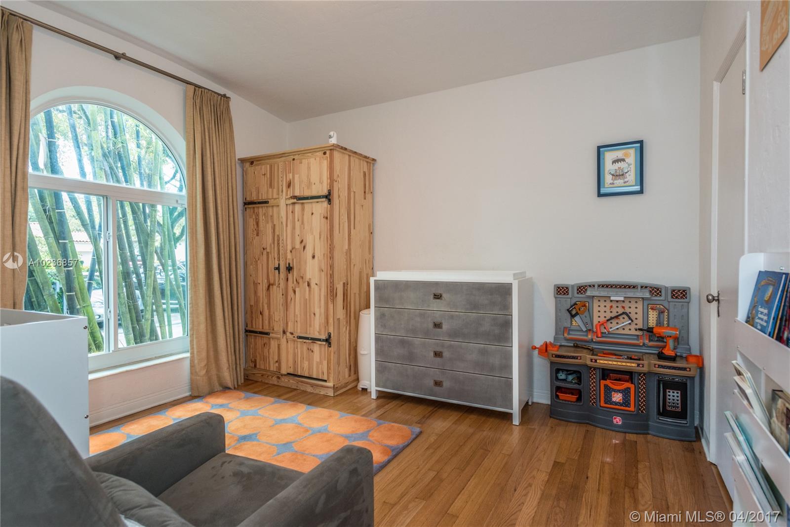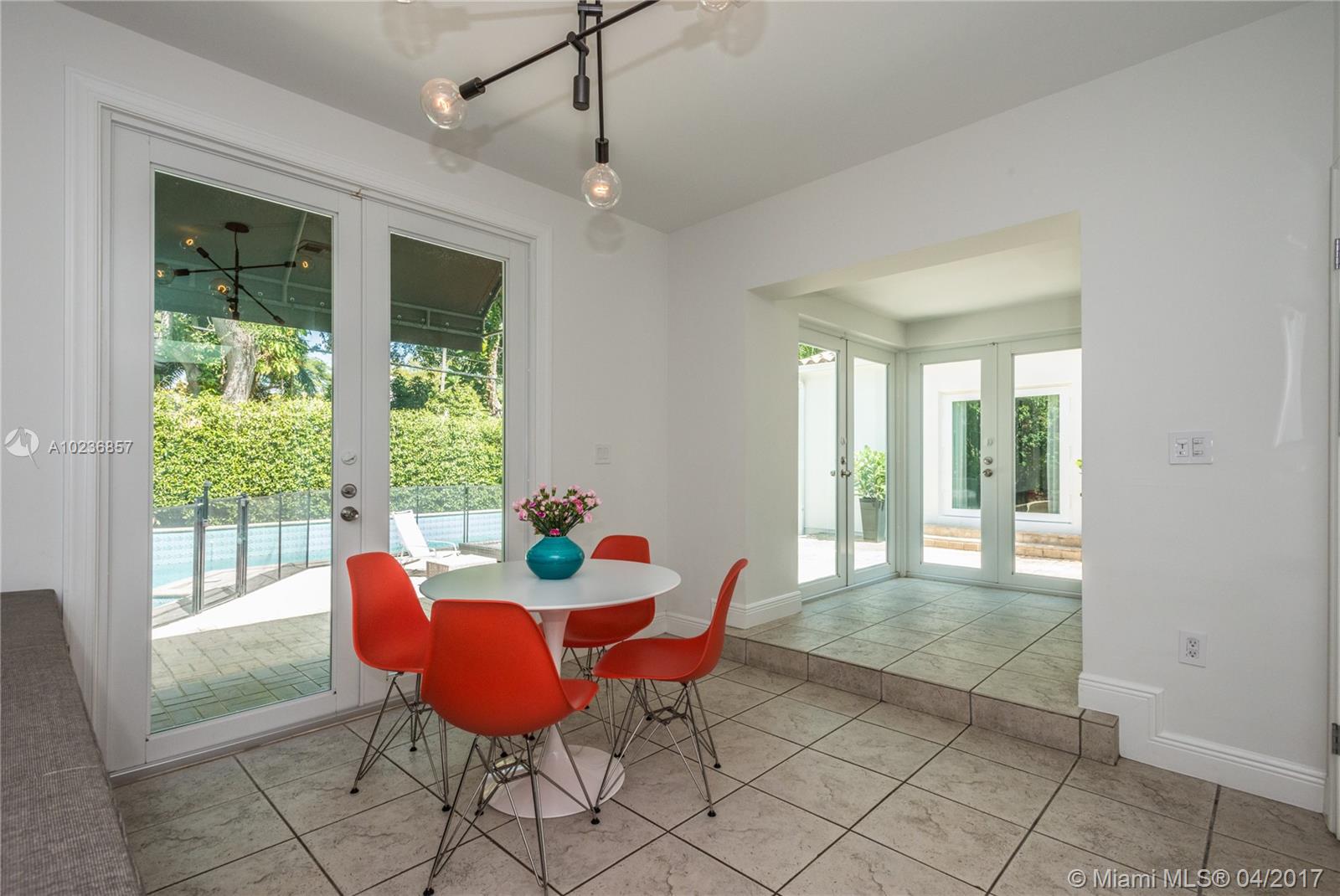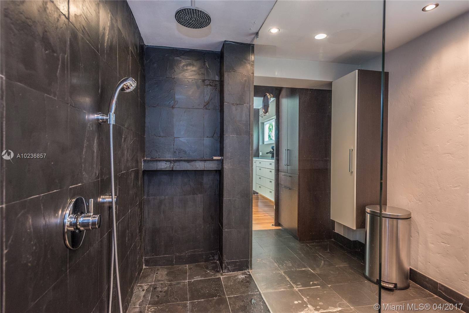 On a lush tree lined street in exclusive city of Coral Gables, modern elegance meets classic style. This charming home is surrounded by tropical landscaping & sits on an oversized 13,500 sq. ft. lot with pool & large patio, perfect for entertaining. This residence features vaulted ceilings, wood flooring, lots of light, internet wiring throughout, built in storage & computer nook, stainless steel appliances, ample storage, laundry area, new driveway with gate, spacious open kitchen & formal dinning room.