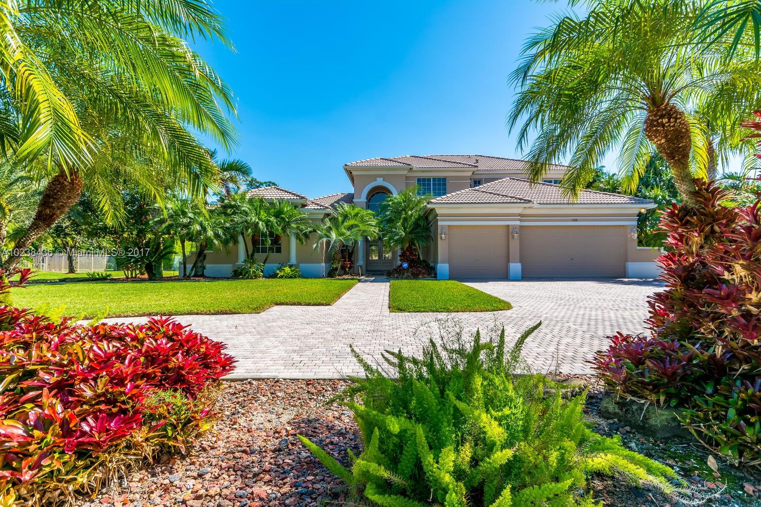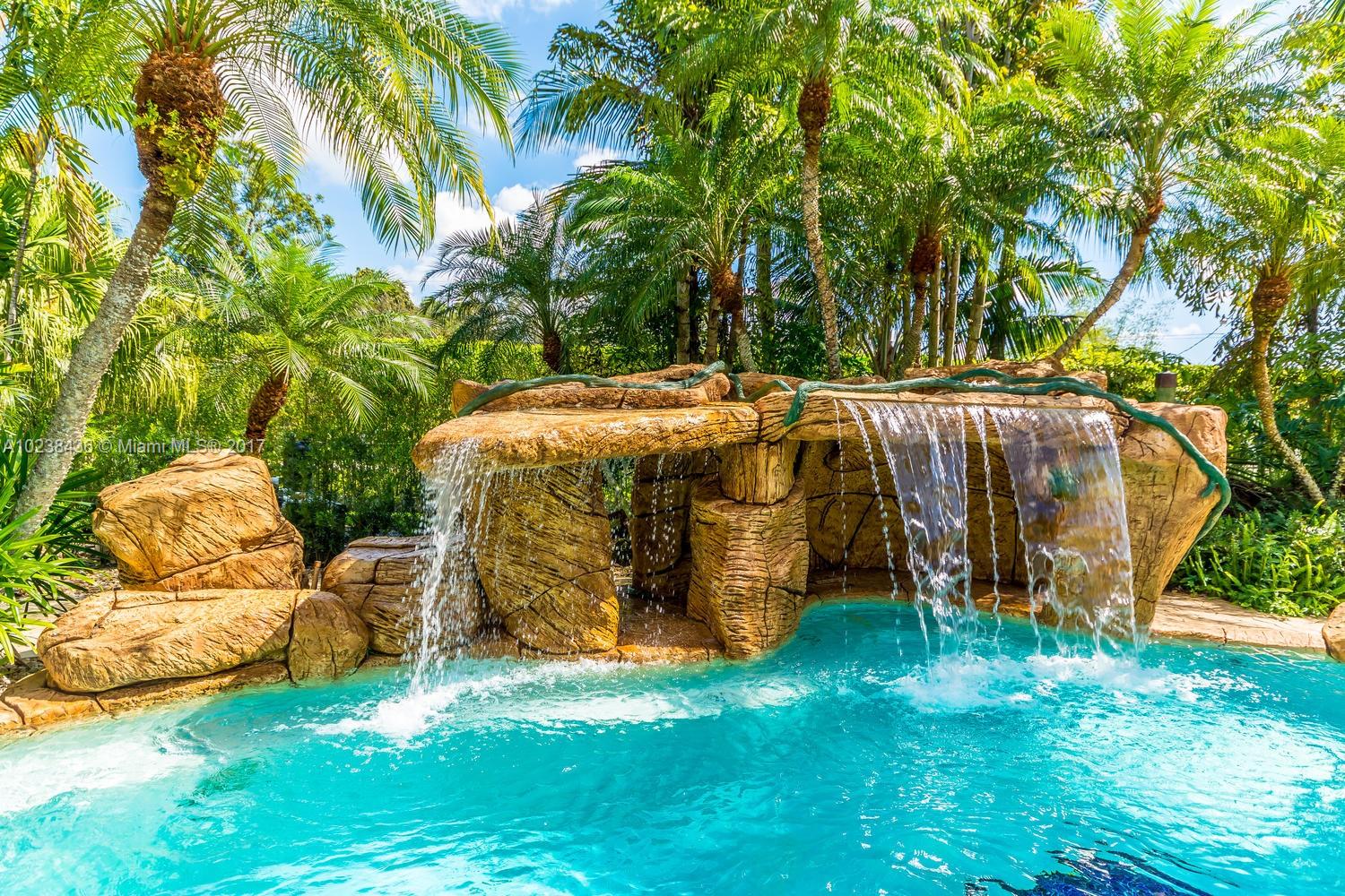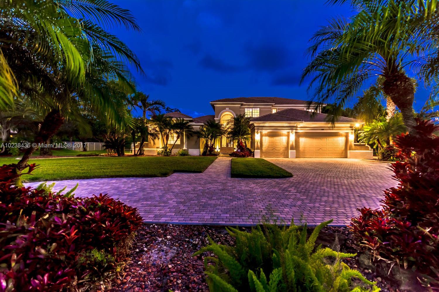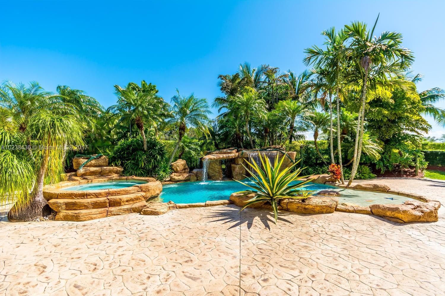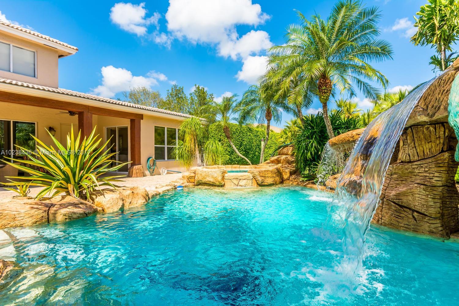 Estate section of the prestigious Country Glen . Elegant masterpiece located on one acre lot . 5 bedrooms 4 full baths and an office. Master suite located on the main floor. Open kitchen with granite counters , wood cabinets , pantry. Travertine floors on the main floor. Dazzling waterfall pool with lush tropical landscape featured in Better Homes and Gardens . 3 car garage . Gated community. A+++ schools. Must see !!!
