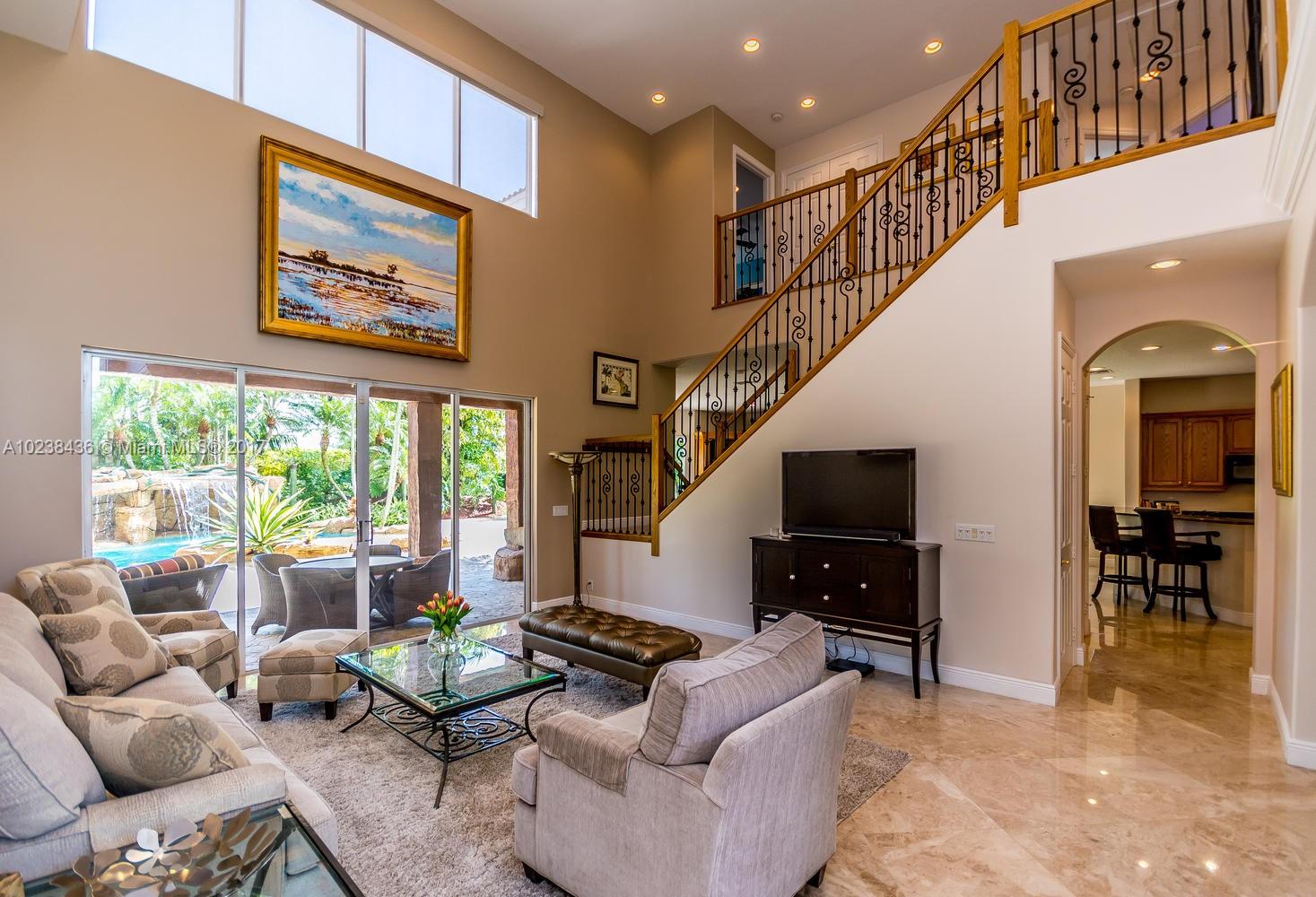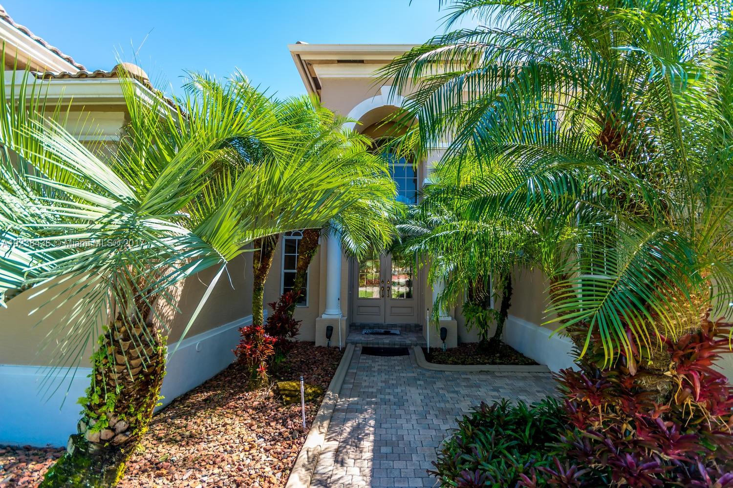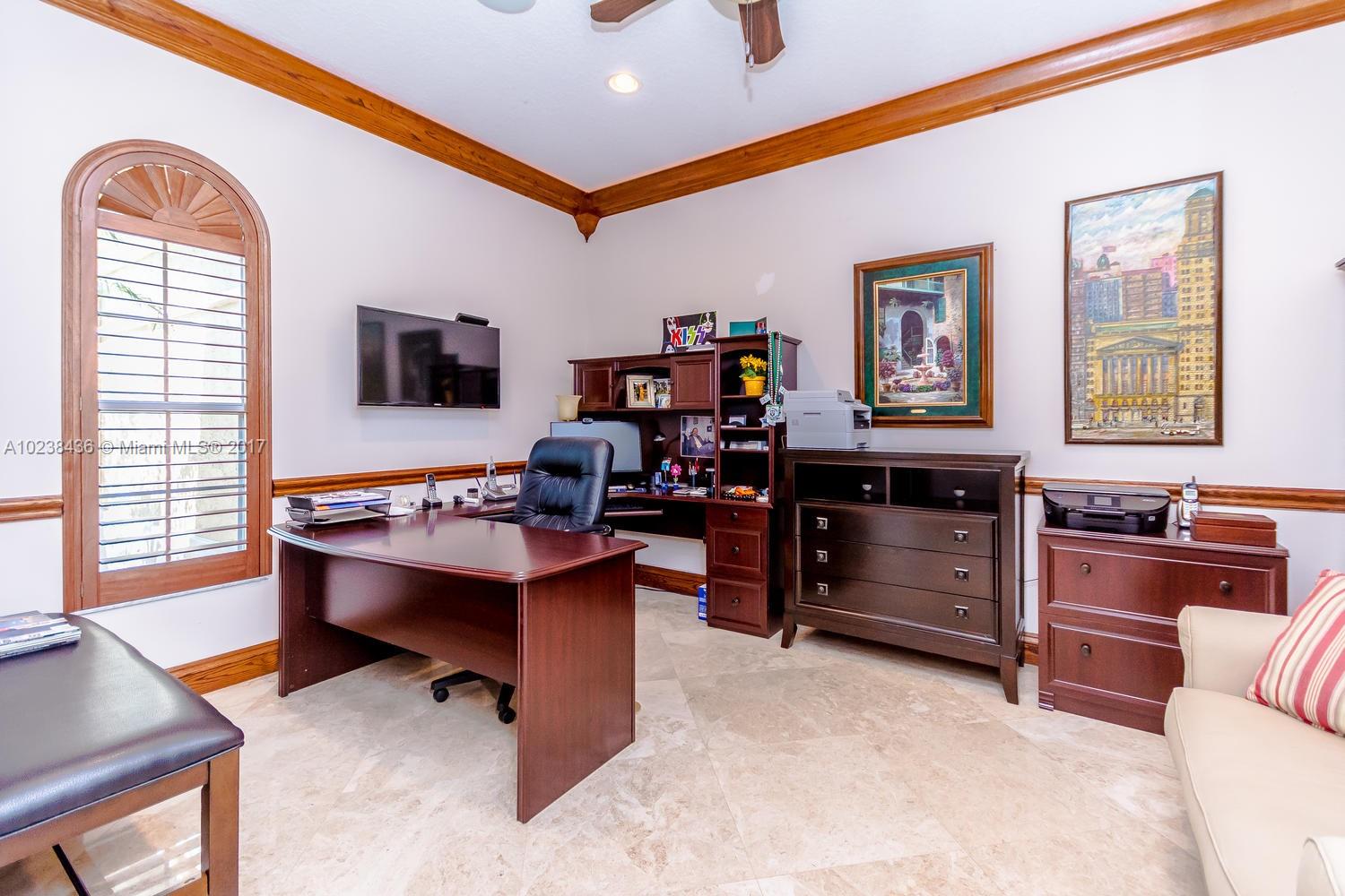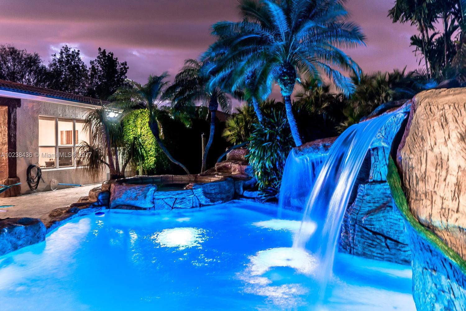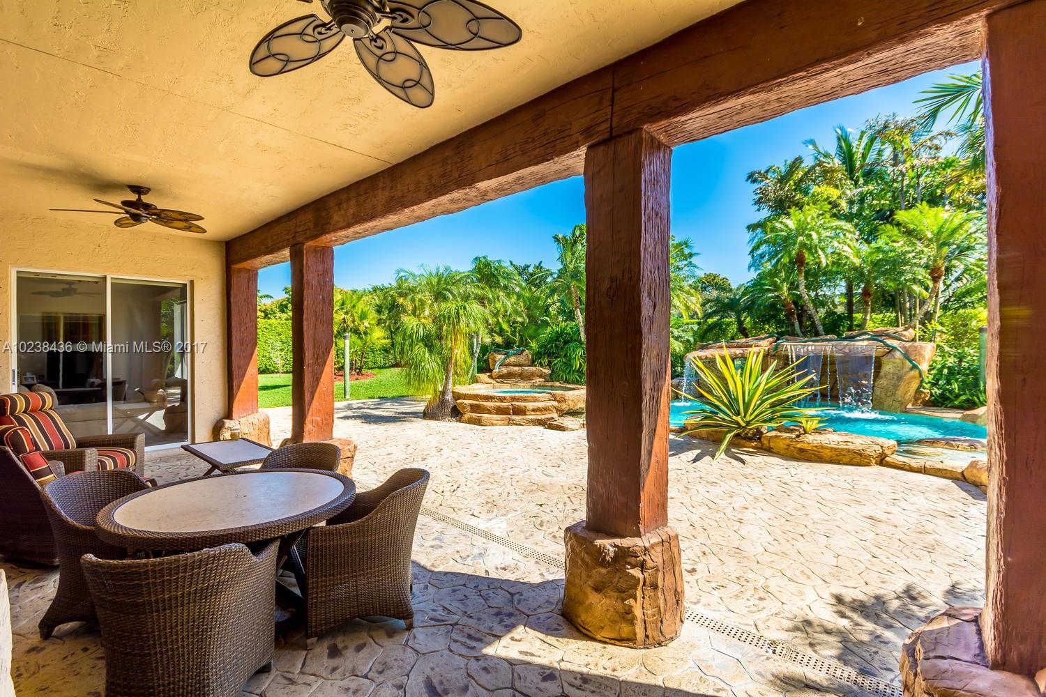 Estate section of the prestigious Country Glen . Elegant masterpiece located on one acre lot . 5 bedrooms 4 full baths and an office. Master suite located on the main floor. Open kitchen with granite counters , wood cabinets , pantry. Travertine floors on the main floor. Dazzling waterfall pool with lush tropical landscape featured in Better Homes and Gardens . 3 car garage . Gated community. A+++ schools. Must see !!!