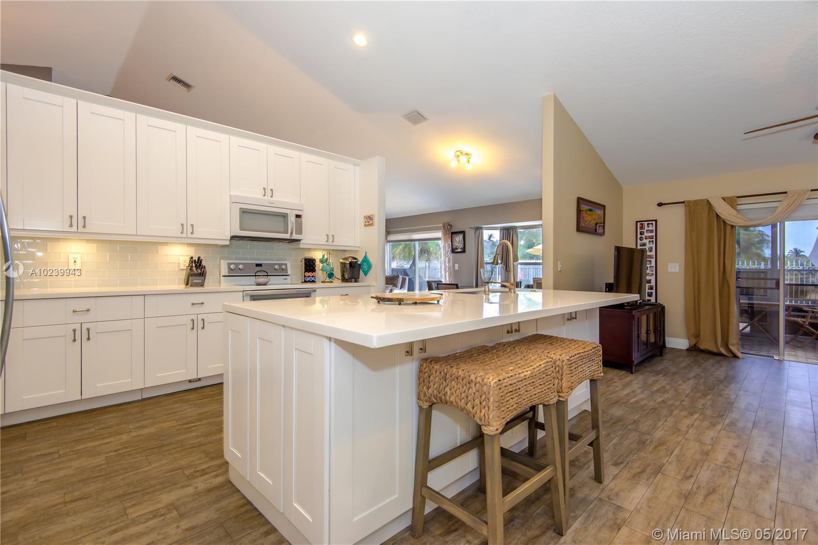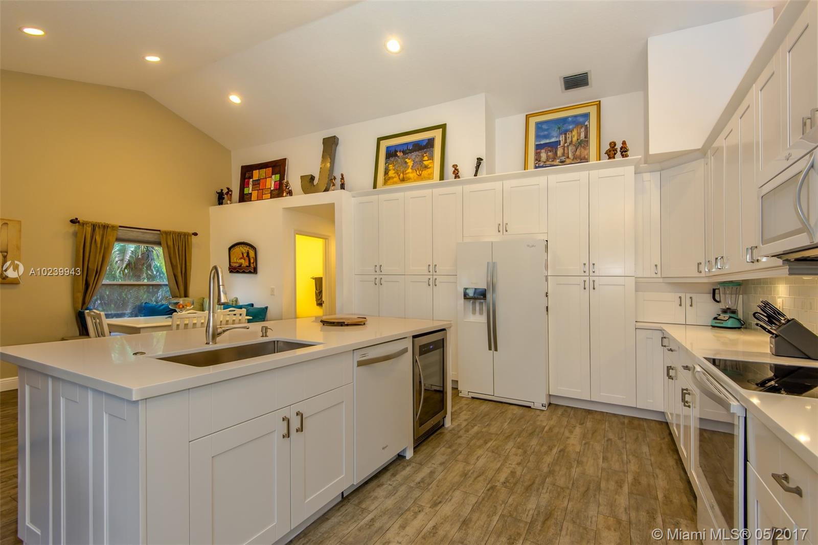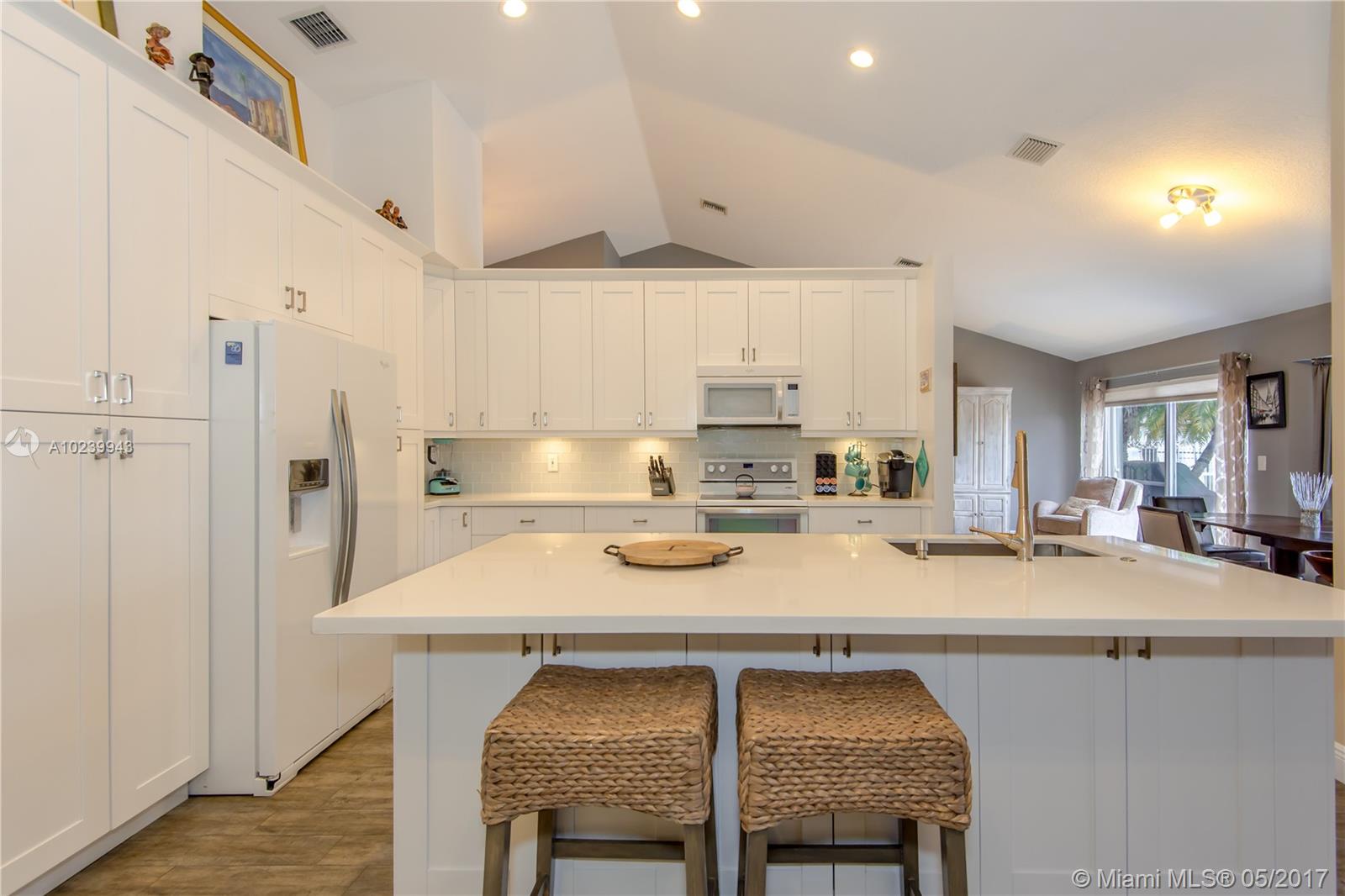 REDUCED! A-Rated Cooper City schools. Stylish, Family Friendly Waterfront in Cooper City! Dream kitchen All new white 42" cabinets with soft close hinges, quartz counters, Whirlpool's newest line: White Stainless Steel appliances incl a wine chiller; two pantries with pull-out drawers. Floors done with wood laminate in the BRs and porcelain wood grain tile in the living areas. Two bay windows, one with window seats (did someone say storage?) Laundry room converted into full-sized dream closet/dressing room. Best lake view in development from nearly every room. Screened porch w/bar for entertaining, completely fenced w separate dog run. Roof replaced in 2007.