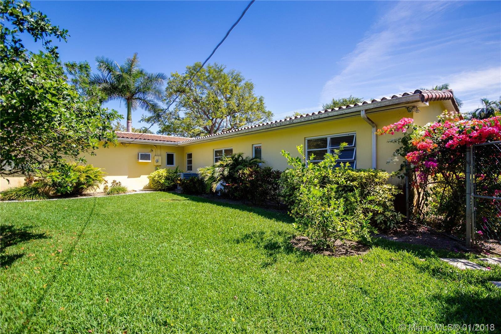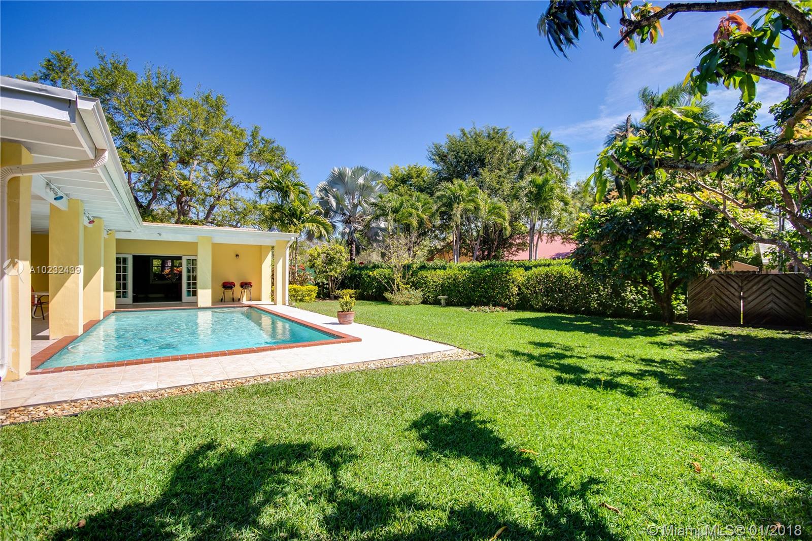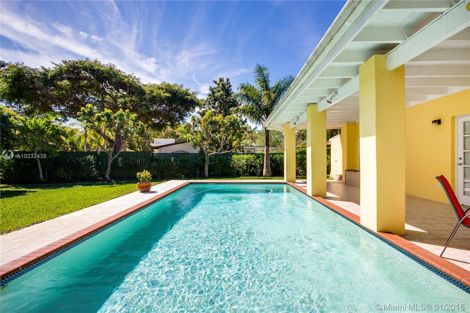 Sought after large lush corner lot property in Pinecrest. Spacious floor plan with a huge kitchen, generous sized dining & living rooms that spill into the patio courtyard surrounding the pool. This indoor/outdoor home is Florida living at it's best. A long hallway divides the bedrooms and baths are well appointed, off the living area. The master bedroom is full of light and features a double vanity. The property also features a 2 car garage, large back & side yard, fruit trees & magnificent mature trees.