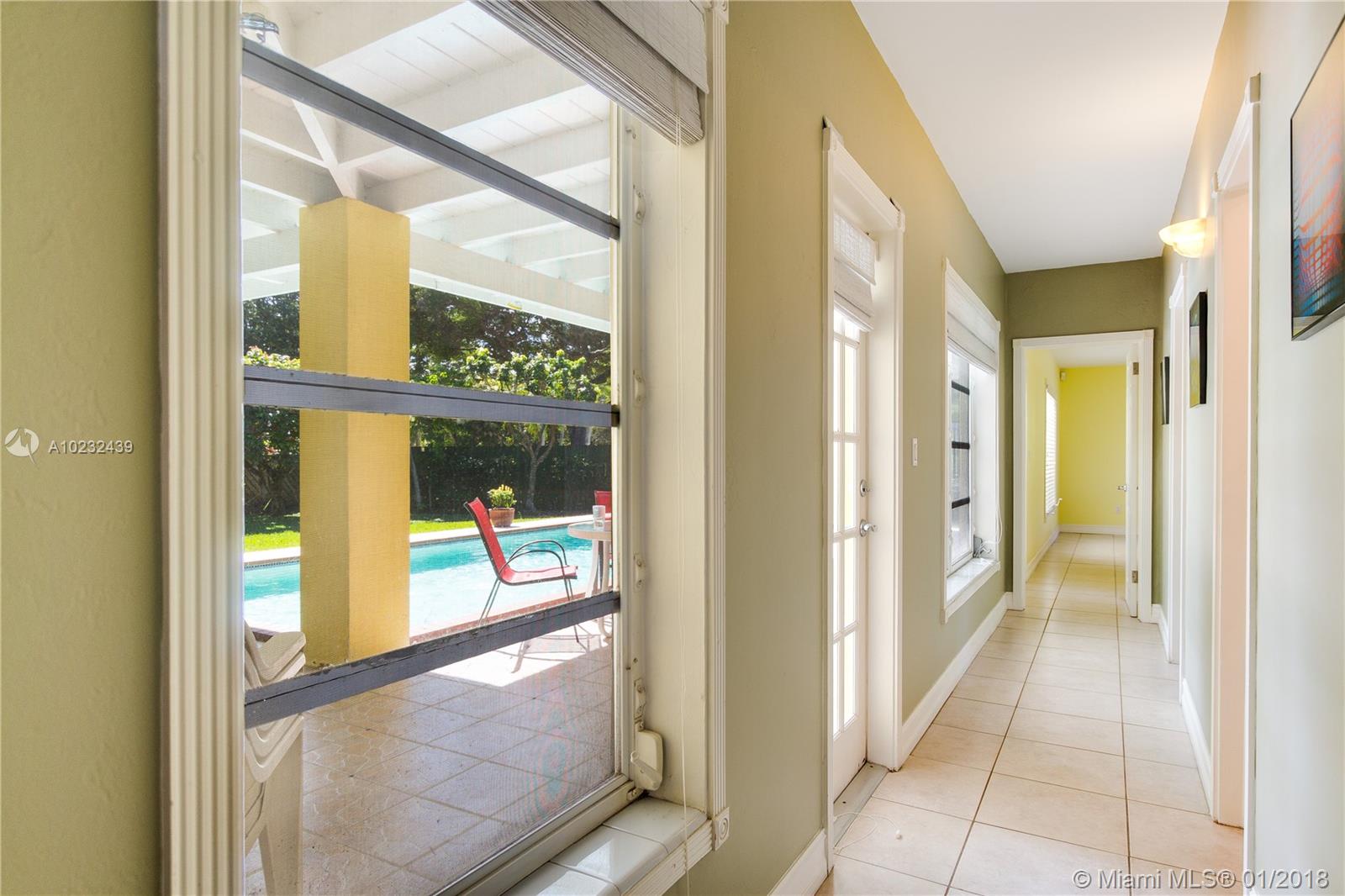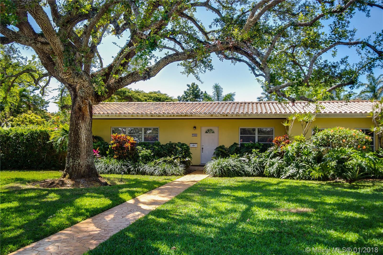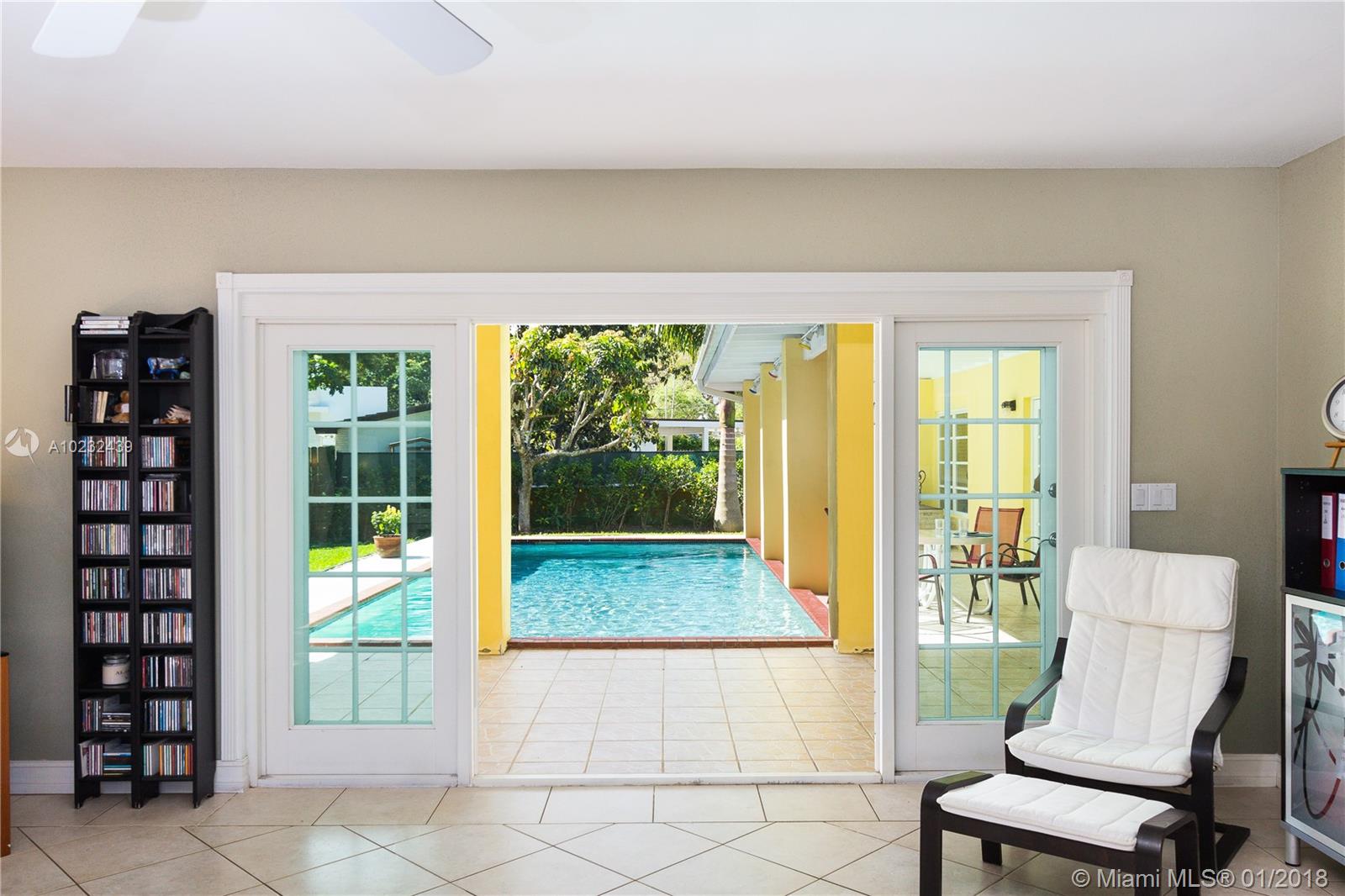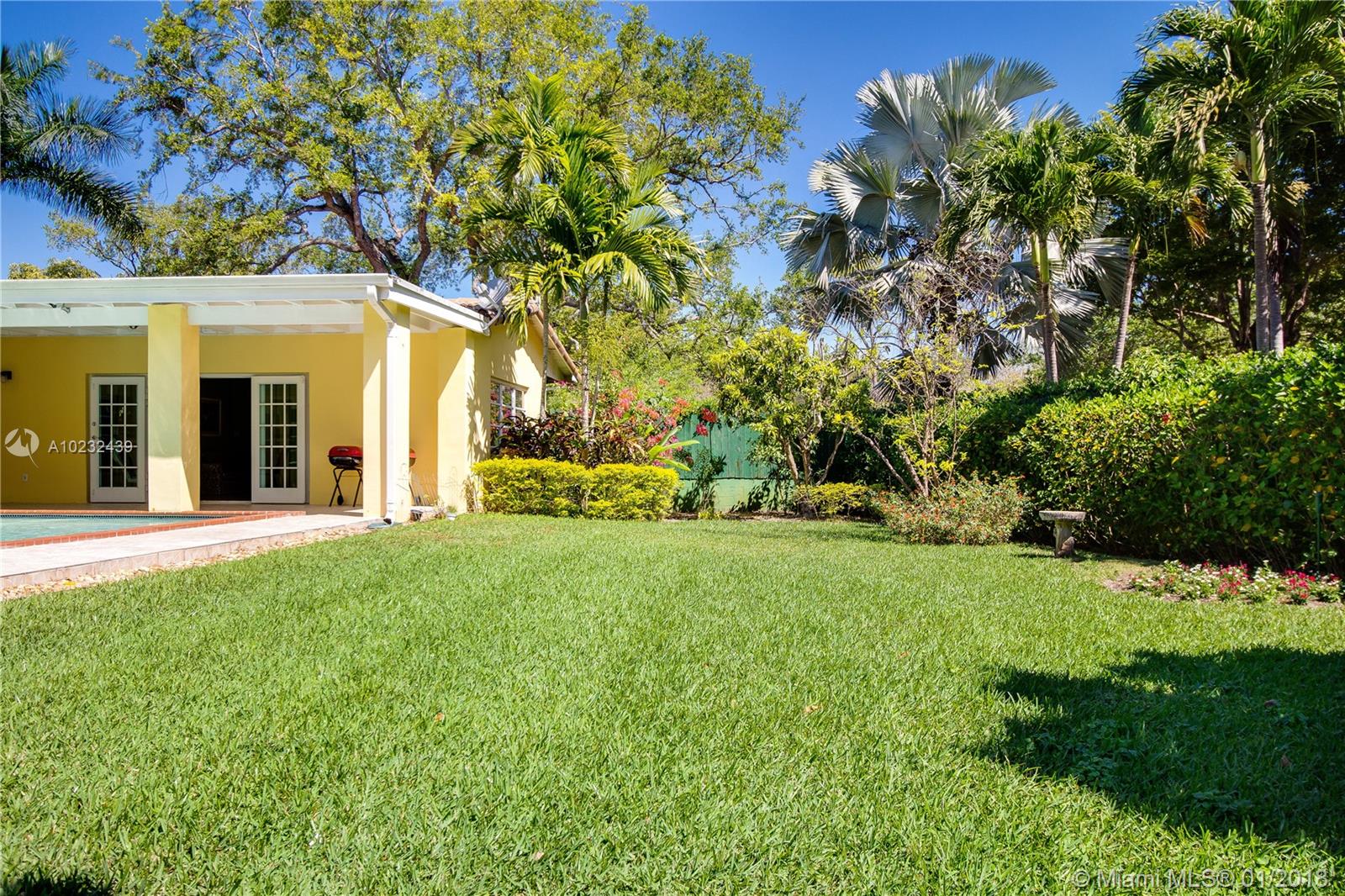 Sought after large lush corner lot property in Pinecrest. Spacious floor plan with a huge kitchen, generous sized dining & living rooms that spill into the patio courtyard surrounding the pool. This indoor/outdoor home is Florida living at it's best. A long hallway divides the bedrooms and baths are well appointed, off the living area. The master bedroom is full of light and features a double vanity. The property also features a 2 car garage, large back & side yard, fruit trees & magnificent mature trees.