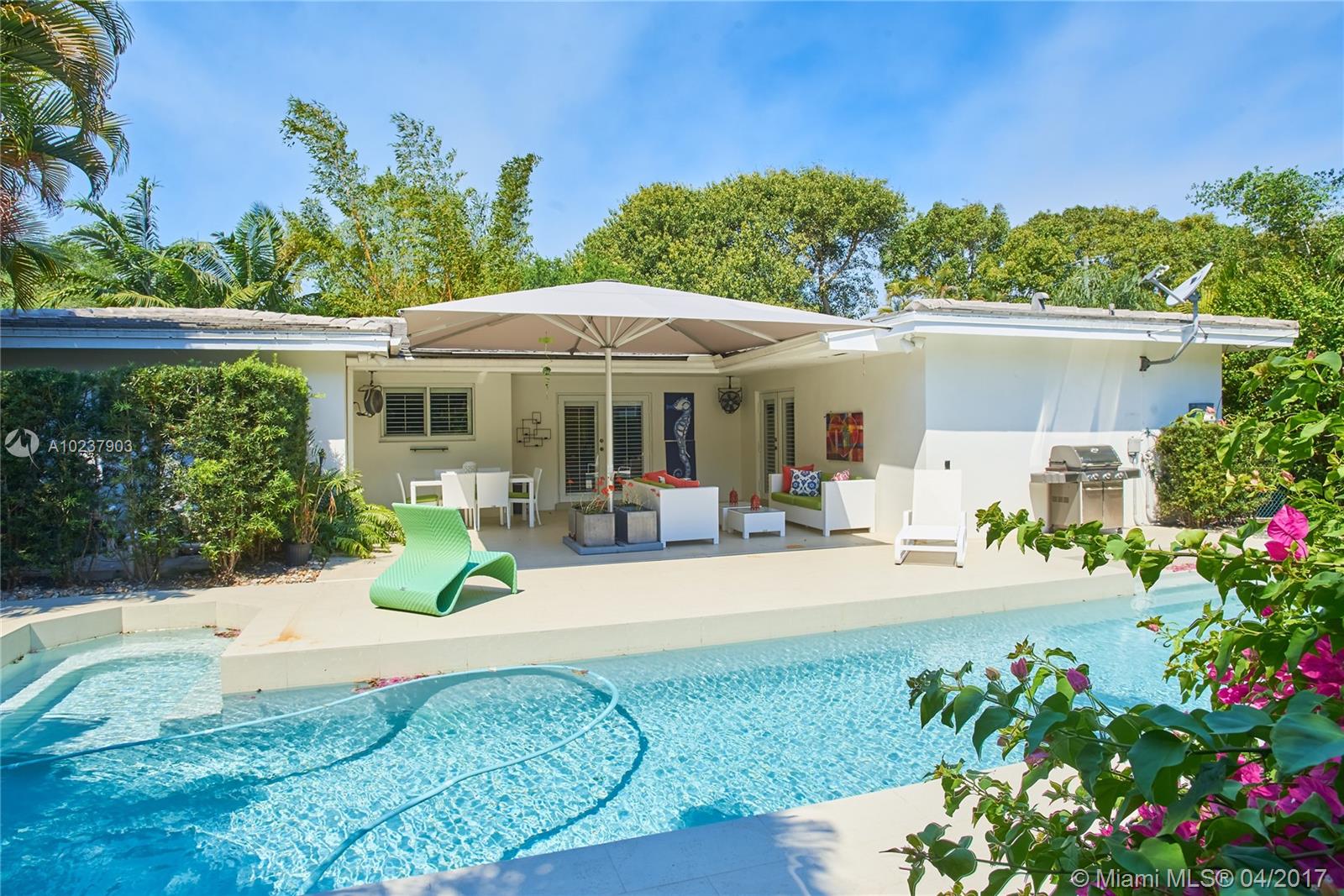 REDUCED FOR FAST SALE! BRING OFFERS! A complete recent renovation of the entire home with everything updated by Oxford Design Build. Great open floor plan with full 4 bedrooms and 4 baths. Exquisite flooring, all new kitchen, baths, impact windows, wonderful patio with pool and siting and barbecue areas. Located on a charming Coral Gables Street close to Schools, UM, down town Gables, Shopping Centers and the Grove.