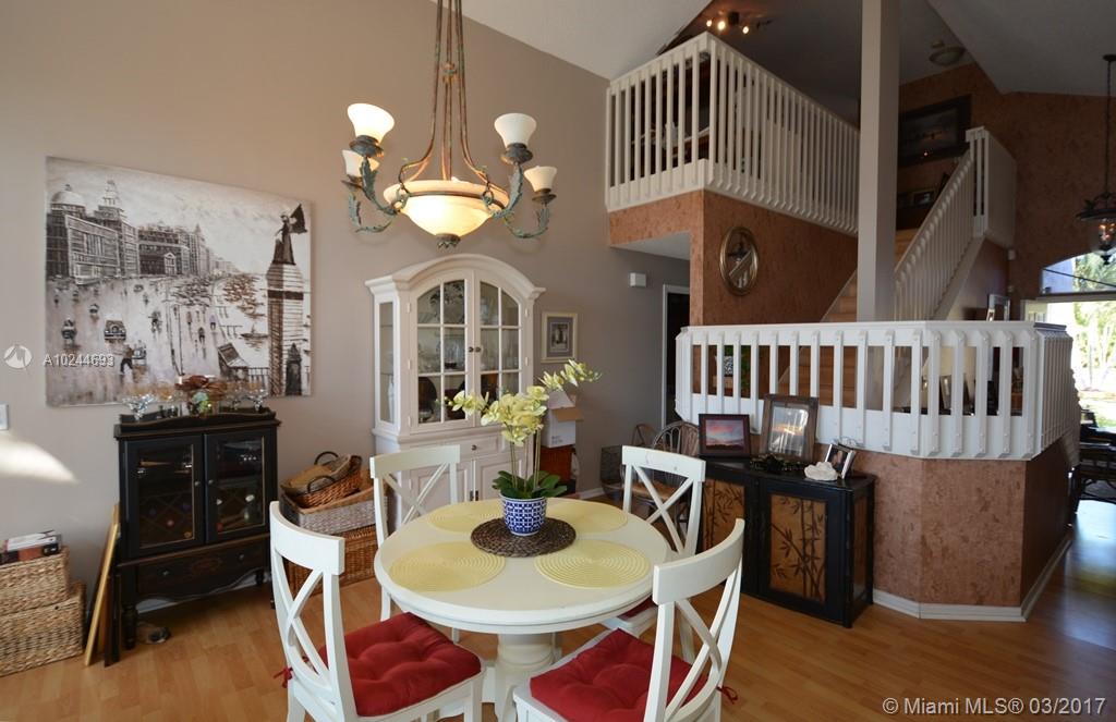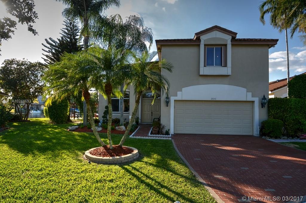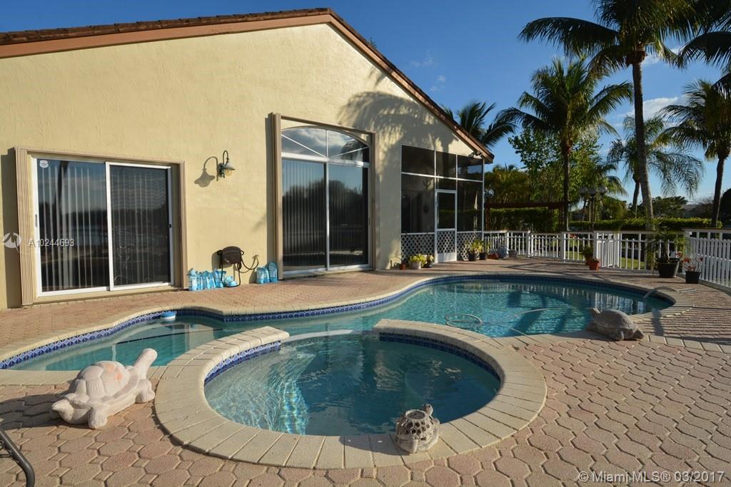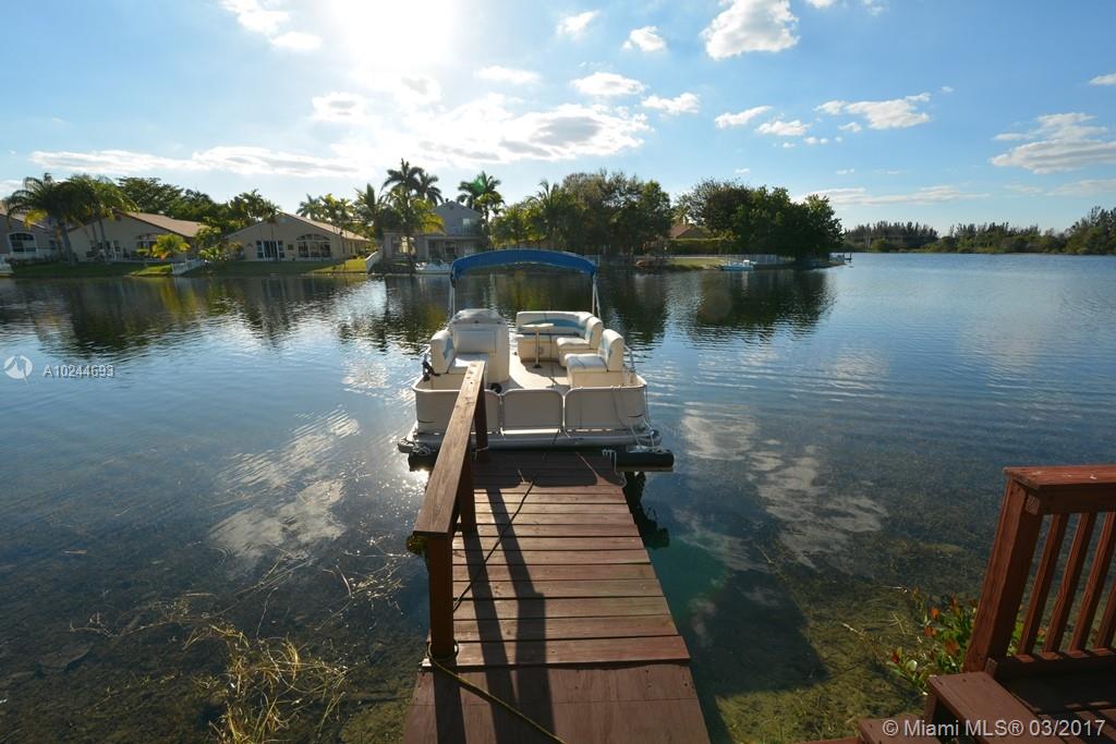 Cayman model home in gated community of Las Brisas with upgraded kitchen and serene view of lake. New Metal roof in 2007. Salt water pool with sun deck and patio. Home has a private dock on one of Pembroke Pines largest lakes. Master is down stairs with additional guest bathroom. Upstairs are three bedrooms and bath. Wood floors throughout with the exception of the master which is tile. Accordion hurricane shutters. 3 Year old upgraded A/C. 24/7 roving security. Newly Landscaped. Owner is planning to replace flooring. Move quickly and select your style and Color.