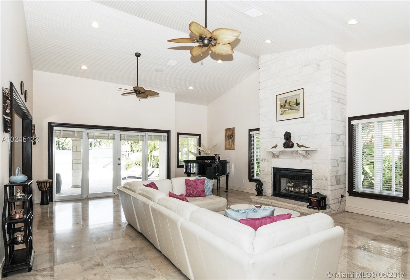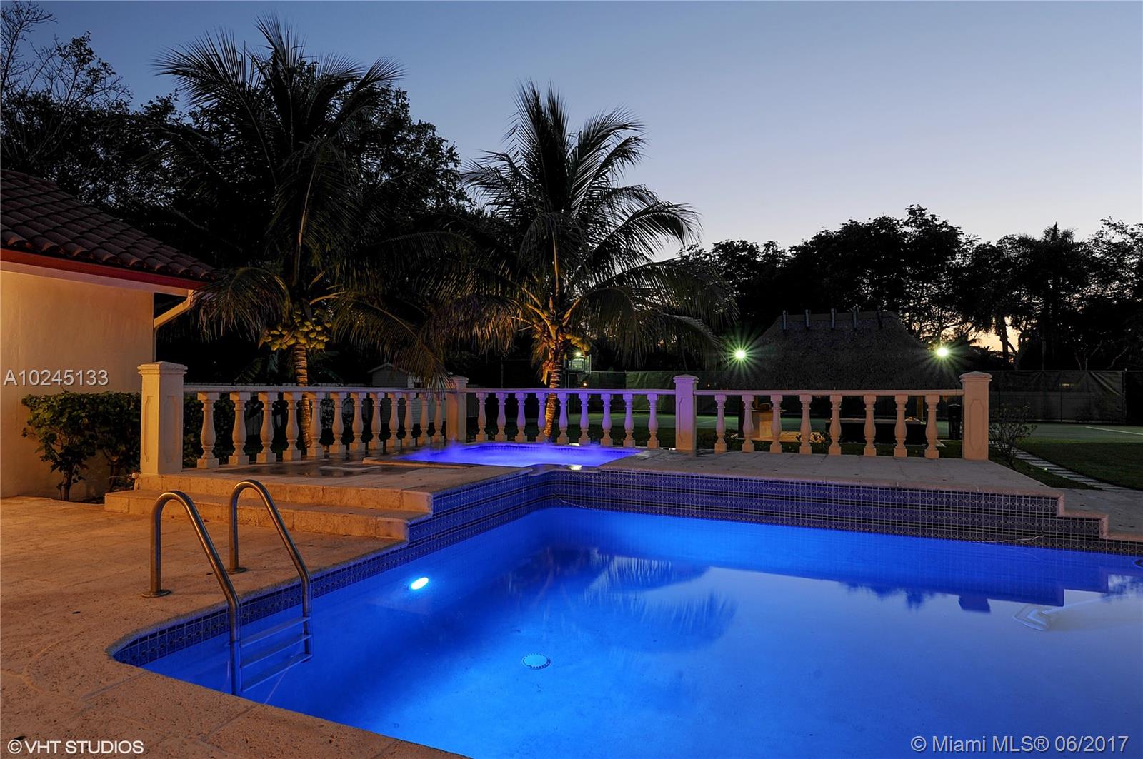 Tennis anyone? Exquisitely updated in 2014! Gorgeous gated estate home in the most prestigious area of Pinecrest! Impact windows, doors, marble floors, keystone accent walls and fireplace, hardwood Mahogany floors in all bedrooms. Designer marble baths, vaulted wood ceilings. Bright and spacious kitchen, stainless appliances, large cooking island has seating, open to huge family room. Immense back yard for entertaining! Lighted tennis court, heated salt pool, tiki hut with outdoor kitchen. Unforgettable. Live the dream!
