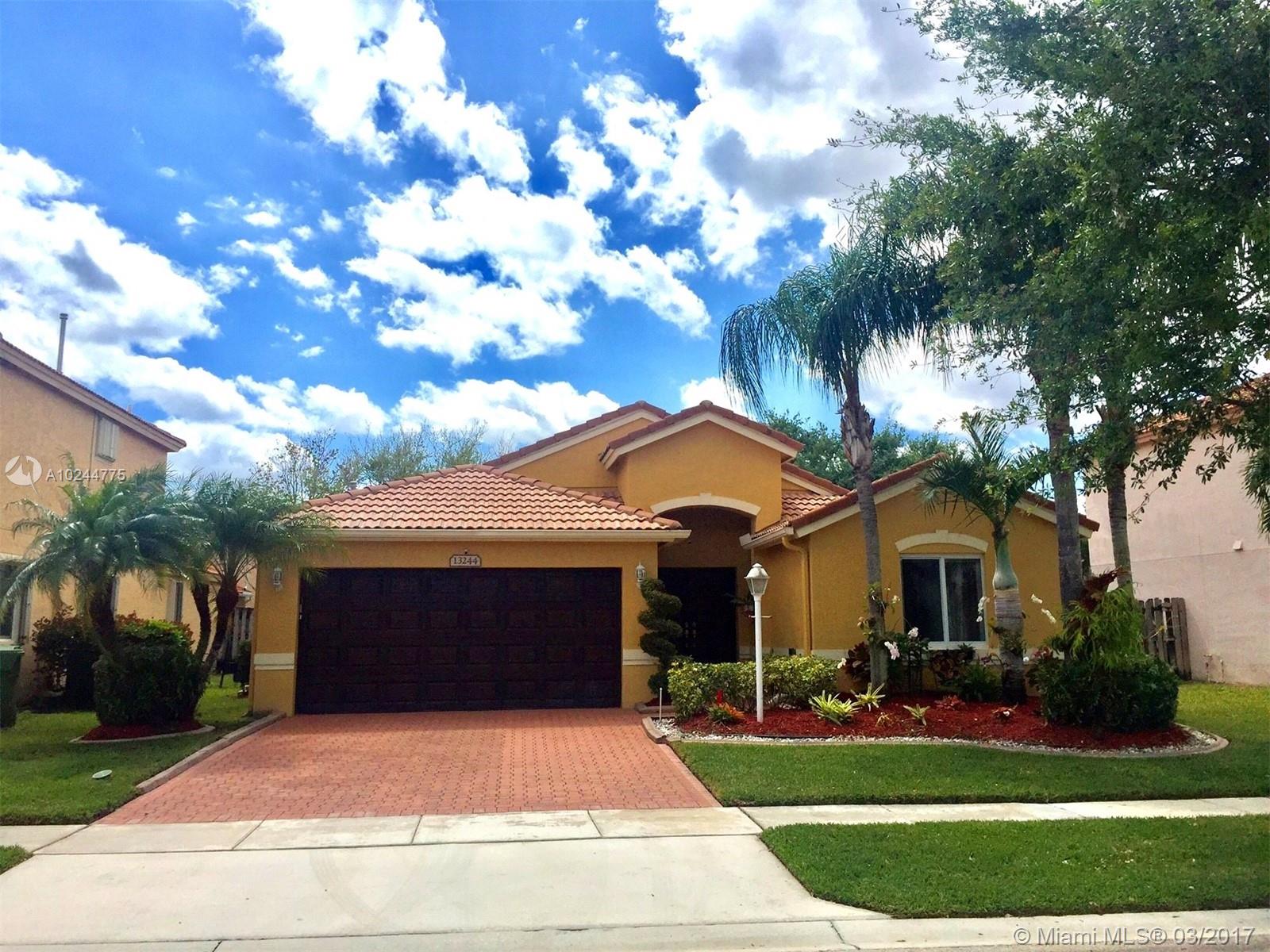 BEAUTIFUL move in ready 3/2 completely remodeled one story home in the exclusive community of Pembroke Falls. This home features ceramic tiles through out the entire home. High Impact Windows and doors. A/C, sprinkler system and garage opener are 3 years old. Custom made closets. Blackout shades in bedrooms. Gated. A+ Schools. HOA includes basic cable, internet, alarm, recreational center and security.