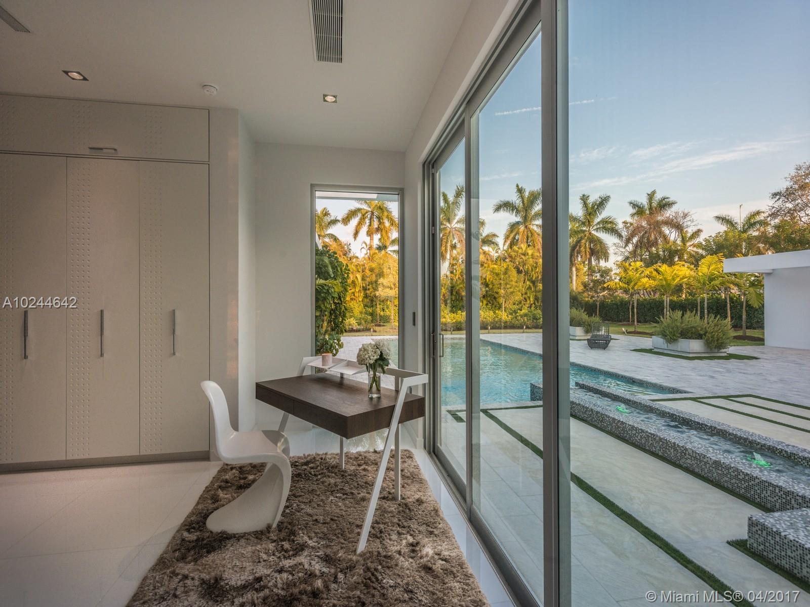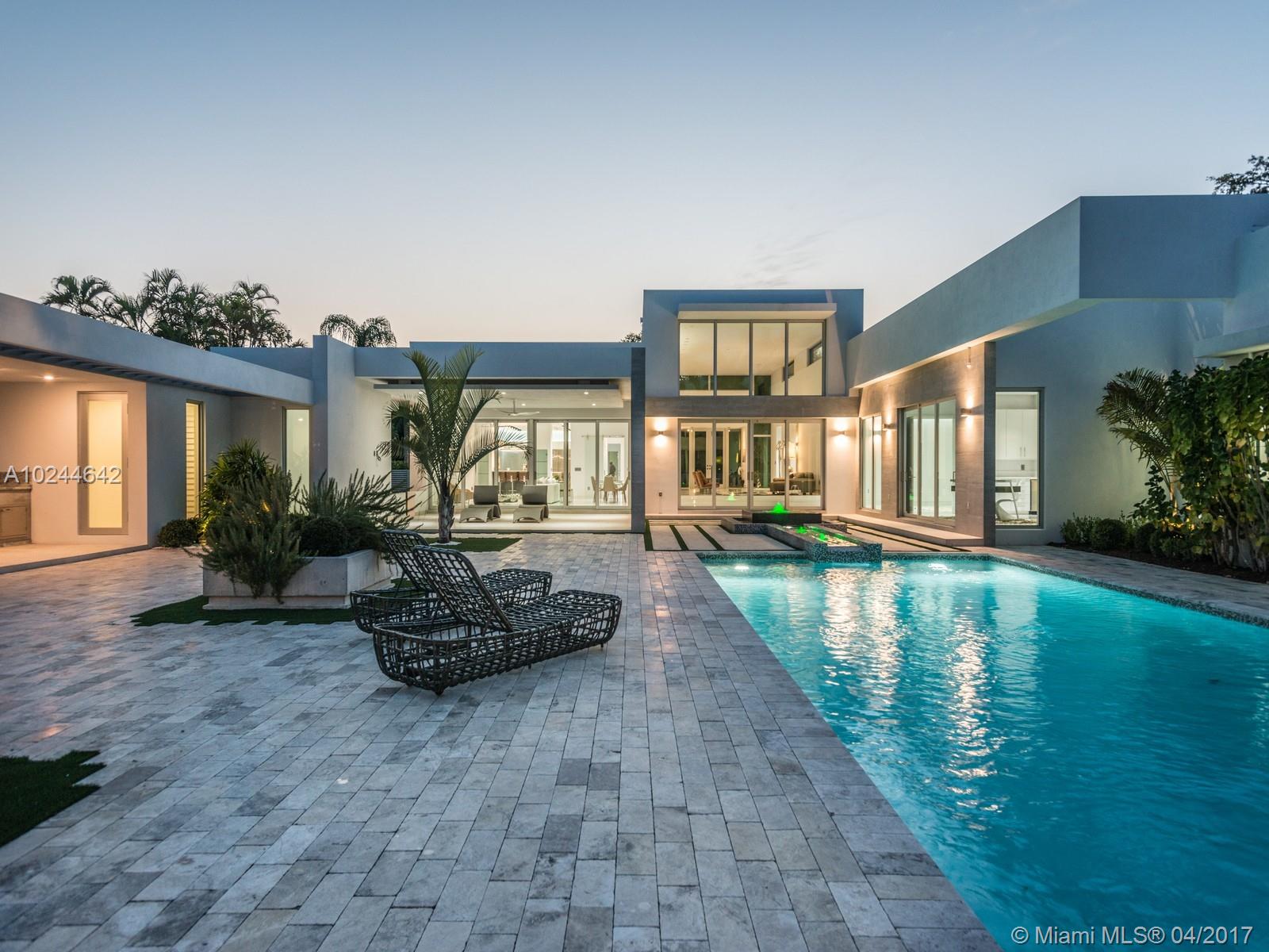 Brand new & ready for immediate occupancy! 1-story modern estate inspired by European architecture, nested on an acre. N.Pinecrest location offering a quiet cul-de-sac street. Impressive entry w/high ceilings allows an abundance of natural light, overviewing pool & deep back yard. Designer Kitchen w/Quartz countertops, gas slide in range, Subzero refrigerators & Wolf applncs. Zen master bath suite w/floating vanity & tub, Teak shower flr & sep steam shower. Detached Cabana/gym, summer kit, 26 solar panels