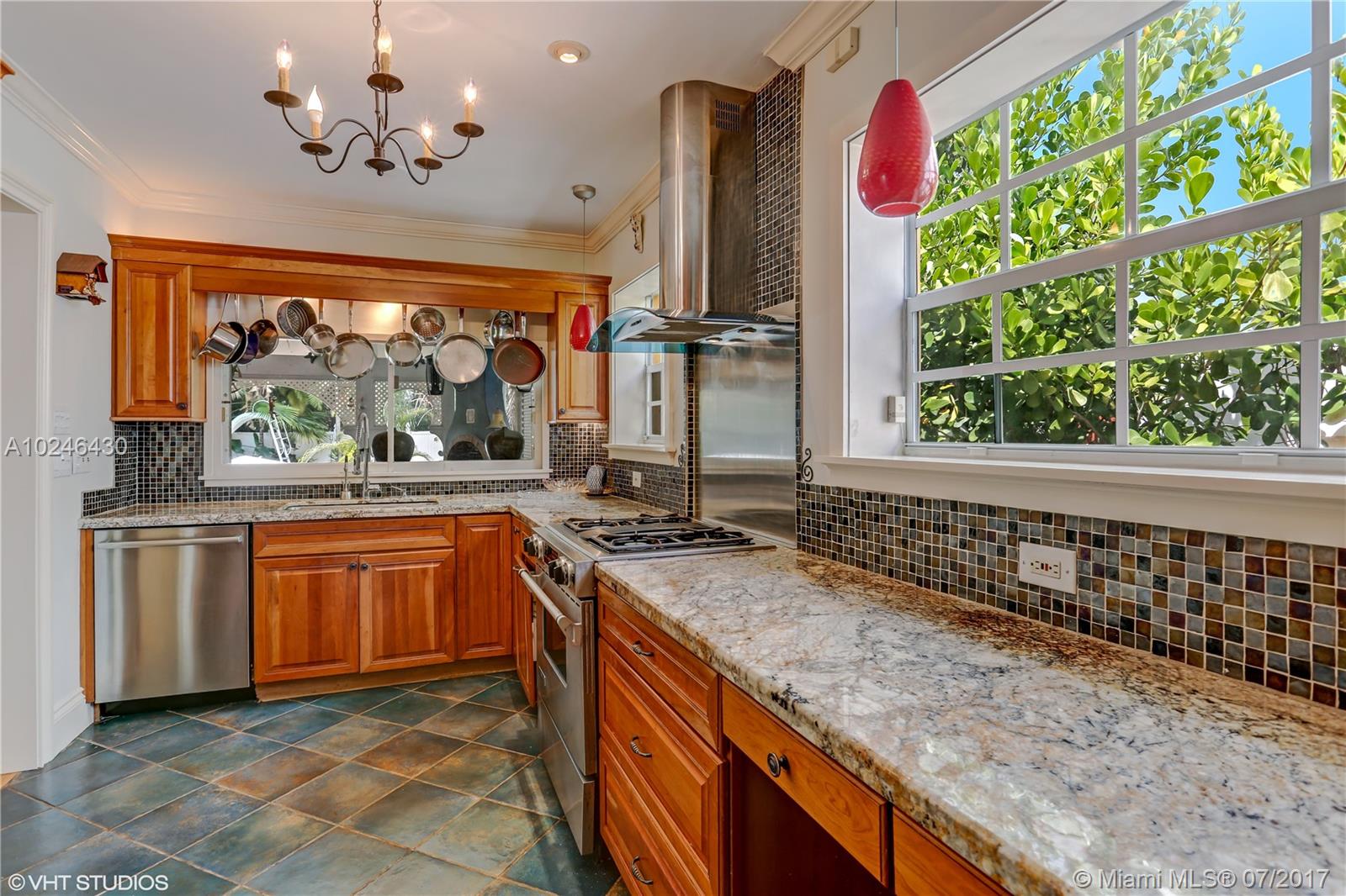 Beautiful two story 4 bedrooms/4.5 bathrooms home on Alton Road w/circular driveway. Downstairs powder room, new master bedroom/ marble bathroom with Jacuzzi tub, shower, dual sinks & bidet.Upstairs 3 bedrooms/2 bathrooms.Interior features: wood floors, working fireplace, bar, wood staircase w/iron railings. Kitchen has granite countertops,wood cabinetry, stainless steel appliances and tile flooring.French doors overlook open patio with built in BBQ and heated pool with slide.Garden is lushly landscaped.