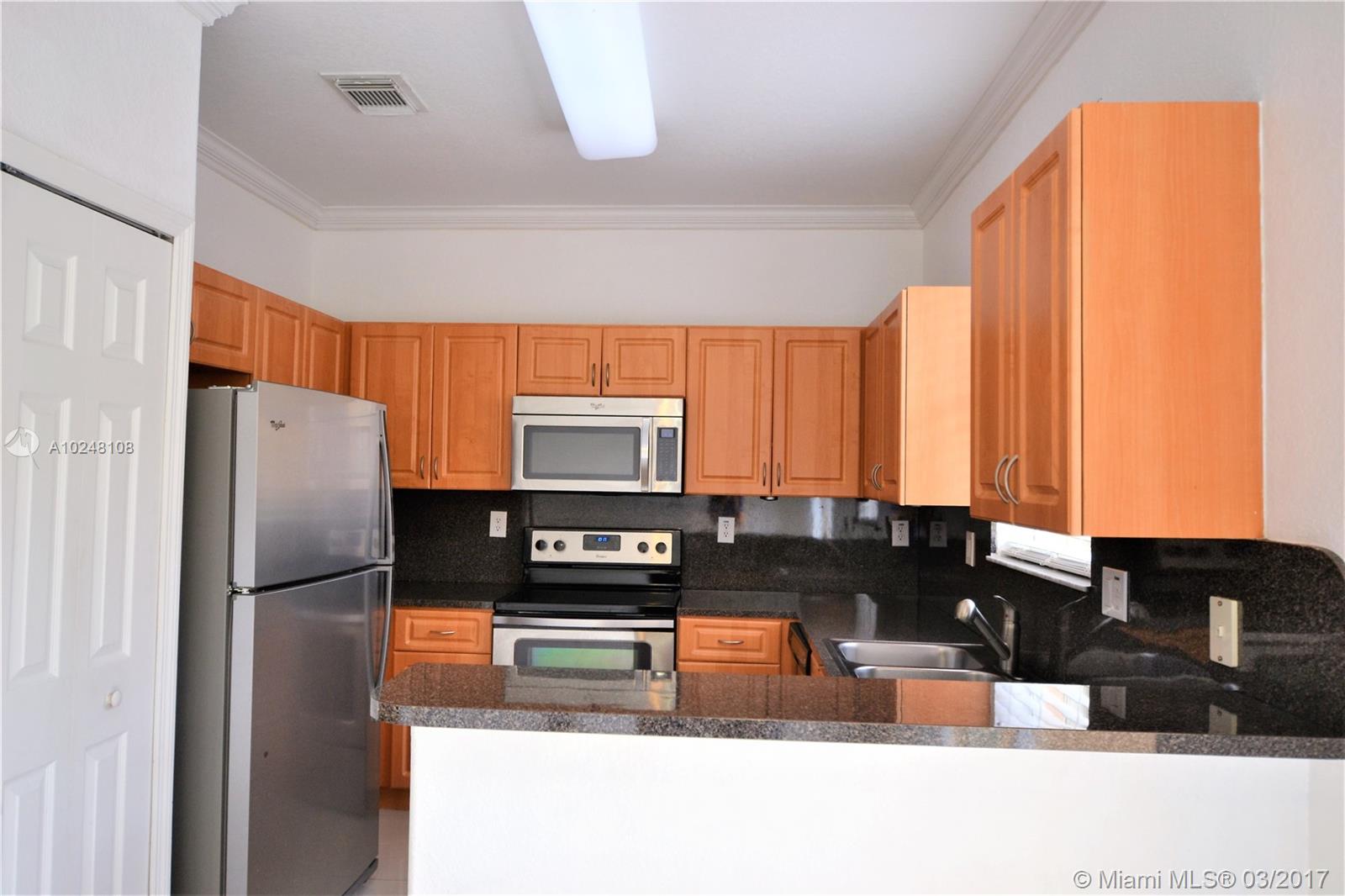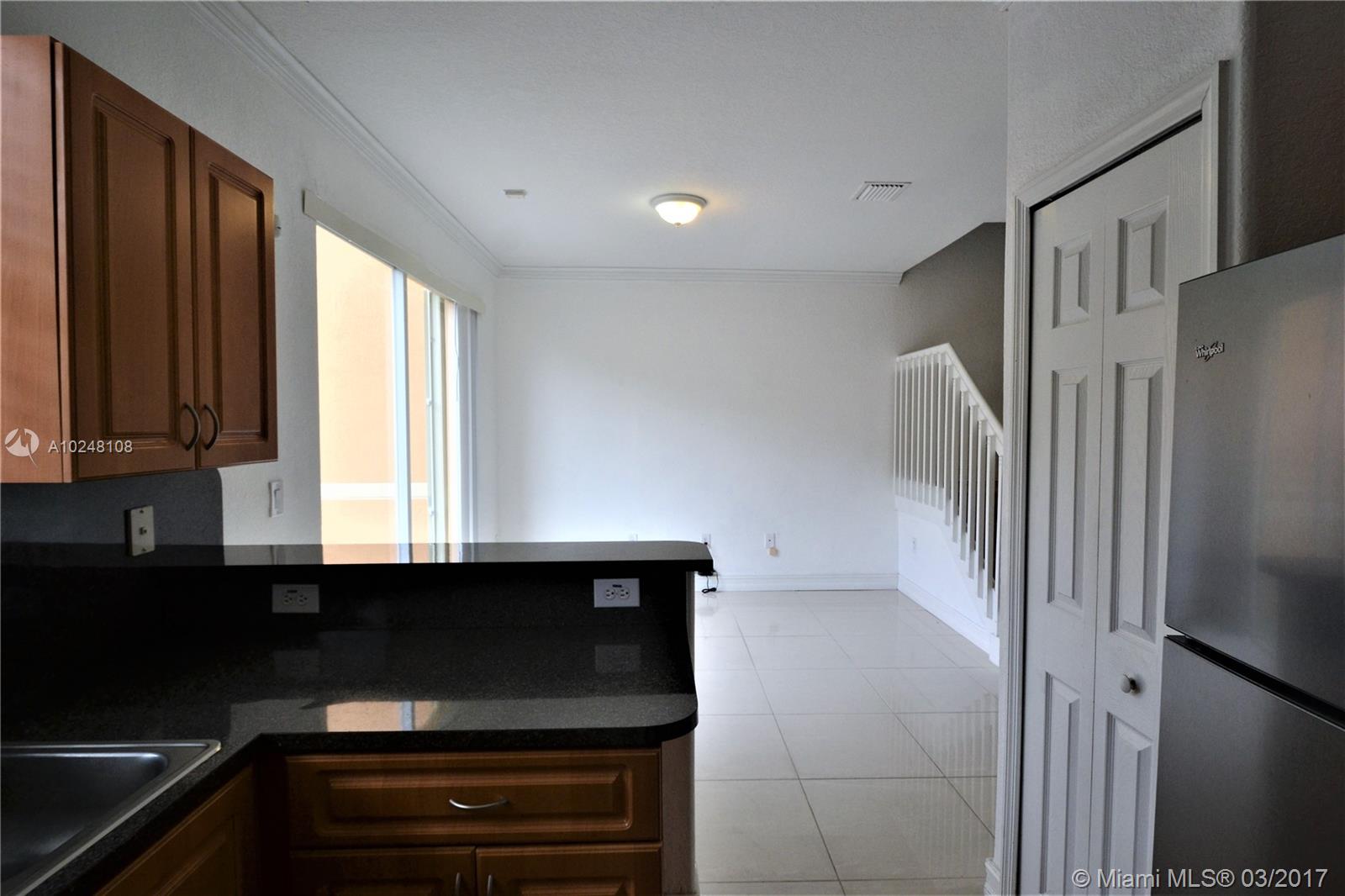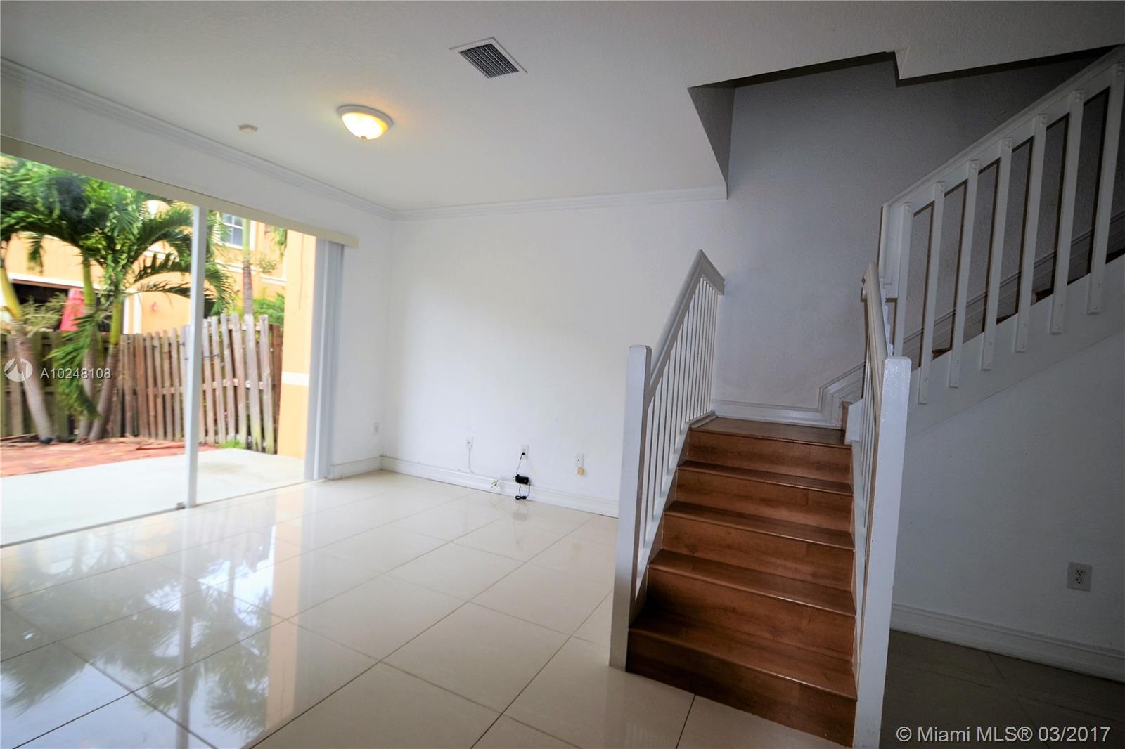 Spacious 3 bedroom/2.5 bathroom townhome in exclusive gated community. Property features all Bedrooms upstairs, fenced-in patio for entertaining, 1 car garage, with 2 additional outside parking spaces, stainless steel appliances, tile downstairs, laminate floors upstairs and accordion shutters. Clubhouse amenities include tennis courts, pool, basketball courts, playground and gym.