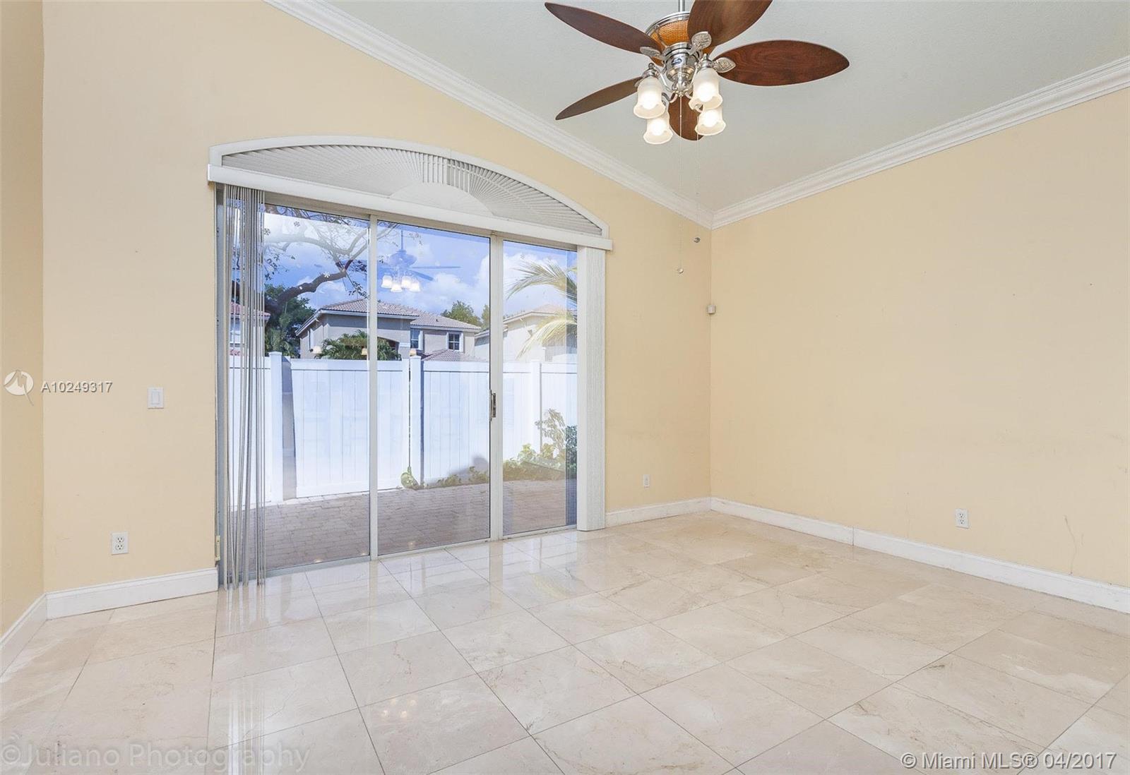 Beautifully remodeled home in gated community of Walnut Creek! This meticulously maintained 3 bedroom, 2 bath home boasts a spacious open floor plan, gleaming marble floors, and vaulted ceilings. Bright kitchen with stainless steel appliances, breakfast bar, and granite counter tops! Large master bedroom with en-suite. Nice private brick patio off living room. Conveniently located near major expressways, great schools, shopping and more. Amenities include gym, pool, parks,and much more! Contact Frank Rodriguez at Universal Mortgage and Finance for Pre-Approval 305-986-0693