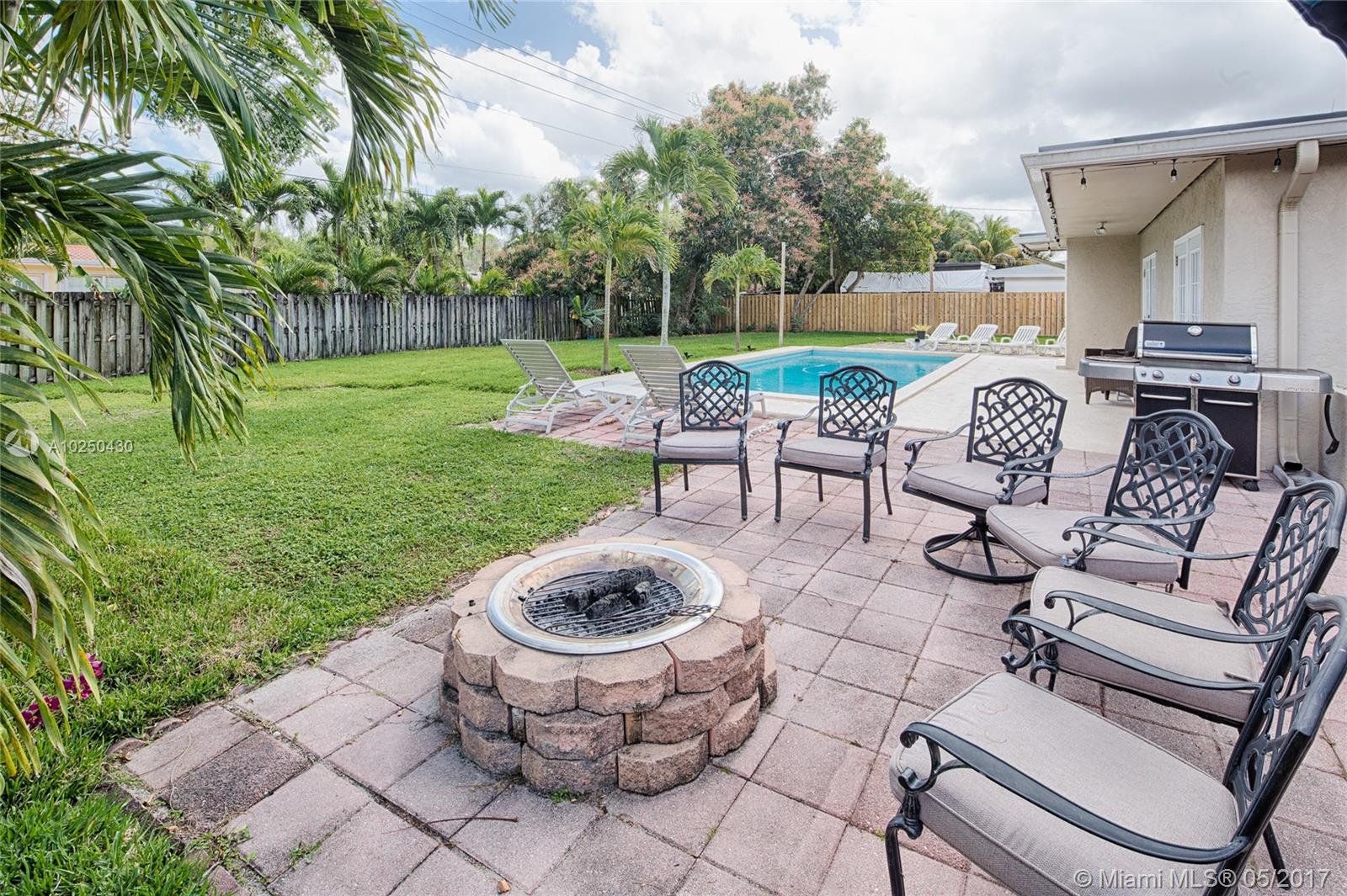 This is a pristine 3 bedroom 2 bathroom plus office home situated on an oversized lot with a large swimming pool. The interior features a spacious open floor plan with beautiful natural light, a renovated kitchen with quartz countertops & newer stainless steel appliances, updated bathrooms, brand new AC, great closets, full size laundry room, two car garage & more. The exterior is perfect for entertaining. Featuring a freshly sodded 13,750 SF lot, swimming pool, fruit trees, privacy fence & circular drive