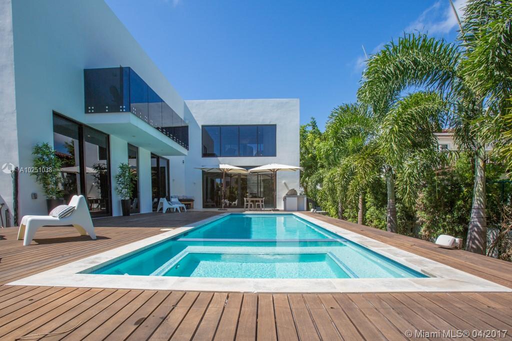 Location!!!Newly built custom contemporary home on highly desirable lower North Bay Road. This home boasts 11ft ceilings throughout and 24ft ceilings in living room/foyer, floating stairs w/glass railings, open chefs kitchen w/oversized pantry, Miele and Thermador appliances w/Brooks countertops + custom Italian cabinetry and ceramic floor tiles, oak wood floors upstairs. IPE pool deck/saltwater heated pool/jacuzzi w/outdoor kitchen, great for entertaining. Spacious rooms w/ terraces.1car garage