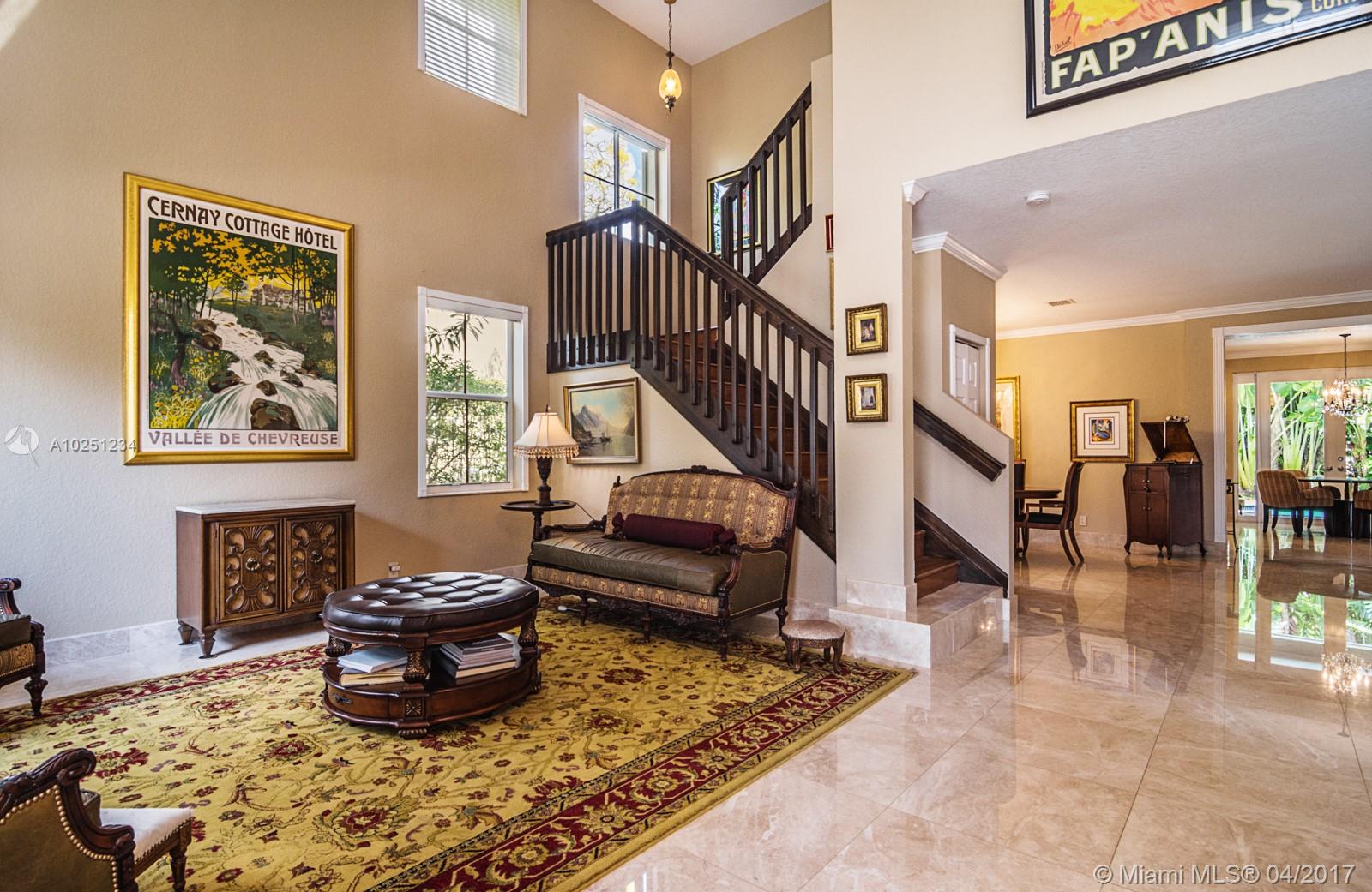 Stunning Turn Key Glendale model tucked on quiet palm tree lined street walking distance to Park & Playground. Home boasts New marble floors throughout living areas w/double french doors to private, fully fenced yard large pool. This elegant home has a two story living room w/ full bed/bath down. Brand New top of the line Viking SS appliances, granite countertops & built in wall unit in family room. All baths w/ granite countertops Expansive master bedroom with sitting area, luxurious marble master bath.