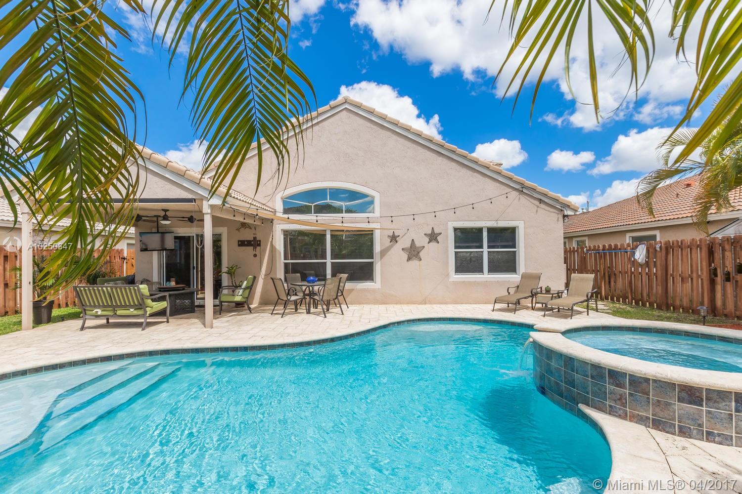 Malibu model with salt system pool & raised jacuzzi spa in desirable Pembroke Falls. Everything like new. 4 bdrm/2.5 bath with Owners Suite on first floor. Upgraded kitchen with wood cabinets, SS appliances, Granite. Whole home sound system. Gas hot water and cooking. A/C 2 yrs old. Built in garage organization system. Gated, resort style living amenities include clubhouse and massive community pool, professional tennis & basketball courts. HOA incl extended cable, Fiber optic Internet, and ADT