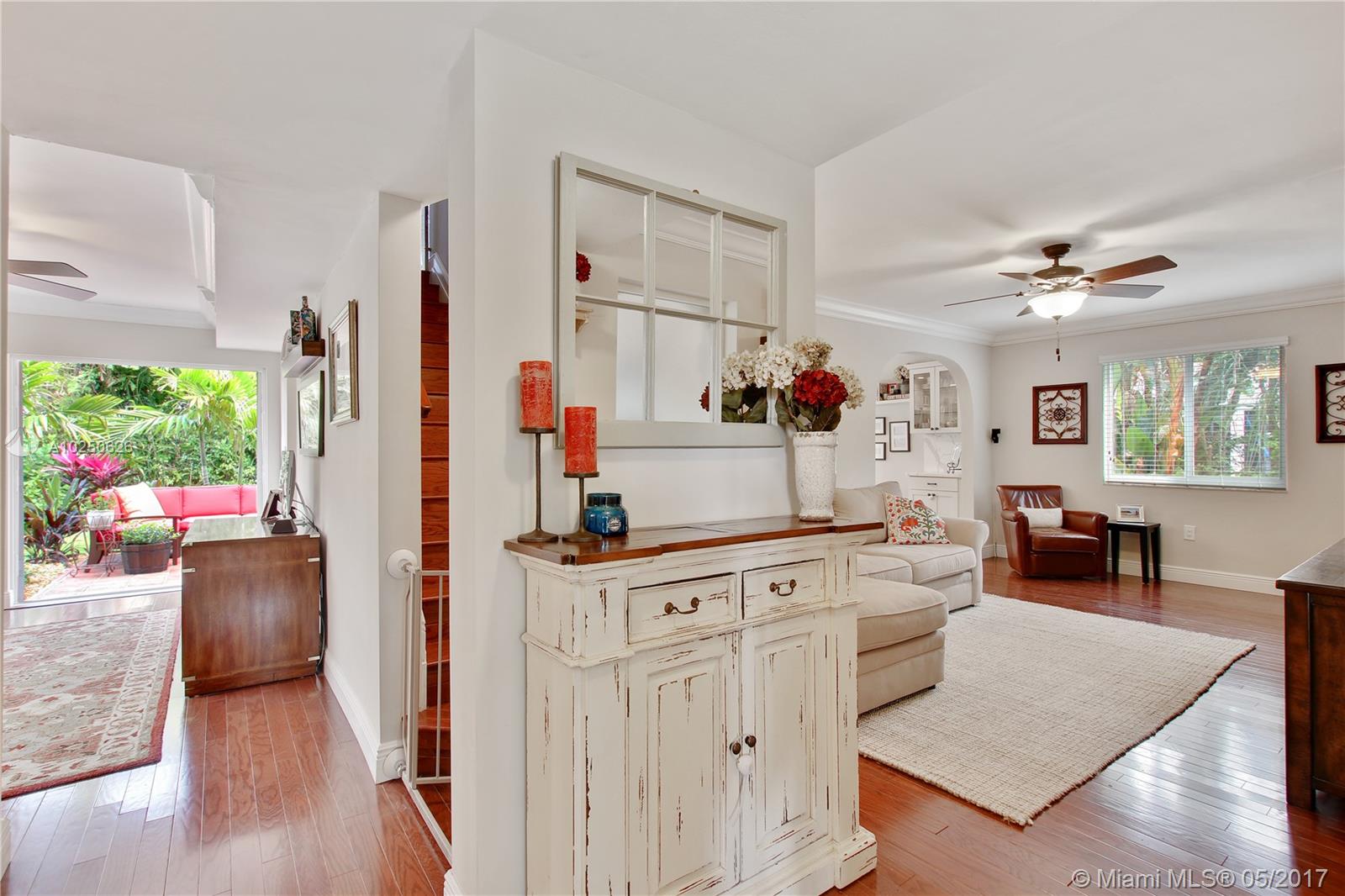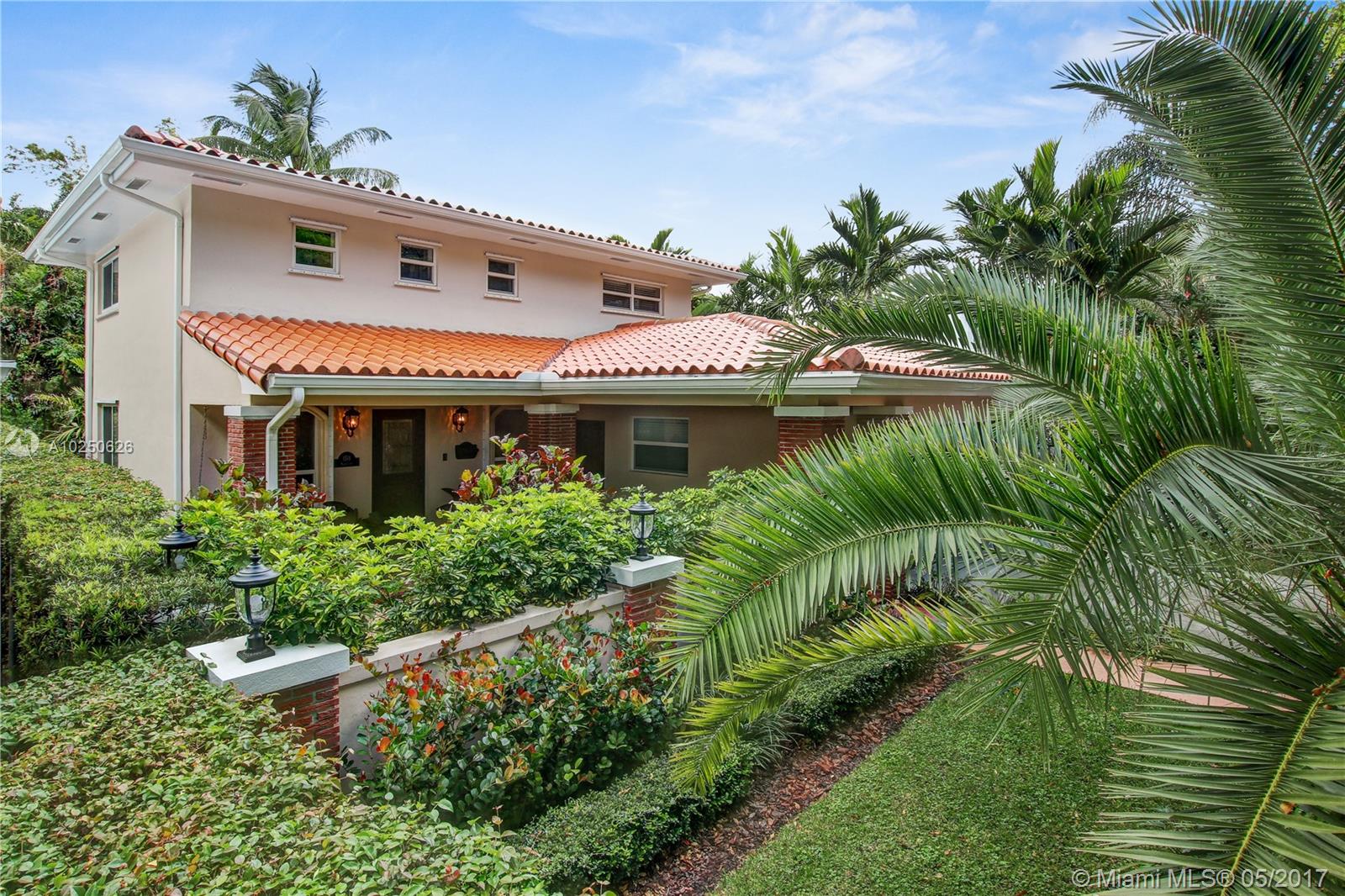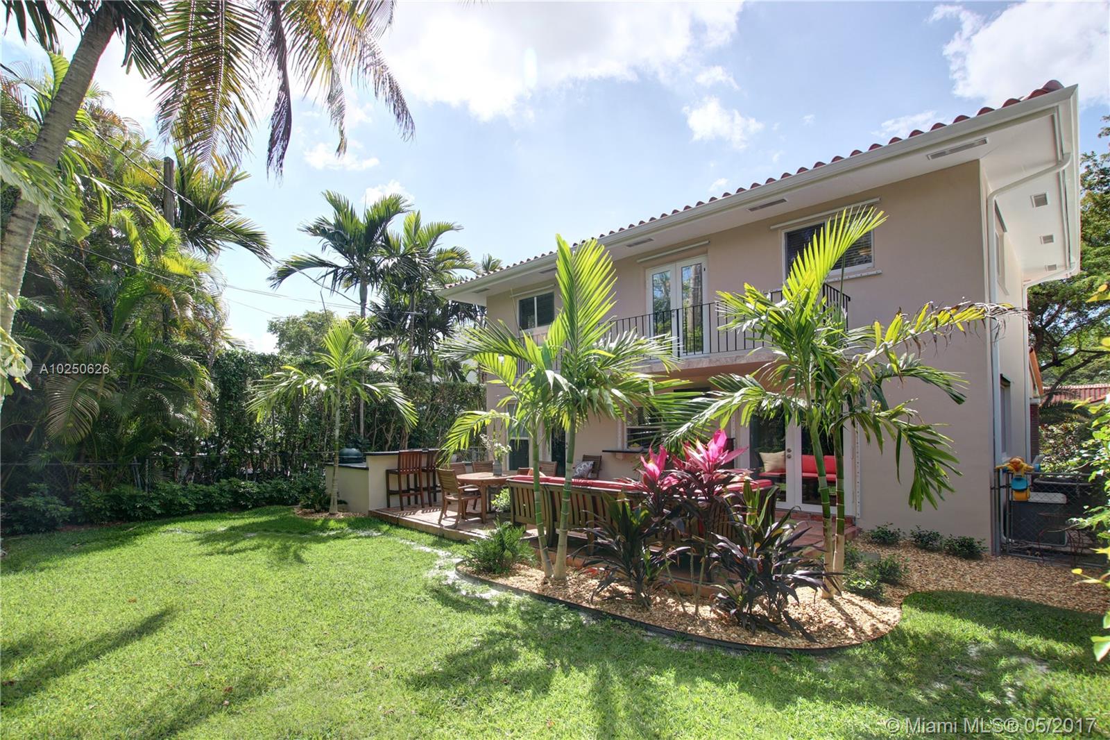 In much desirable Coral Gables, this home exudes charm & comfort with attention to details. Downstairs rooms easily transition from living room to recently remodeled kitchen to den/office & outdoor entertaining area. The fenced back patio is perfect for family fun & guests to relax w/built-in BBQ/snack bar/sitting space. The light/bright second floor features master suite w/walkin-in closet & designer bath + 2 other bdrms. Appliances including a/c, have been recently upgraded. Must see to appreciate!