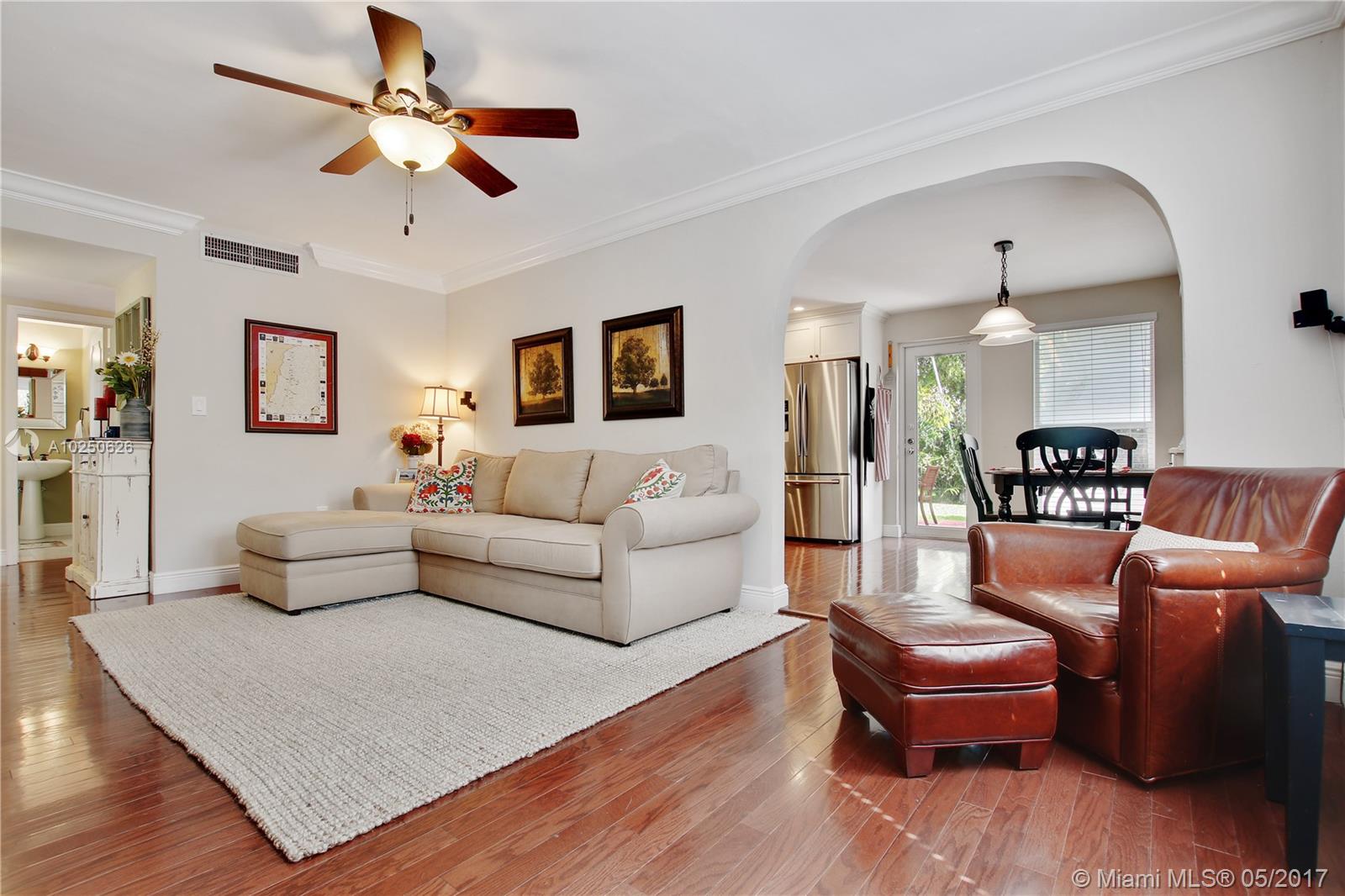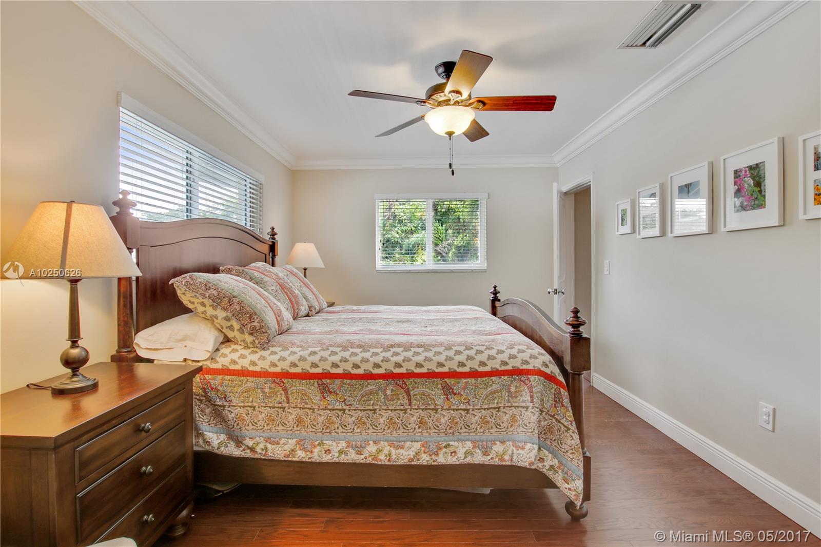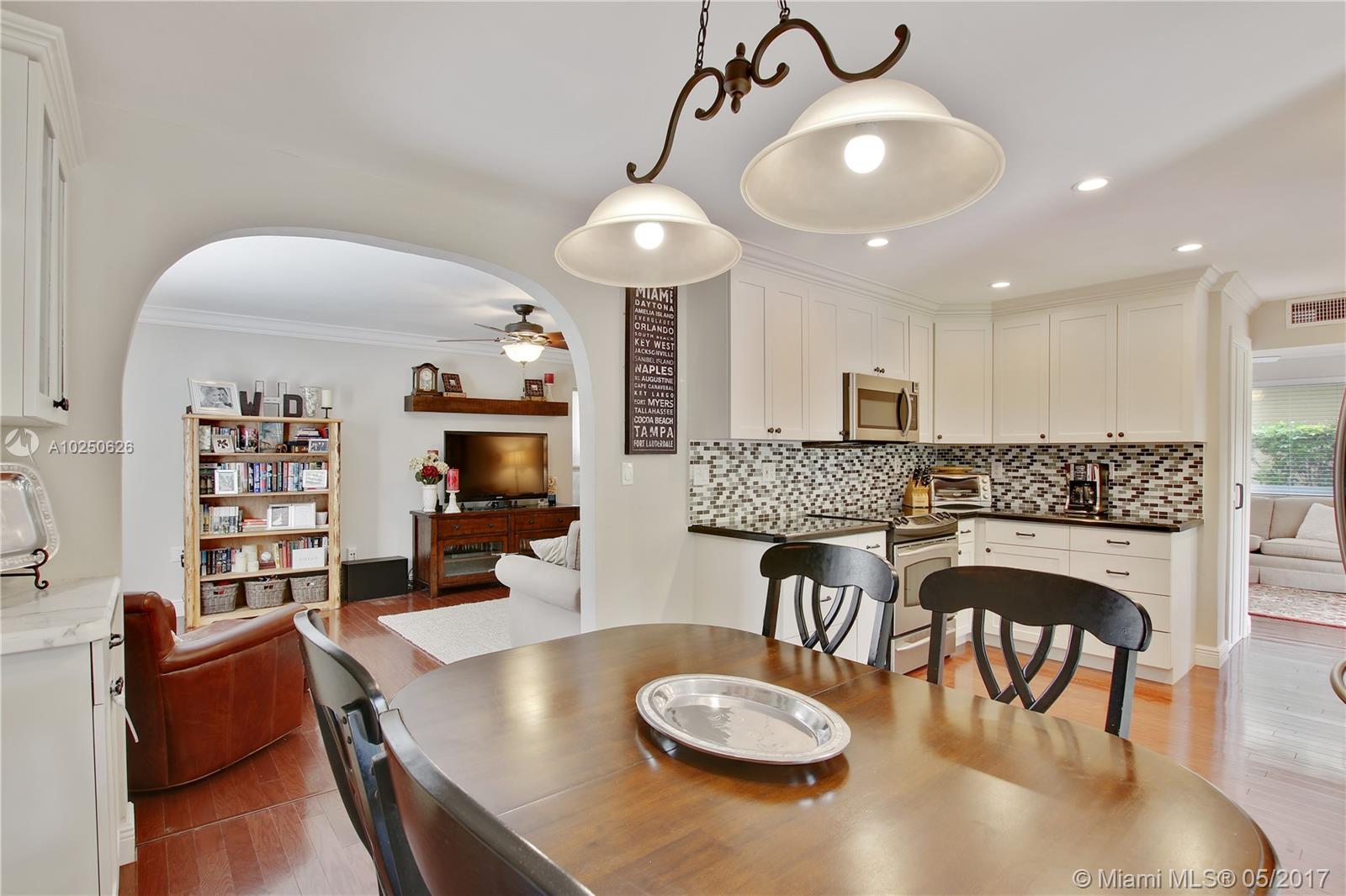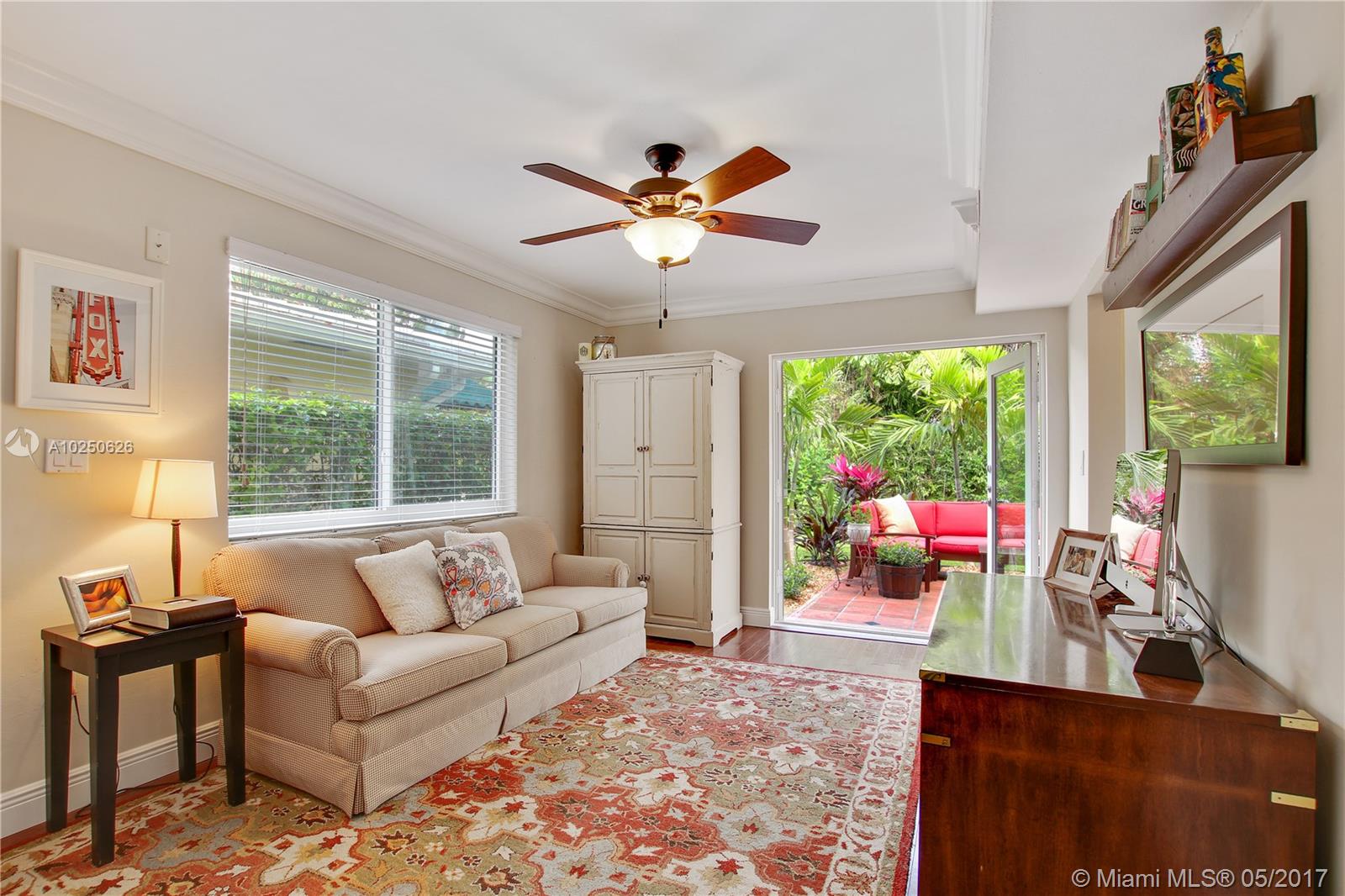 In much desirable Coral Gables, this home exudes charm & comfort with attention to details. Downstairs rooms easily transition from living room to recently remodeled kitchen to den/office & outdoor entertaining area. The fenced back patio is perfect for family fun & guests to relax w/built-in BBQ/snack bar/sitting space. The light/bright second floor features master suite w/walkin-in closet & designer bath + 2 other bdrms. Appliances including a/c, have been recently upgraded. Must see to appreciate!